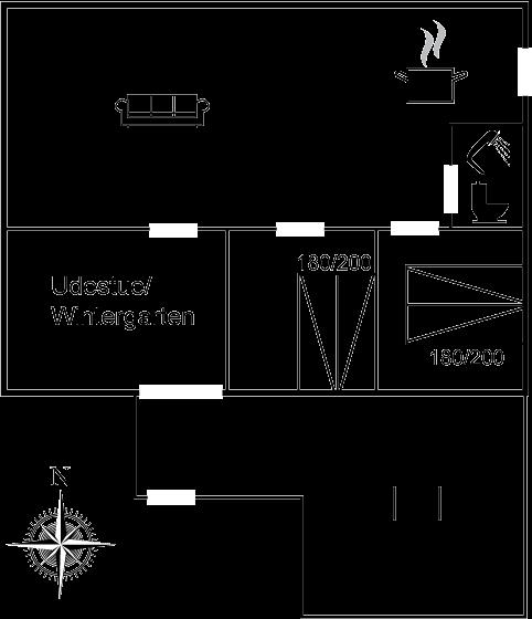Die Schlafplätze verteilen sich auf 2 Schlafräume. 4 Schlafplätze in Doppelbetten.