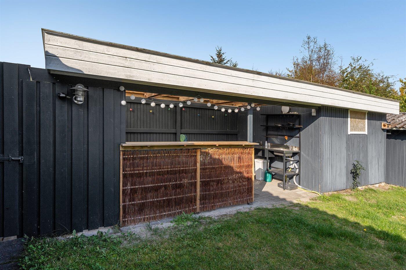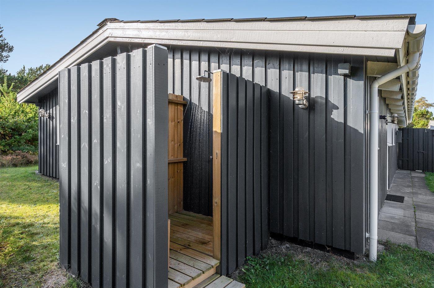 Zum Haus gehört ein schöner und teilweise überdachter Terrassenbereich und eine Außendusche.