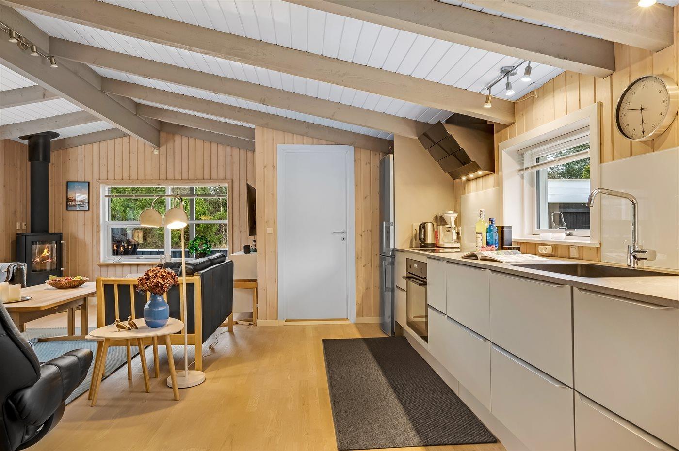 Das Ferienhaus eignet sich für 6 Personen sowie 1 Kleinkind bis zu 3 Jahren. Die Ferienunterkunft hat eine Wohnfläche von 83 m² und wurde 1959 gebaut. 2021 wurde die Ferienunterkunft teilweise renoviert. Haustiere dürfen nicht mitgebracht werden. Die Ferienunterkunft ist mit energiesparender Wärmepumpe ausgestattet. Die Ferienunterkunft ist mit Waschmaschine ausgestattet. Wäschetrockner. Tiefkühlmöglichkeit mit 60 Liter Nutzinhalt. Es gibt außerdem einen Kaminofen. Für die jüngsten Feriengäste ist 1 Kinderhochstuhl vorhanden.
