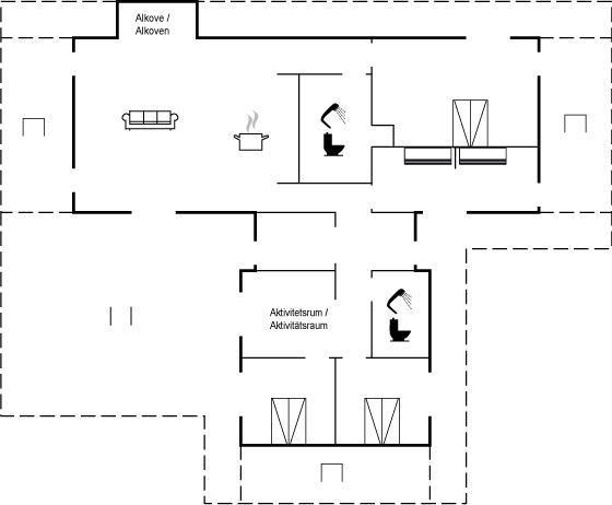 Das Ferienhaus ist mit hochwertigen Materialien gebaut und hat einen wirklich guten Grundriss, der sowohl für eine Familie mit mehreren Kindern als auch für zwei Familien geeignet ist - die Möglichkeiten sind vielfältig in diesem schönen Ferienhaus. Hier gibt es gute Terrassenflächen, die teilweise überdacht sind, und es gibt immer die Möglichkeit, eine gemütliche Ecke zu finden. Das Haus liegt zudem völlig ungestört. Auf der Terrasse steht ein Whirlpool, der Platz für bis zu 6 Personen bietet und das ganze Jahr über genutzt werden kann. Neben dem Ferienhaus wurde ein großes und einladendes Aktivitätsraum errichtet, in dem sich Kinder und Erwachsene jeden Alters vergnügen können.