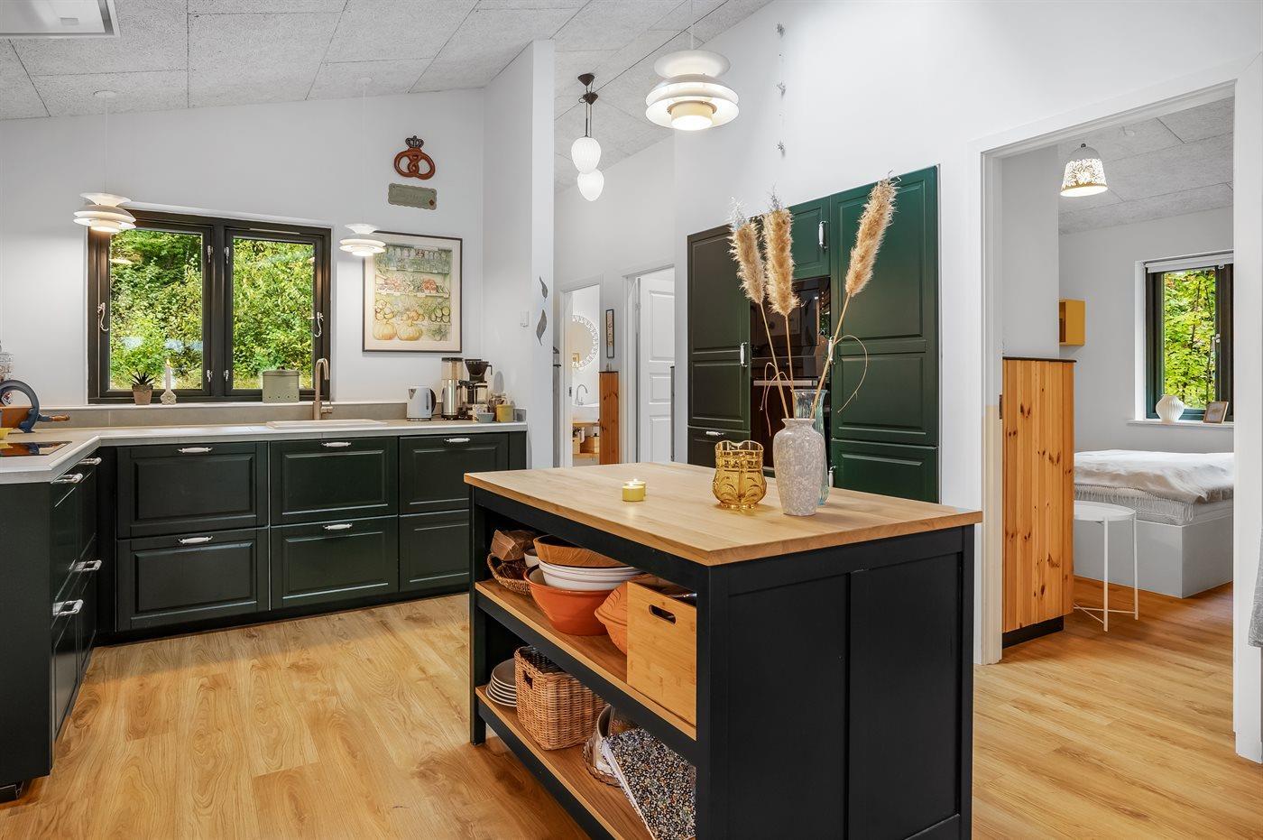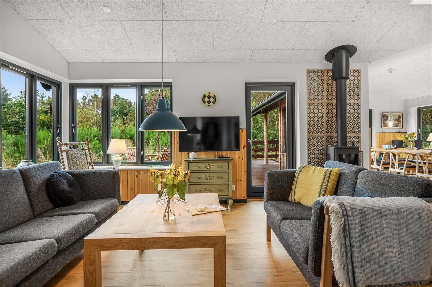Das Ferienhaus verfügt über 3 Schlafzimmer, alle mit Doppelbetten. Das Wohnzimmer besticht mit einer gemütlichen Atmosphäre sowie einem Kaminofen, und das ganze Haus verfügt über Fußbodenheizung, die über eine effiziente Luft-Wasser-Wärmepumpe beheizt wird. Die Küche ist komplett ausgestattet mit modernen Geräten, sodass du während deines Urlaubs leckere Mahlzeiten zubereiten kannst.