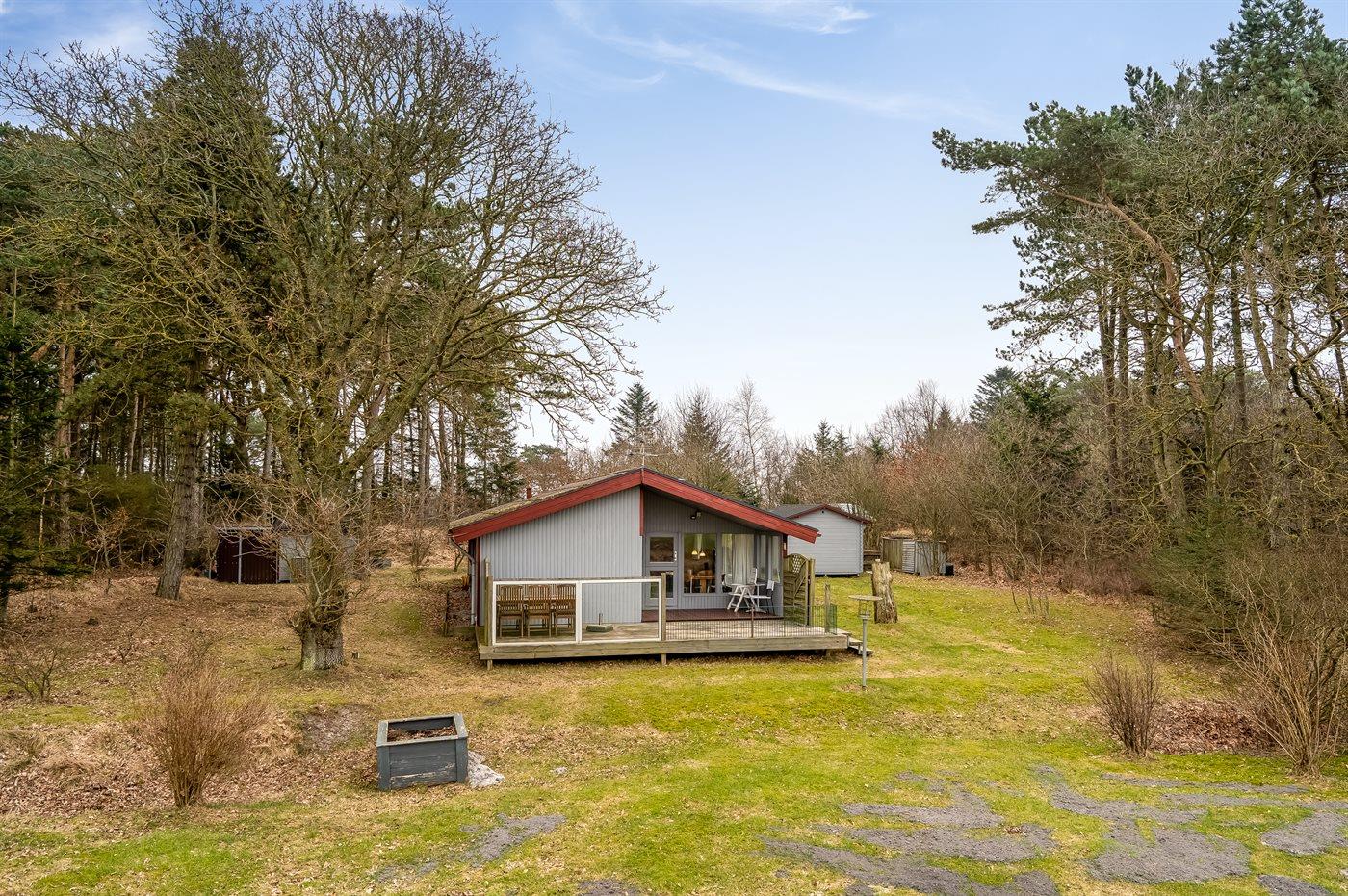 Schönes Ferienhaus in ruhiger Umgebung mit Blick auf Wald und offene Felder, wo du die Natur und das reiche Tierleben ganz aus der Nähe erleben kannst. Hier hast du gute Chancen, Rehe, viele Vogelarten und die friedliche Stimmung zu beobachten, die echte Ferienhausidylle ausmacht.