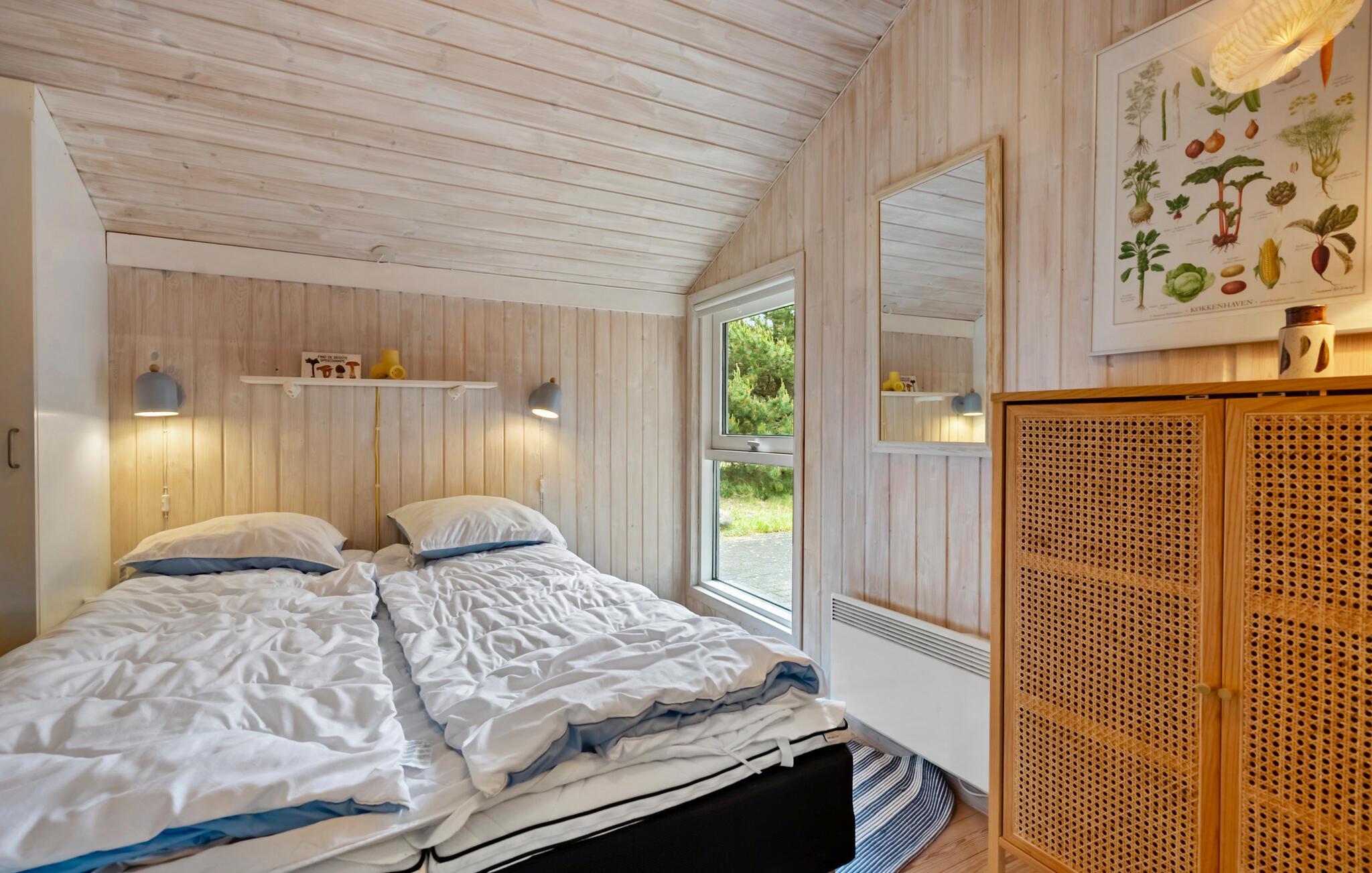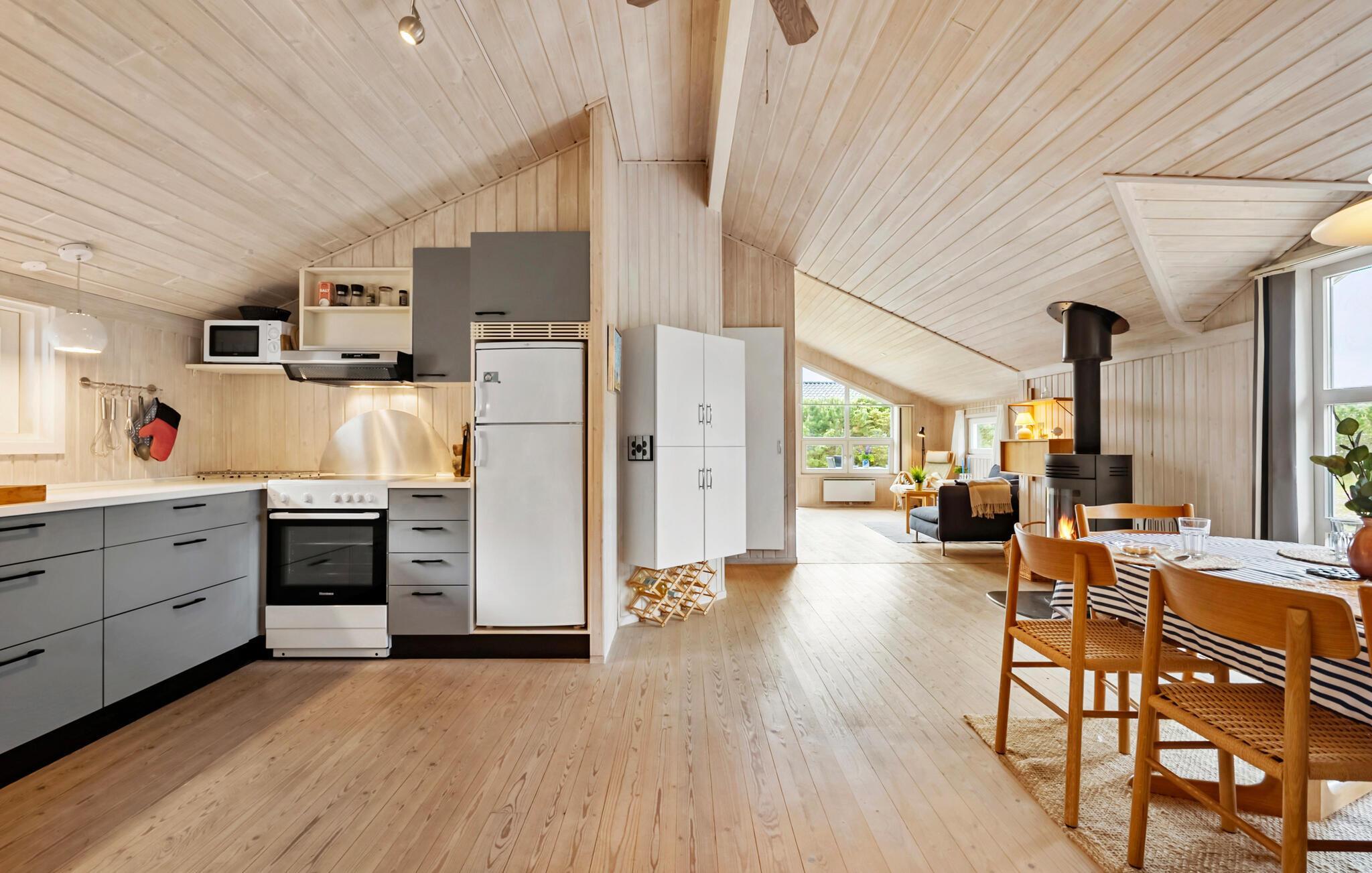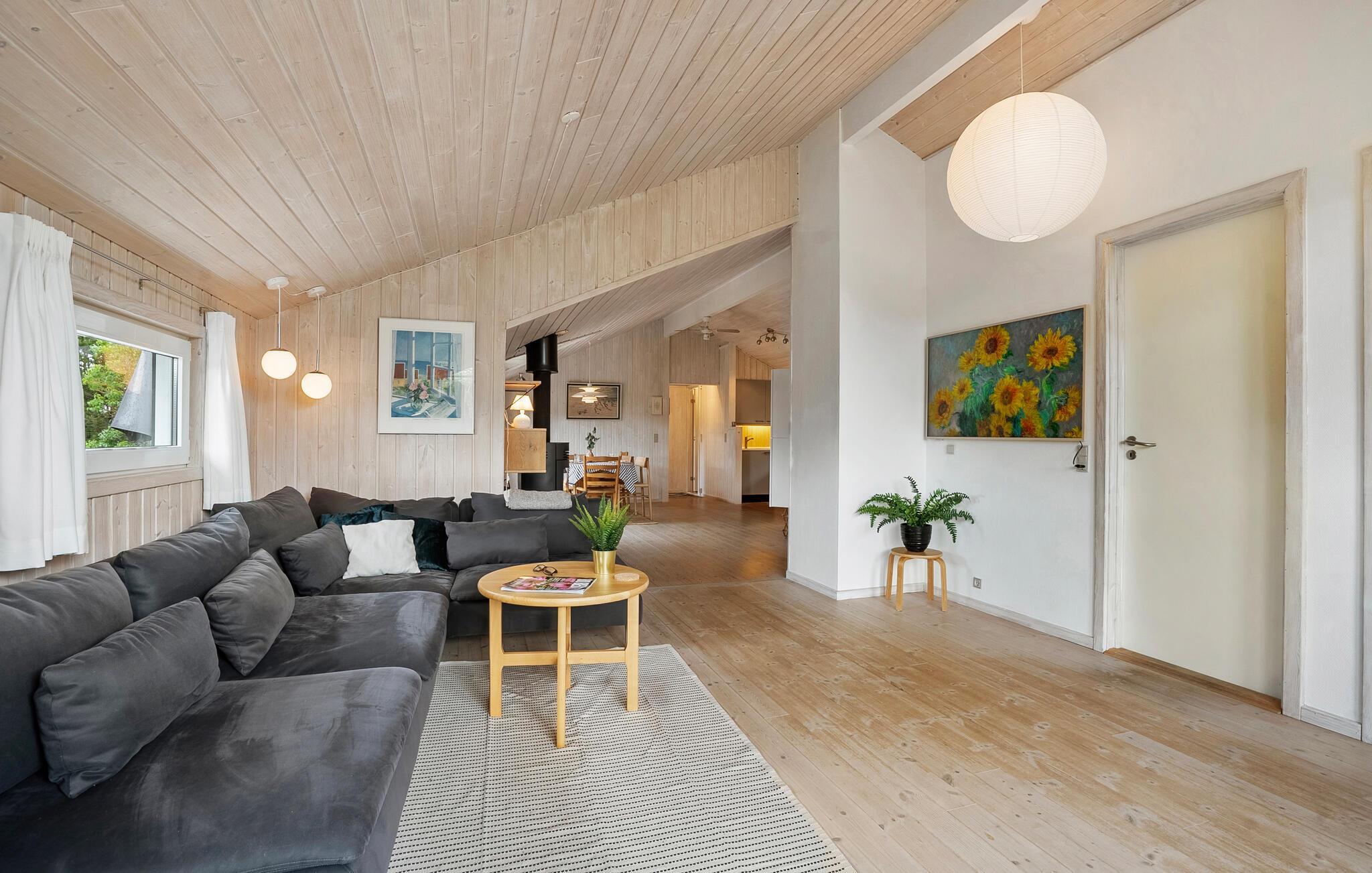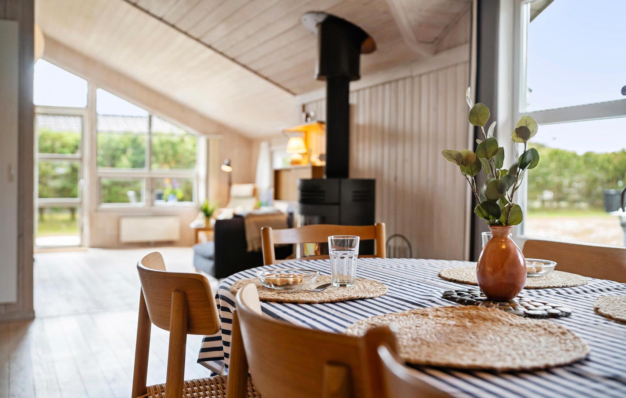 Dieses schöne Urlaubsdomizil begrüßt Sie nur wenige Schritte vom Strand von Lyngså entfernt mit einer hellen und freundlichen Wohnatmosphäre. Lassen Sie sich beim Kochen vom Blick ins Grüne inspirieren und freuen Sie sich auf harmonische Mahlzeiten im behaglichen Essbereich. An kühlen Tagen können Sie den Kaminofen entfachen, nach einem langen Strandspaziergang im Whirlpool entspannen oder sich wohlige Momente in der Sauna gönnen. Streamen Sie einen Film oder widmen Sie sich Ihren Liebsten bei einem gemütlichen Spieleabend auf dem Sofa.