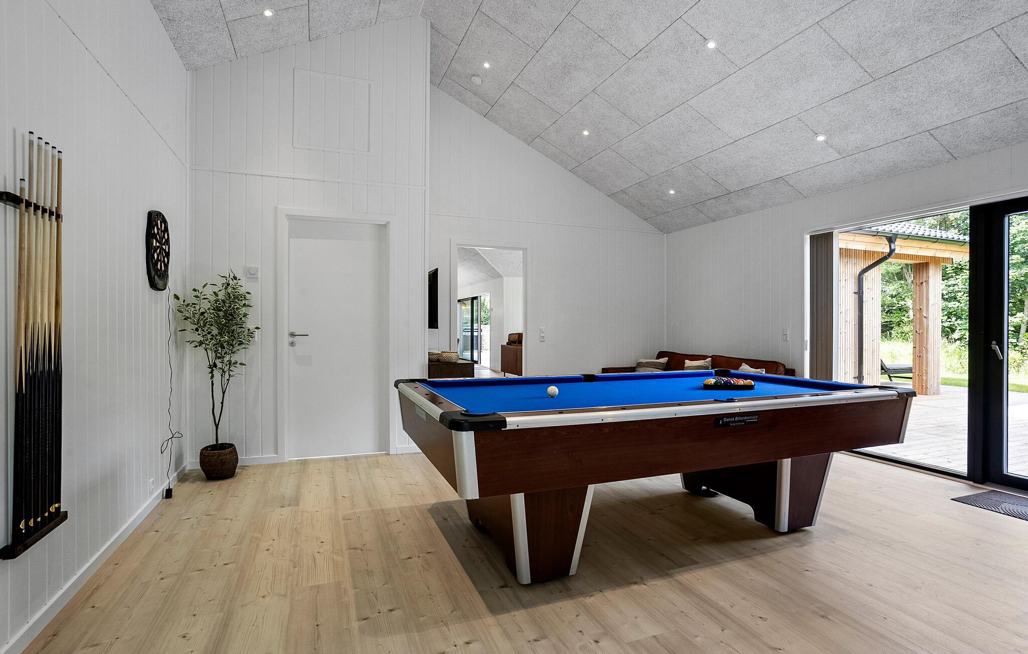 Warme Holztöne, dezente Farben und liebevoll ausgewählte Möbel schaffen eine Atmosphäre, in der Sie zur Ruhe kommen und zugleich neue Energie tanken können. Auf der großzügigen Sofalandschaft finden Sie Raum zum Lesen, Entspannen oder für gesellige Filmabende. Wer es aktiver mag, spielt eine Runde Billard oder Tischfußball, während in der modernen Küche köstliche Mahlzeiten zubereitet werden, begleitet vom Duft frischer Zutaten und einem Glas Wein.