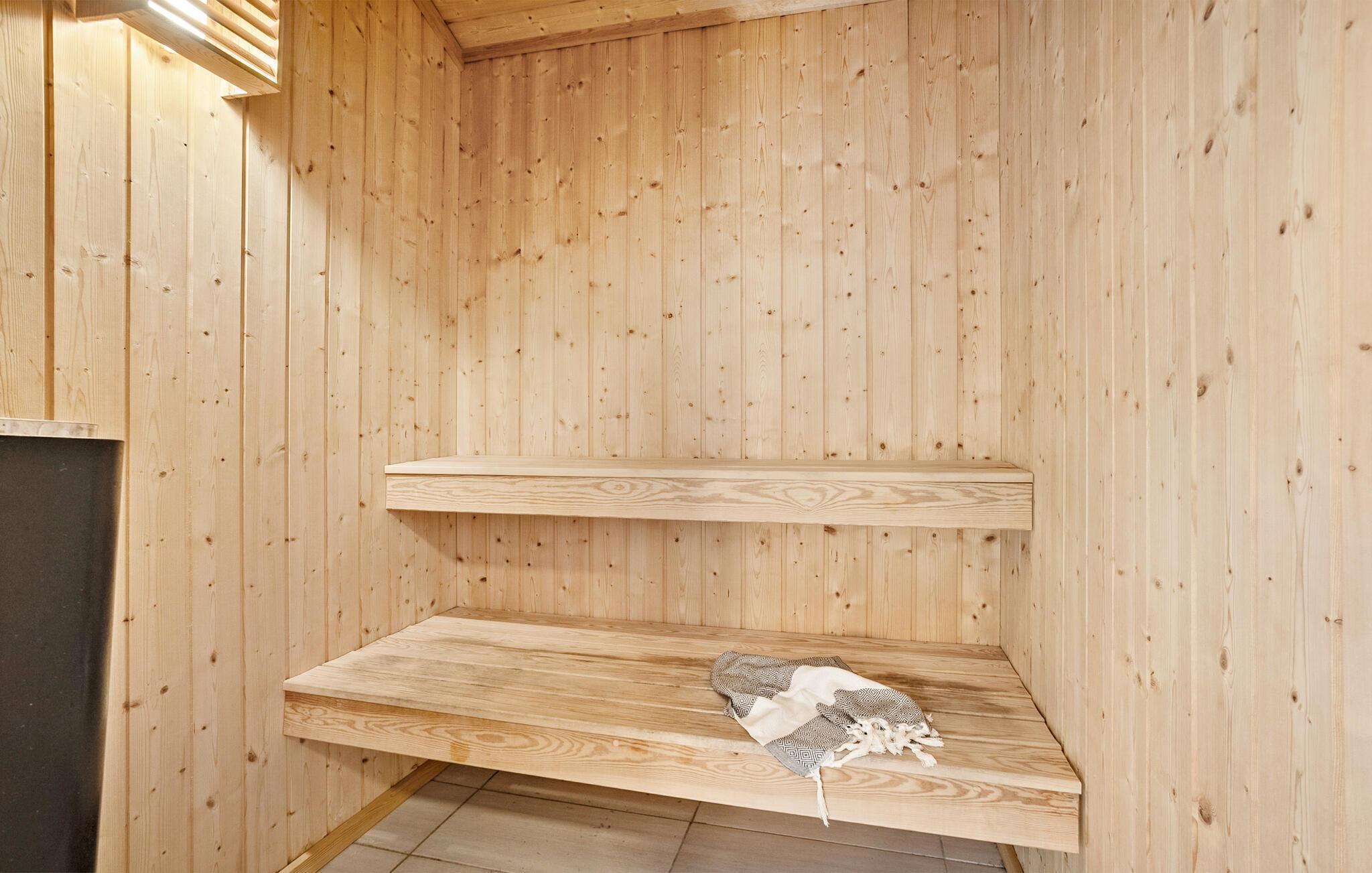 Modernes Ferienhaus mit Pool, Sauna und großem Aktivitätsraum nahe Ostküste in Dänemark.