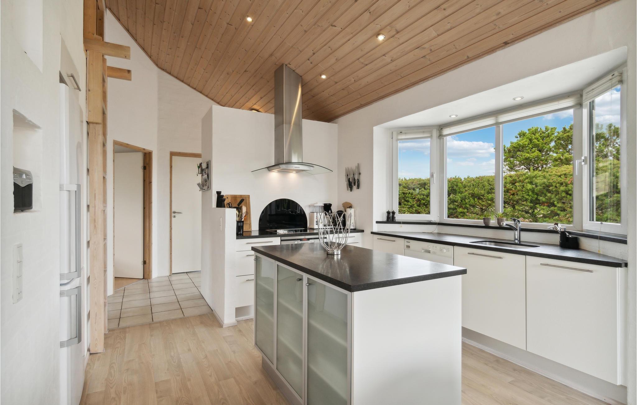 In attraktiver Lage nur wenige Schritte von den Dünen und dem Sandstrand entfernt finden Sie dieses großartige Ferienhaus. Es bietet ein geschmackvolles Interieur und den idealen Rahmen für unbeschwerte Urlaubstage mit Ruhe, Komfort und Wellness. Bereiten Sie in der tollen Küche Ihre Lieblingsgerichte gemeinsam zu und genießen Sie dabei den Blick auf die Umgebung. Im großen, hellen Wohnraum werden Sie viele gemütliche Stunden mit Ihren Lieben verbringen, ob beim Brettspielen oder bei der Urlaubslektüre vorm Kaminofen. Nach einem Tag an der frischen Luft finden Sie wohlige Wärme in der Sauna oder im Whirlpool.