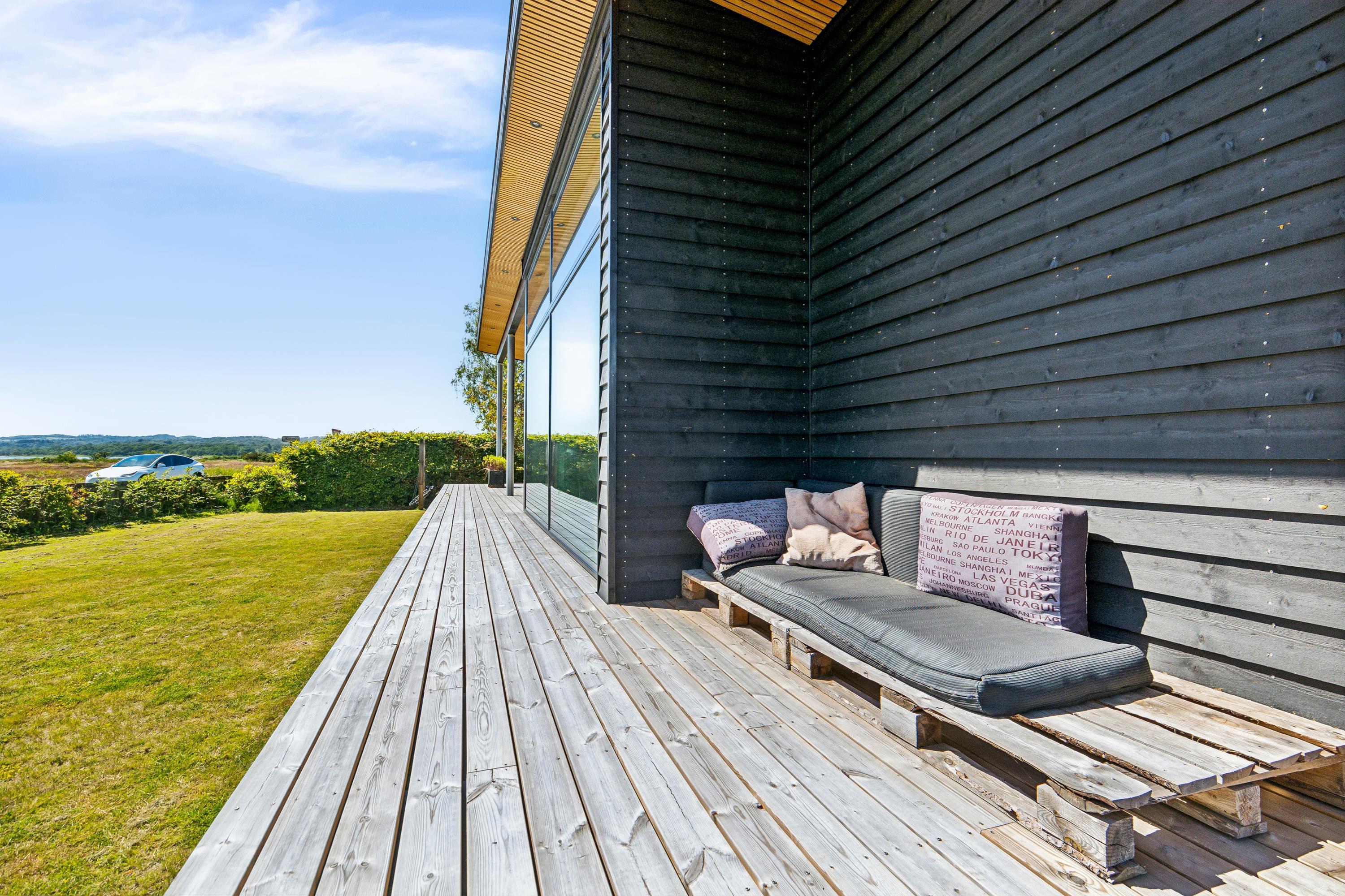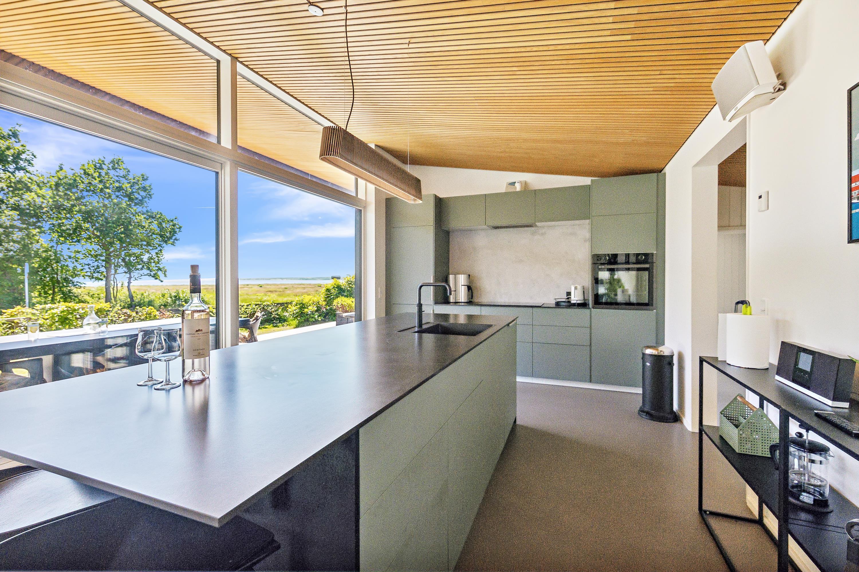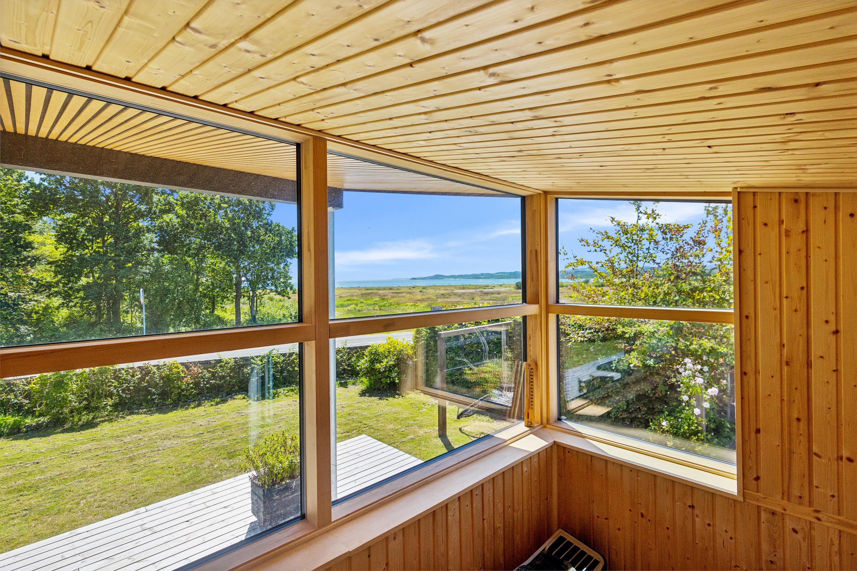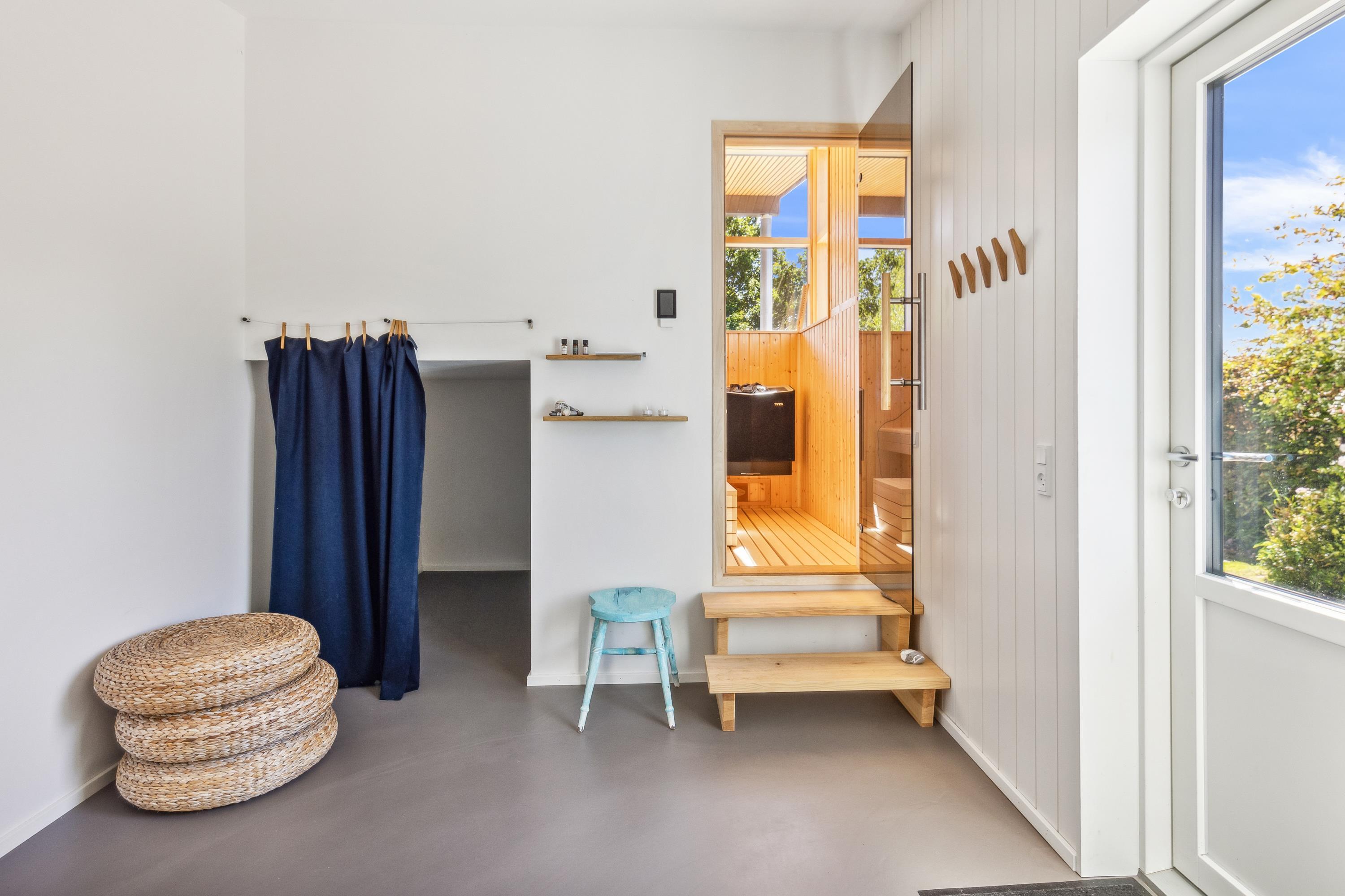 In einer völlig einzigartigen Lage finden Sie dieses wunderschöne Ferienhaus auf einem wunderschönen eingezäunten Grundstück. Das Ferienhaus ist in verschiedene Abteilungen unterteilt, wobei der große, schöne Küchengemeinschaftsraum als Treffpunkt dient und der große Tisch in der Küche zu angenehmen Gesprächen beim Kochen einlädt. Großer heller Essbereich mit Zugang zur großen Terrasse mit Gartenmöbeln und Grill. Hier lassen sich die großen Fenstertüren zur Seite schieben und schaffen eine fantastische Verschmelzung von „Außen und Innen“. Zwei schöne Badezimmer mit Duschen und ein großer Raum mit erhöhter Sauna, von der aus man den schönsten Blick auf das Wasser hat. Die Schlafplätze des Hauses verteilen sich auf ein großes Zimmer mit Doppelbett, sowie ein Zimmer mit zwei Doppel Etagenbetten und zusätzlich zwei Schlafplätzen auf einer Doppelschlafcouch im Fernsehzimmer. Im Außenbereich finden Sie an drei Seiten des Hauses wunderschöne erhöhte Holzterrassen, auf denen Sie sowohl den Sonnenaufgang als auch den Sonnenuntergang genießen können. Wenn Sie am Strand waren, können Sie unter der Außendusche des Hauses mit heißem und kaltem Wasser duschen. Auf dem Gelände finden Sie außerdem einen gemütlichen Shelter sowie eine Schaukel und einen Sandkasten.