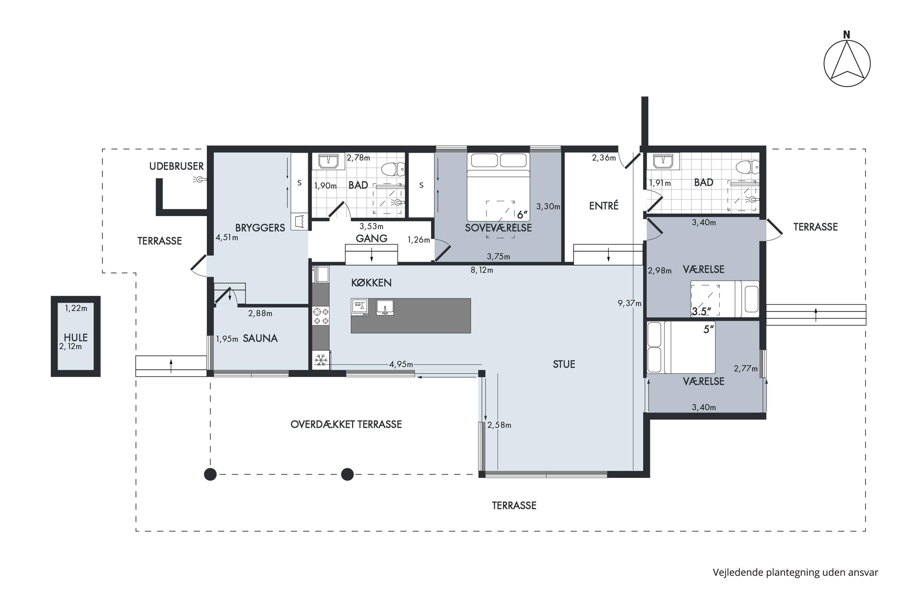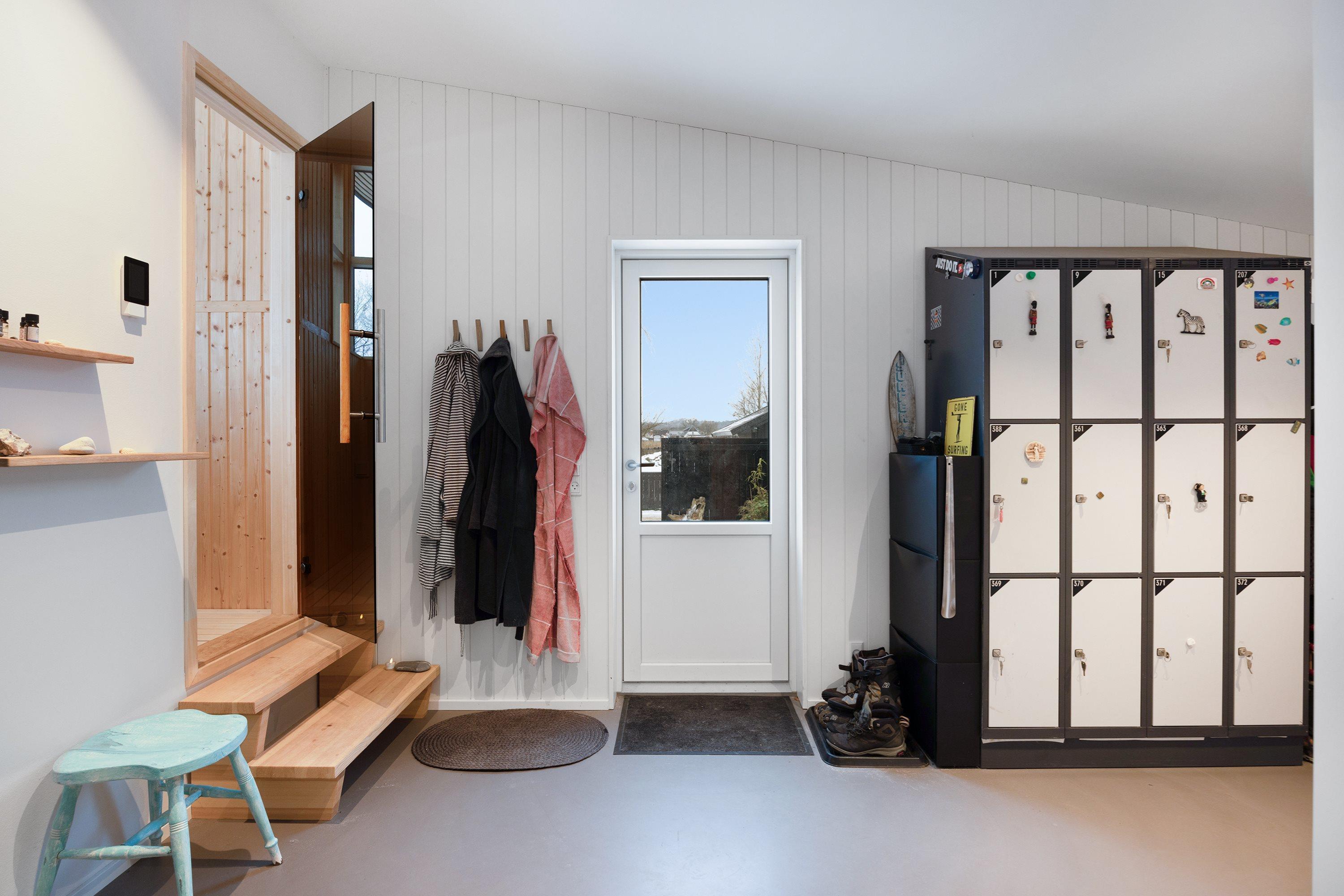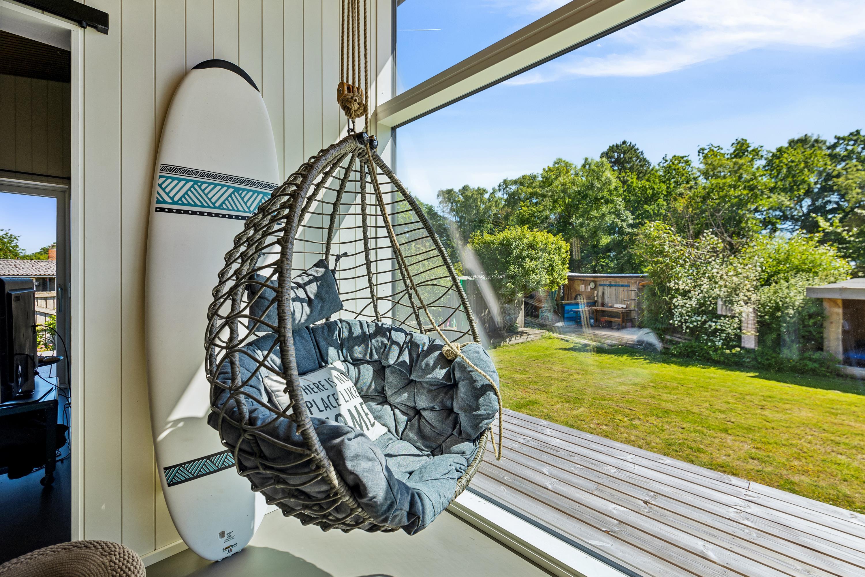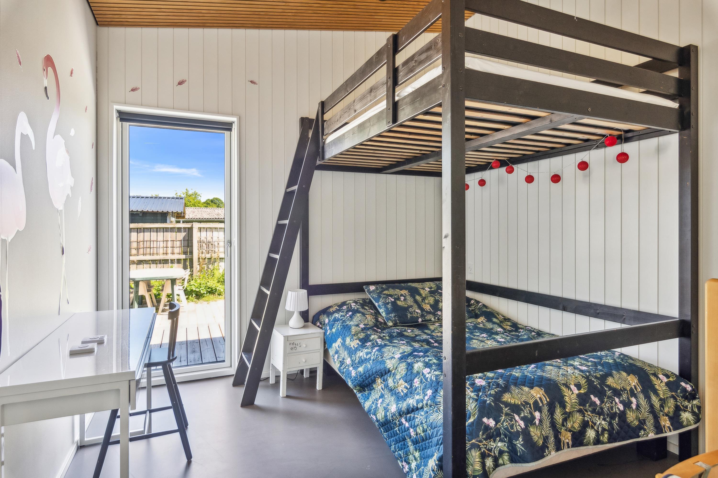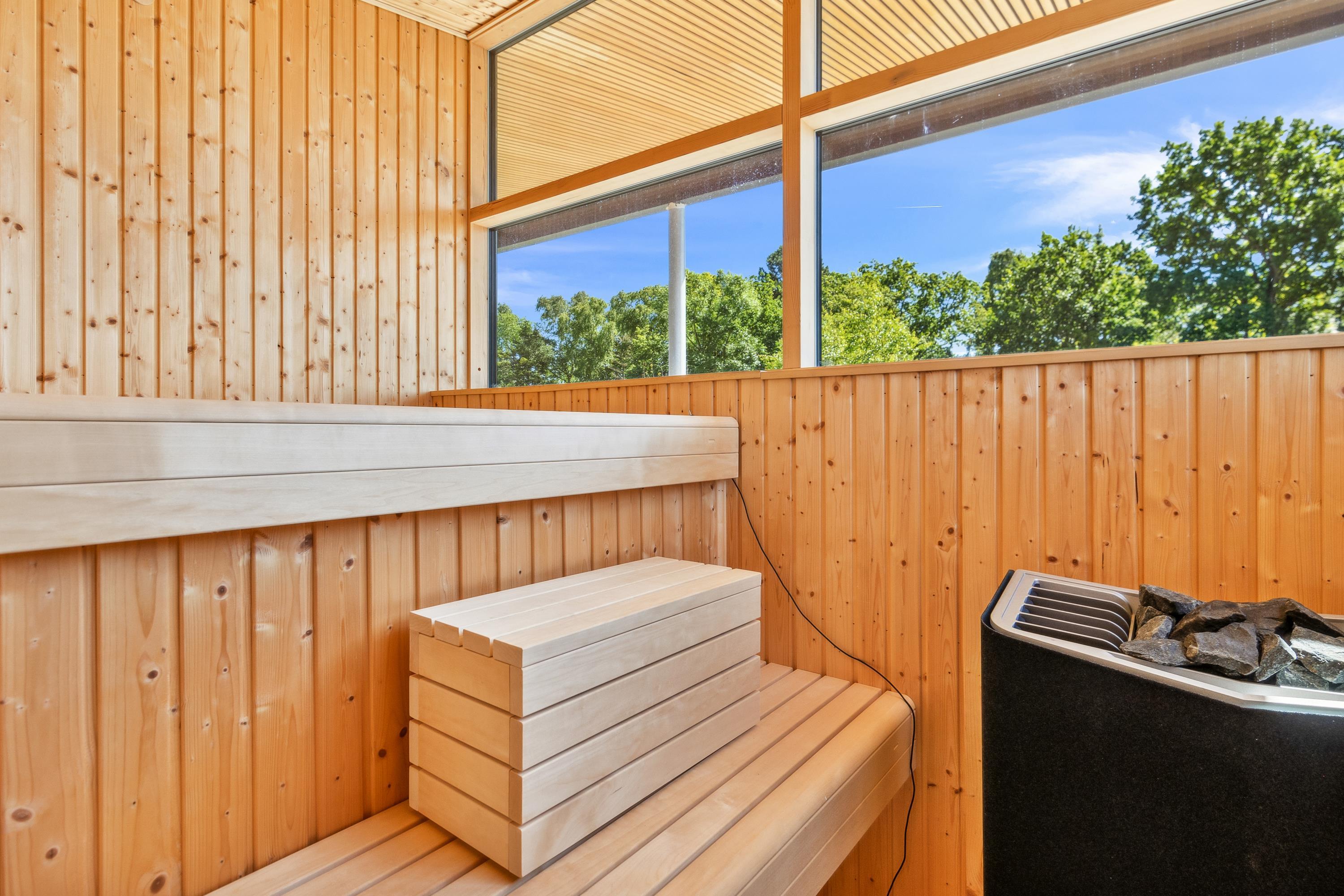 In einer völlig einzigartigen Lage finden Sie dieses wunderschöne Ferienhaus auf einem wunderschönen eingezäunten Grundstück. Das Ferienhaus ist in verschiedene Abteilungen unterteilt, wobei der große, schöne Küchengemeinschaftsraum als Treffpunkt dient und der große Tisch in der Küche zu angenehmen Gesprächen beim Kochen einlädt. Großer heller Essbereich mit Zugang zur großen Terrasse mit Gartenmöbeln und Grill. Hier lassen sich die großen Fenstertüren zur Seite schieben und schaffen eine fantastische Verschmelzung von „Außen und Innen“. Zwei schöne Badezimmer mit Duschen und ein großer Raum mit erhöhter Sauna, von der aus man den schönsten Blick auf das Wasser hat. Die Schlafplätze des Hauses verteilen sich auf ein großes Zimmer mit Doppelbett, sowie ein Zimmer mit zwei Doppel Etagenbetten und zusätzlich zwei Schlafplätzen auf einer Doppelschlafcouch im Fernsehzimmer. Im Außenbereich finden Sie an drei Seiten des Hauses wunderschöne erhöhte Holzterrassen, auf denen Sie sowohl den Sonnenaufgang als auch den Sonnenuntergang genießen können. Wenn Sie am Strand waren, können Sie unter der Außendusche des Hauses mit heißem und kaltem Wasser duschen. Auf dem Gelände finden Sie außerdem einen gemütlichen Shelter sowie eine Schaukel und einen Sandkasten.