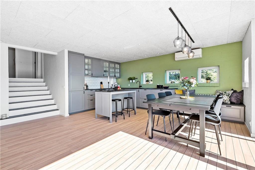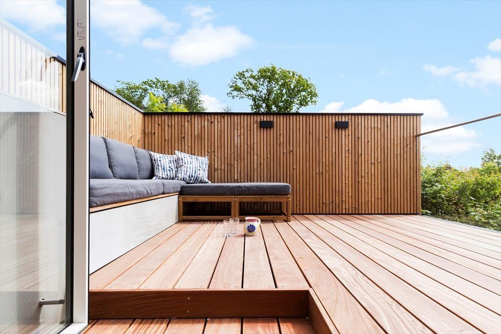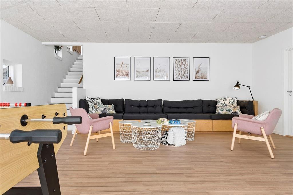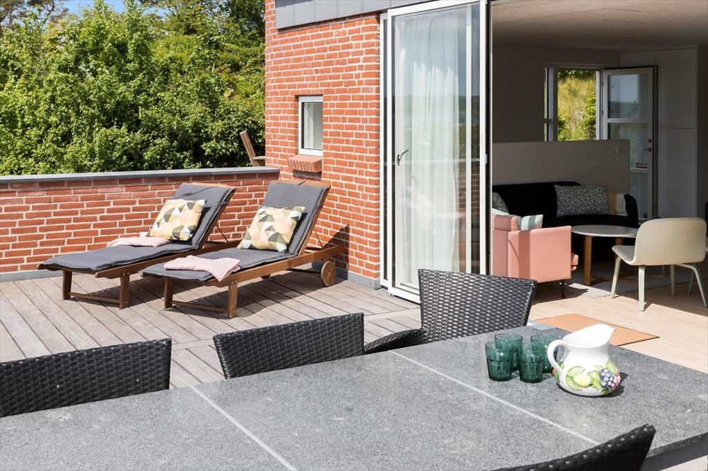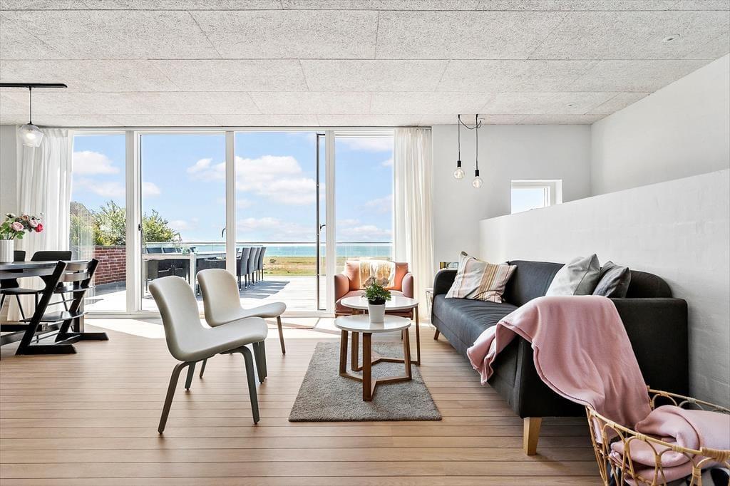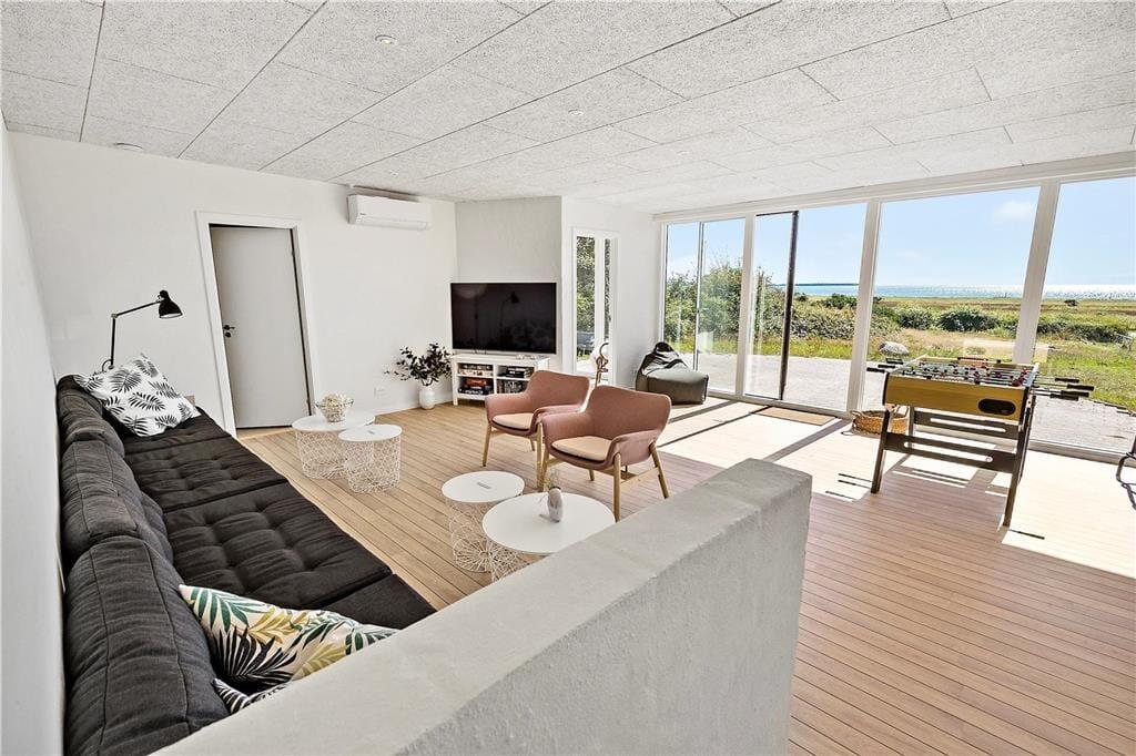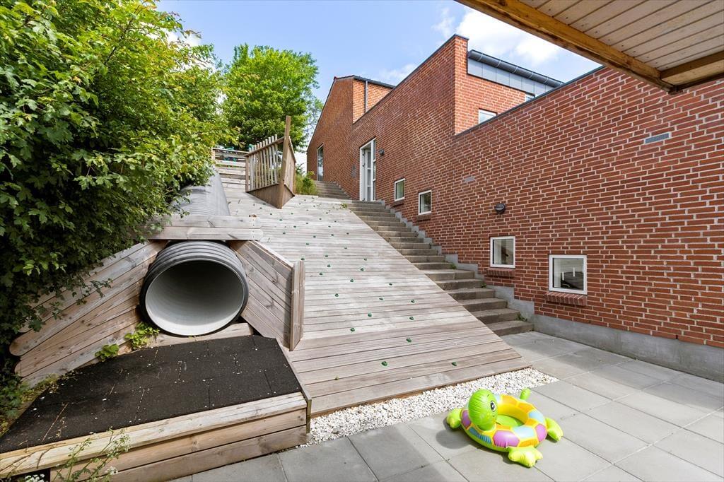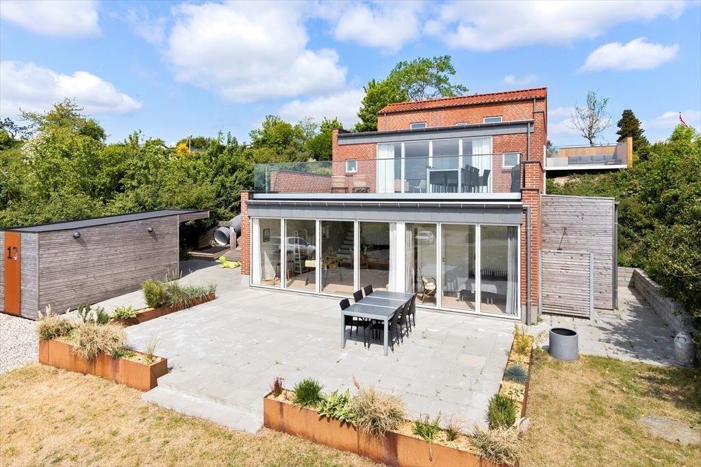 Draußen erwartet dich ein wunderschönes Grundstück mit mehreren Terrassen auf drei Ebenen. Ganz gleich, wo du dich im Ferienhaus aufhältst, du hast immer Zugang zu frischer Luft, Aussicht und Platz zum Spielen oder Entspannen. Für die Kinder gibt es einen eigenen Spielbereich mit Rutsche. Während die Kleinen sich austoben, planen die Erwachsenen das Grillmenü oder genießen ein Glas Wein. Der Weg zum Strand ist kurz – nur etwa 50 m. Dadurch bist du schnell am Wasser, spürst den Sand unter den Füßen oder unternimmst einen Spaziergang an der Küste. Mit Platz für bis zu zehn Gäste, viel Platz drinnen und draußen und der Natur direkt vor der Tür ist es ein perfekter Ort für Gemeinschaft, Spiel und Erholung – alles auf einmal.