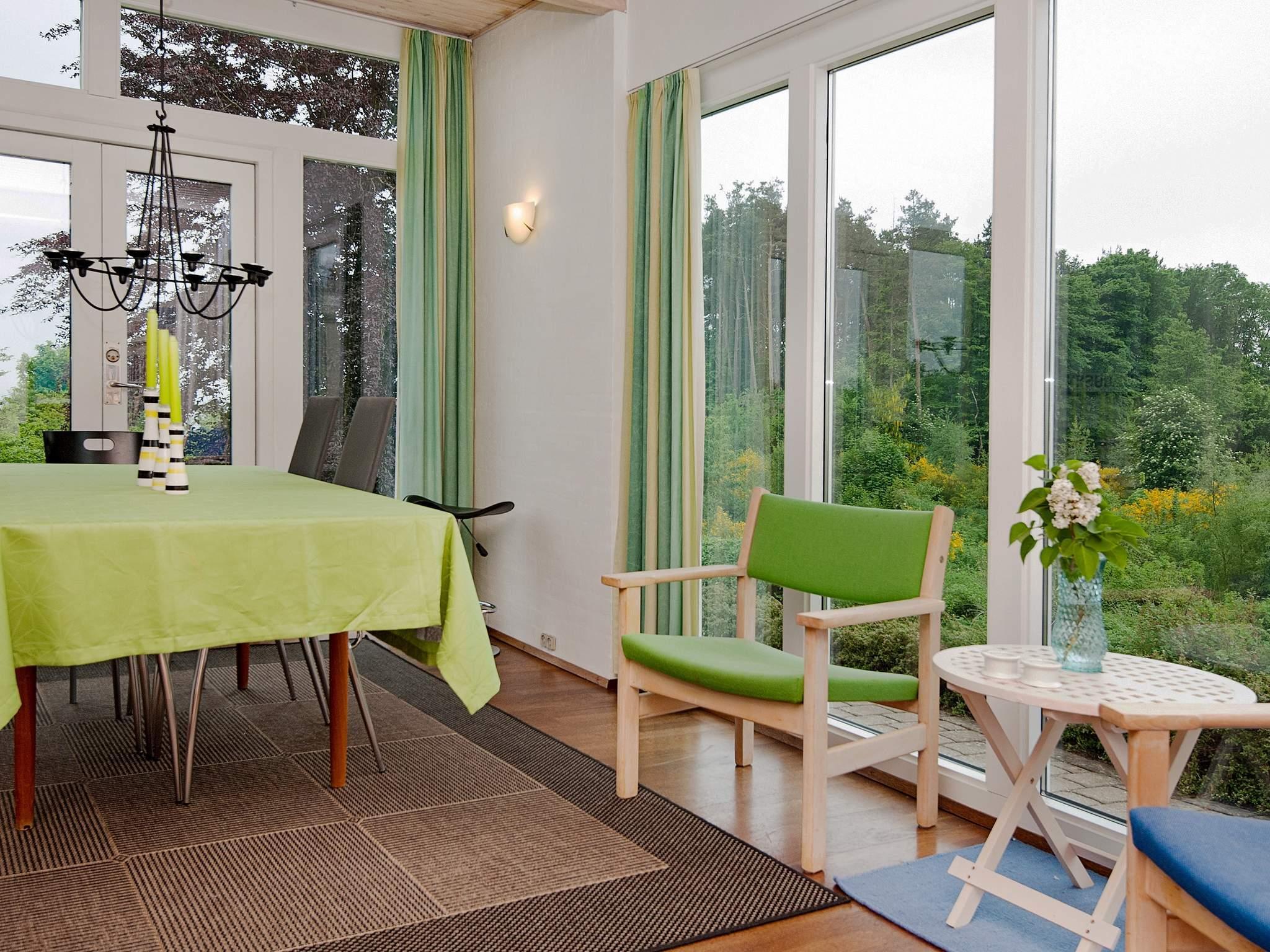 Ferienhaus in erhöhter Lage, mit herrlichem Ausblick in die grüne Umgebung und kleinem Meerblick! Innen ansprechende Einrichtung, komfortabel und zeitgemäß. Mehrere Sitzplätze im offenen Küchen-/Wohnbereich, ideal für das Familienleben.