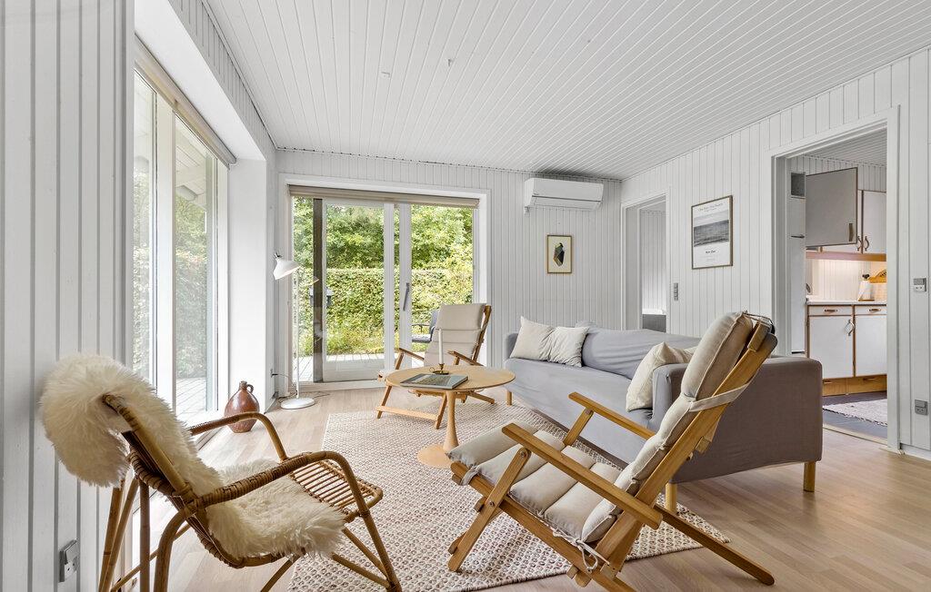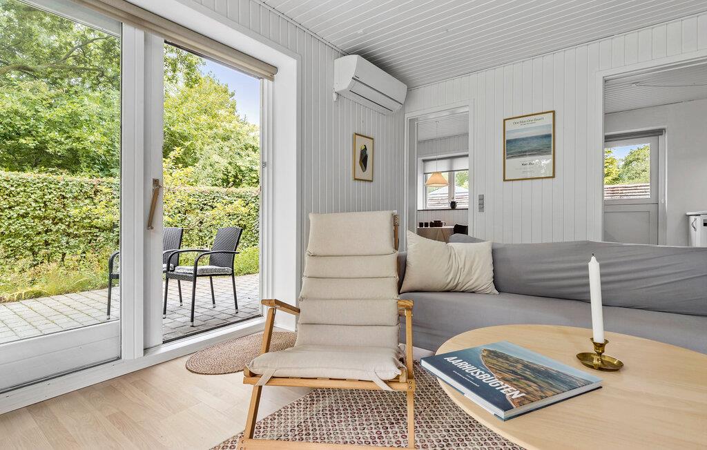 Gemütliches Ferienhaus nahe dem Strand von Lyngsbæk mit Sauna, Kamin und großem Garten für entspannte Urlaubstage.