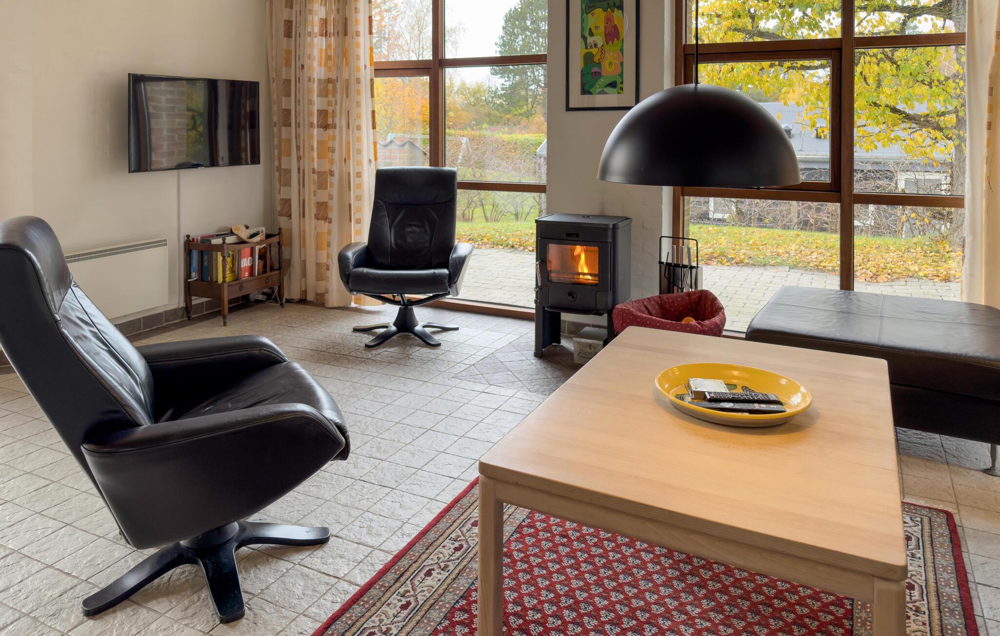 Hier steht ein Architekt hinter dem großen, modernen und hellen Ferienhaus in einer sehr begehrten Ferienhaussiedlung. Sie befinden sich hier im Gehabstandt vom kinderfreundlichen Sandstrand. In der Nähe des Strandes sind Lebensmittelgeschäft, Café und Restaurants zu finden. Ein Fuß- und Radweg verläuft am Strand entlang in die Stadt Ebeltoft. Das Haus liegt hoch und bietet daher eine gute Aussicht. Das Grundstück ist etwas abfallend, Rasen und kleine Bäume wachsen auf ihm. Wohl fühlen werden Sie sich im Haus in drei guten Schlafzimmern, einem guten Badezimmer und einer Wohnküche. Draußen haben Sie die große Terrasse zur Verfügung. Das Internet wird über eine schnelle Glasfaserkabelverbindung geliefert (50/50).