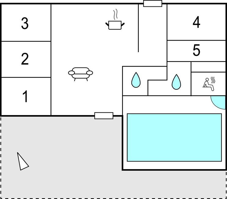 Das Haus bietet seinen Gästen 5 Schlafzimmer und 2 Bäder sowie eine Küche, die mit dem Essbereich verbunden ist. Vom Wohnraum blicken Sie auf den Poolbereich und haben Zugang zur Südostterrasse. Entspannen Sie in der Sauna, erfrischen Sie sich im Pool oder genießen Sie ein Bad im Whirlpool, das Ferienhaus bietet Wellness der Extraklasse. Das Haus und der Swimmingpool werden mit einer Wärmepumpe beheizt.