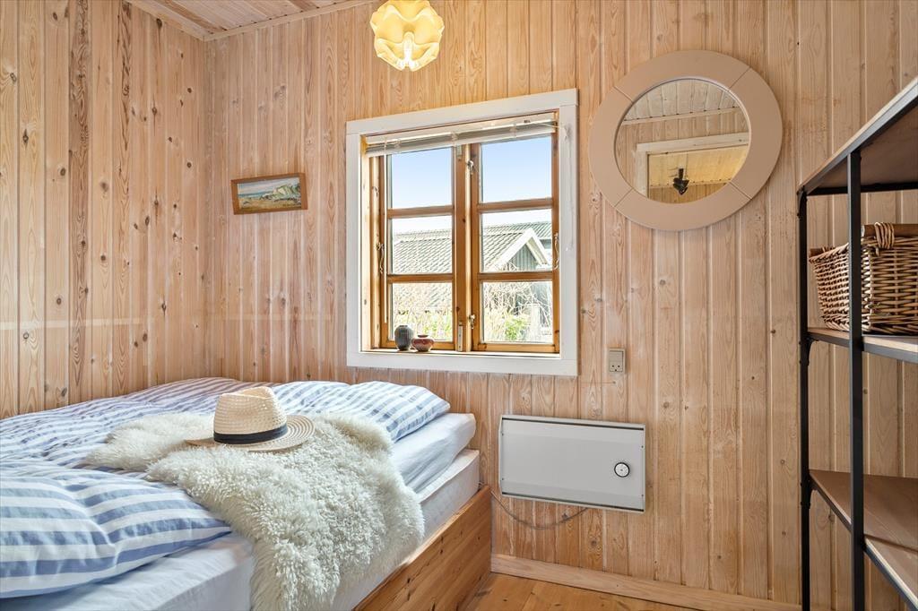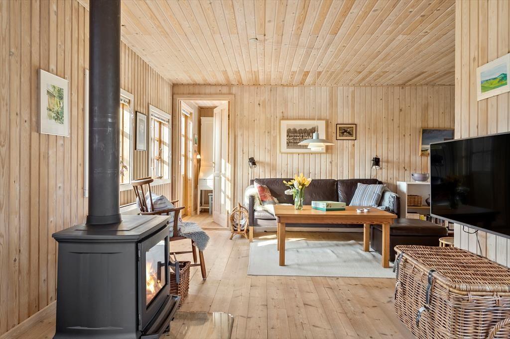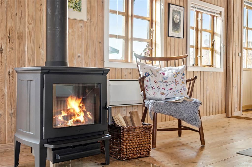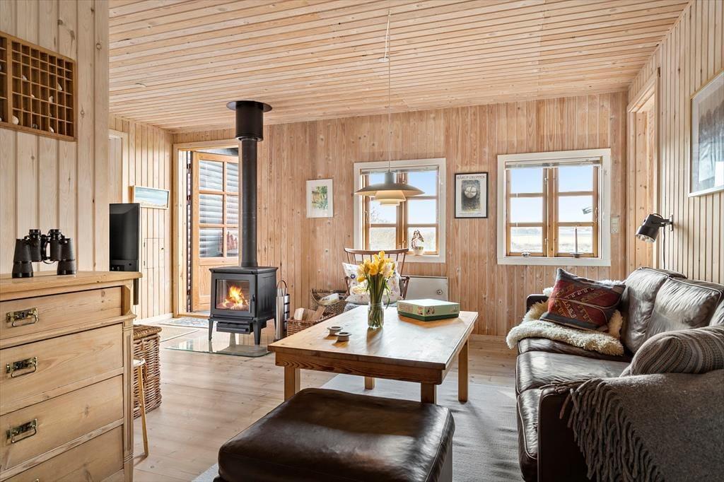 Gegenüber der Küche empfängt Sie der gemütliche Wohnraum mit einer Sofaecke und einem Kaminofen. Der Fernseher mit Chromecast ermöglicht es Ihnen, mittels Ihres eigenen Smartphones oder Tablets und der hauseigenen Internetverbindung Ihre privaten Streamingdienste zu nutzen. Während Sie im kleinen Wohnraum in Ruhe lesen oder Karten spielen, sorgt der Kaminofen für gemütliche, ganz authentische Ferienhausstimmung. Der Wohnraum verfügt über einen Zugang zu einer Holzterrasse, die angenehm sonnig ist und mit Aussicht auf offene Felder besticht. Die beiden Schlafzimmer mit jeweils einem Doppelbett verfügen über Stauraum. Die Zimmer sind nicht groß aber sehr gemütlich.