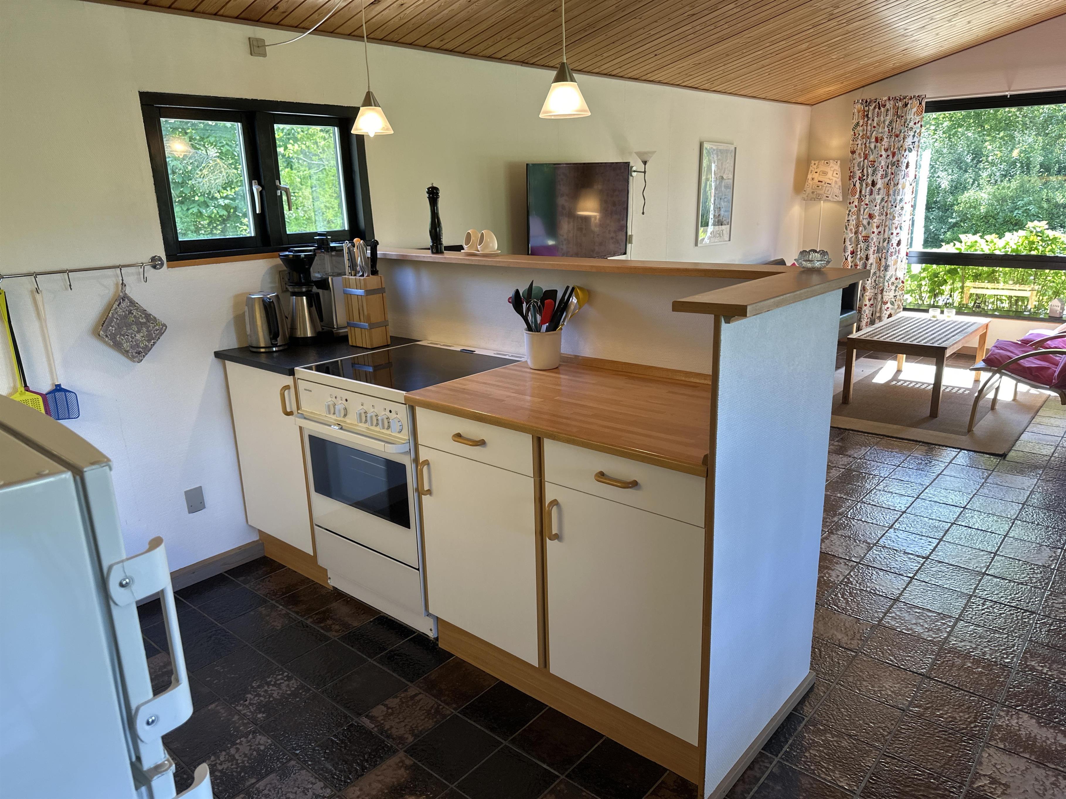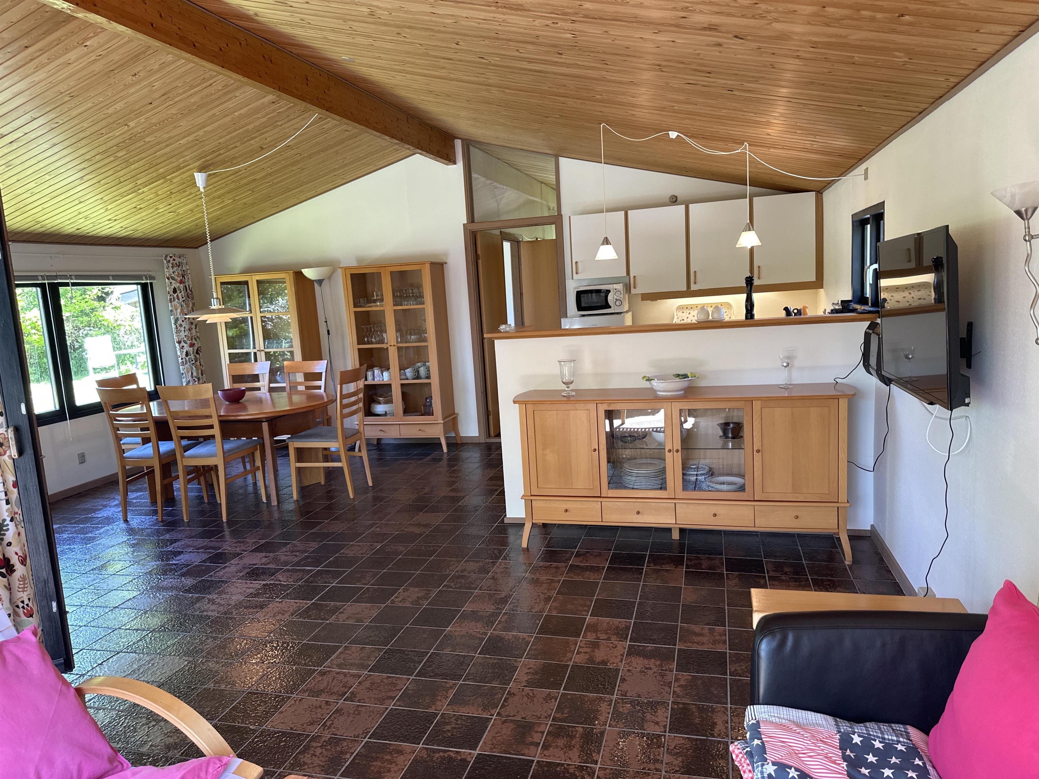 Treten Sie ein in ein helles und einladendes Ferienhaus, in dem Sie sich schnell wohlfühlen werden. Hier erwartet Sie eine geräumige Wohnküche mit Essbereich und einem gemütlichen Wohnzimmer – der natürliche Treffpunkt nach einem erlebnisreichen Tag auf der schönen Insel Samsø.