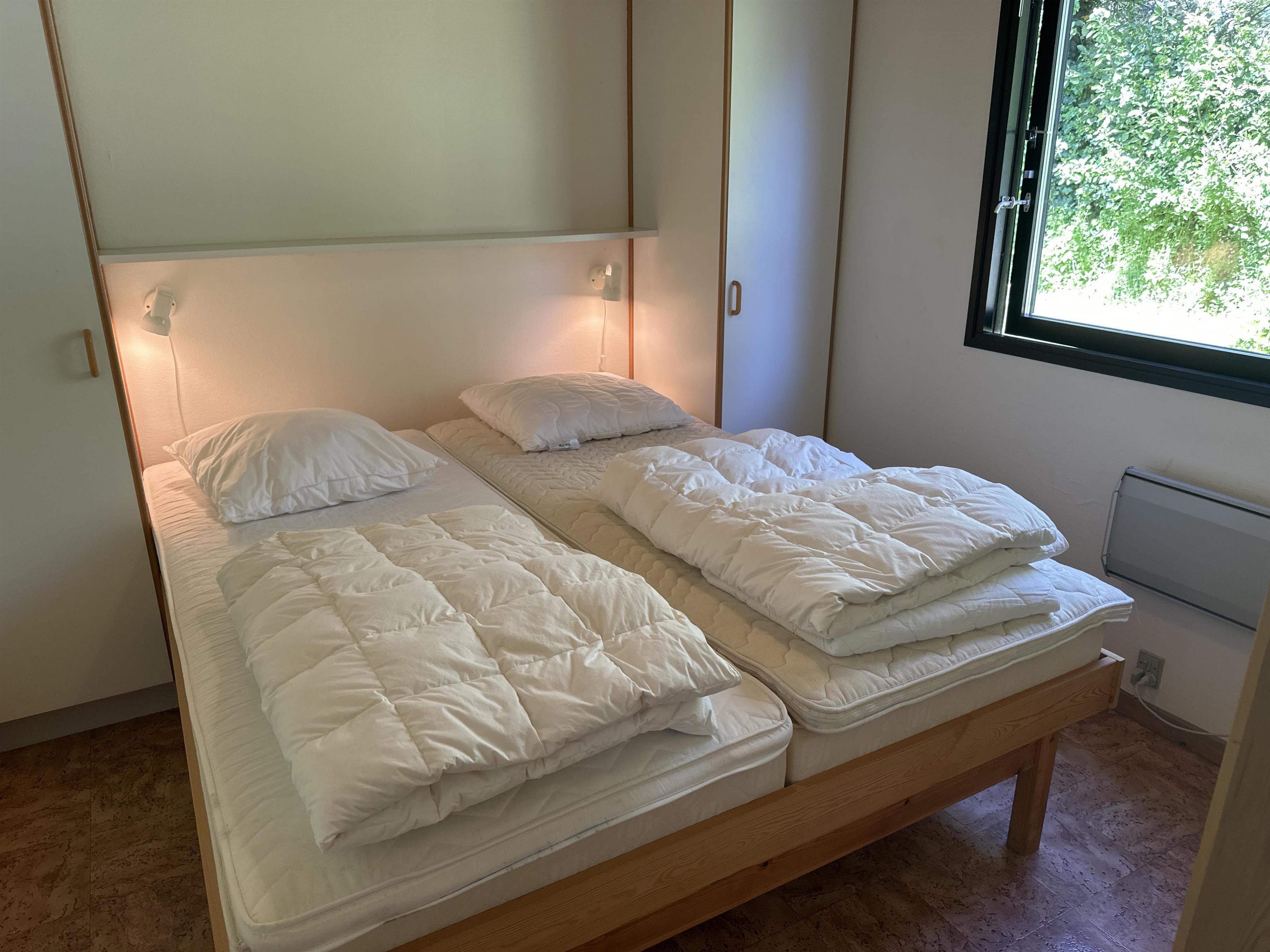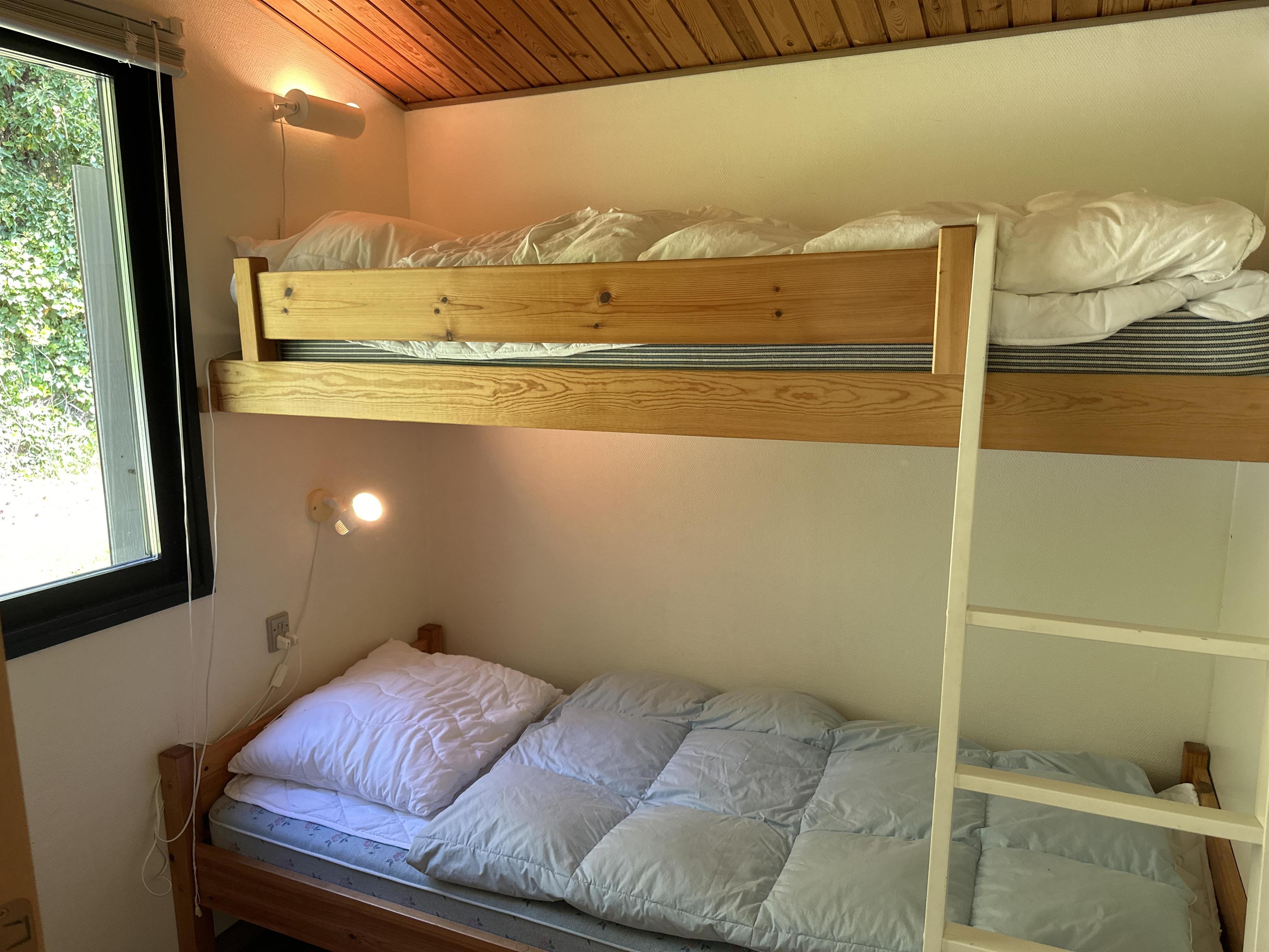 Das Ferienhaus verfügt über drei gute Schlafzimmer: eines mit Doppelbett, eines mit zwei Einzelbetten und eines mit Etagenbett – perfekt für Kinder und Erwachsene, die sich nach einem aktiven Urlaubstag eine gute Nachtruhe wünschen.