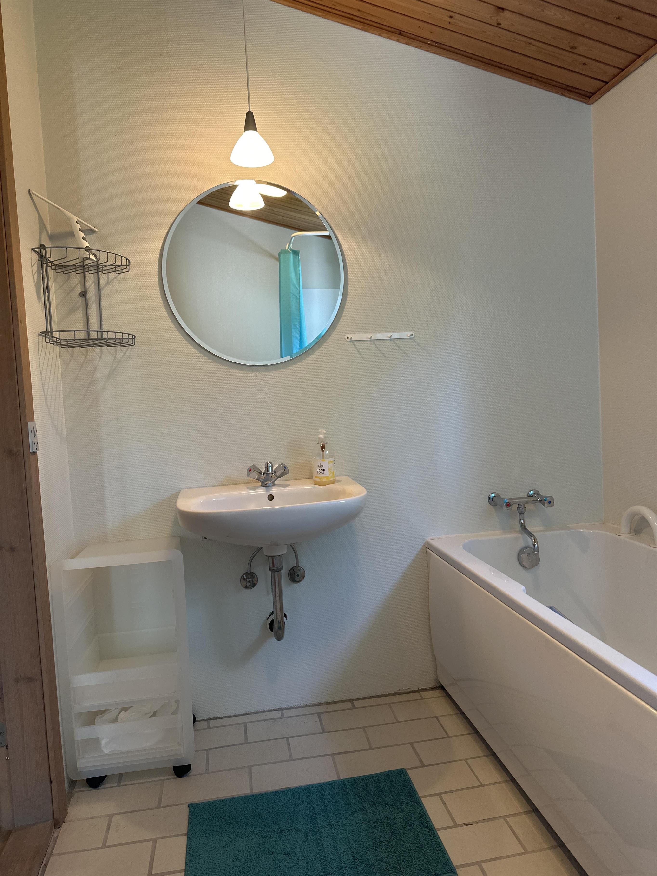 Das Badezimmer ist hübsch und funktional eingerichtet mit einer Duschkabine und einem Whirlpool, in dem Sie nach einem Ausflug ans Meer ein entspannendes Bad genießen können. Im dazugehörigen Anbau finden Sie außerdem einen praktischen Waschraum und ein zusätzliches Badezimmer mit Sauna – ideal für einen ruhigen Moment mit Wärme und Wohlbefinden an einem kühlen Abend oder nach einem erfrischenden Spaziergang.