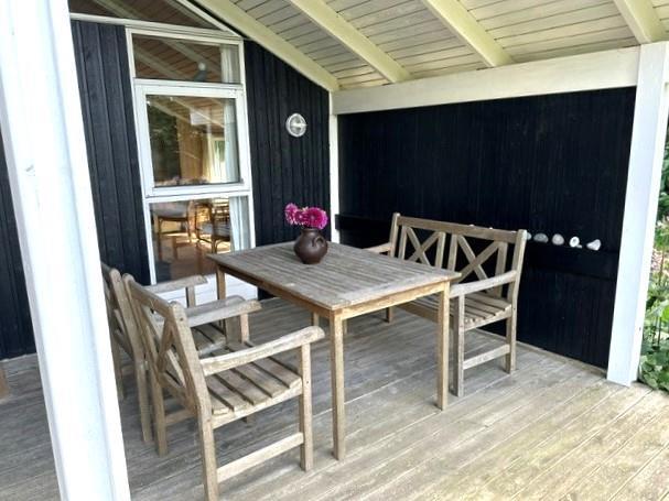 Wenn der Abend hereinbricht, ist die teilweise überdachte Terrasse hinter dem Haus der perfekte Ort zum Grillen, Entspannen und Genießen der ruhigen Sommerabende. Hier haben Sie reichlich Gelegenheit, den Tag im Schutz vor Wind und Wetter zu verlängern, während die Ruhe über die Gegend hereinbricht.