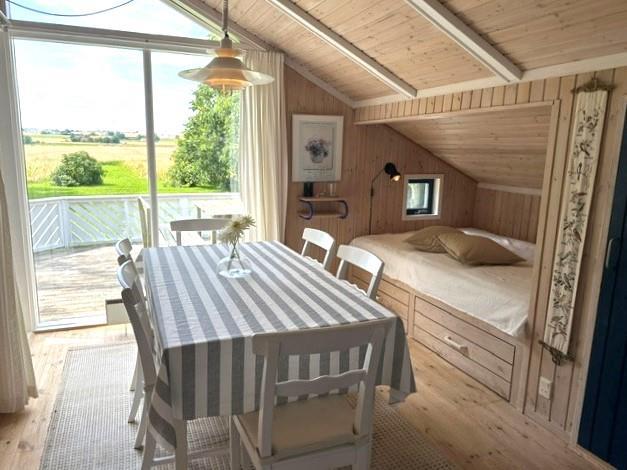 Das Wohnzimmer verfügt außerdem über eine gemütliche Nische – eine perfekte kleine Ecke zum Entspannen, Lesen oder als zusätzlicher Schlafplatz. Das Haus hat außerdem zwei schöne Schlafzimmer: eines mit einem Doppelbett und eines mit zwei Einzelbetten. Das moderne Badezimmer ist praktisch eingerichtet mit einer Duschkabine und allen notwendigen Einrichtungen. Mit Platz für bis zu 6 Personen ist das Haus ideal, egal ob Sie alleine, zu zweit, mit Freunden oder der Familie reisen.