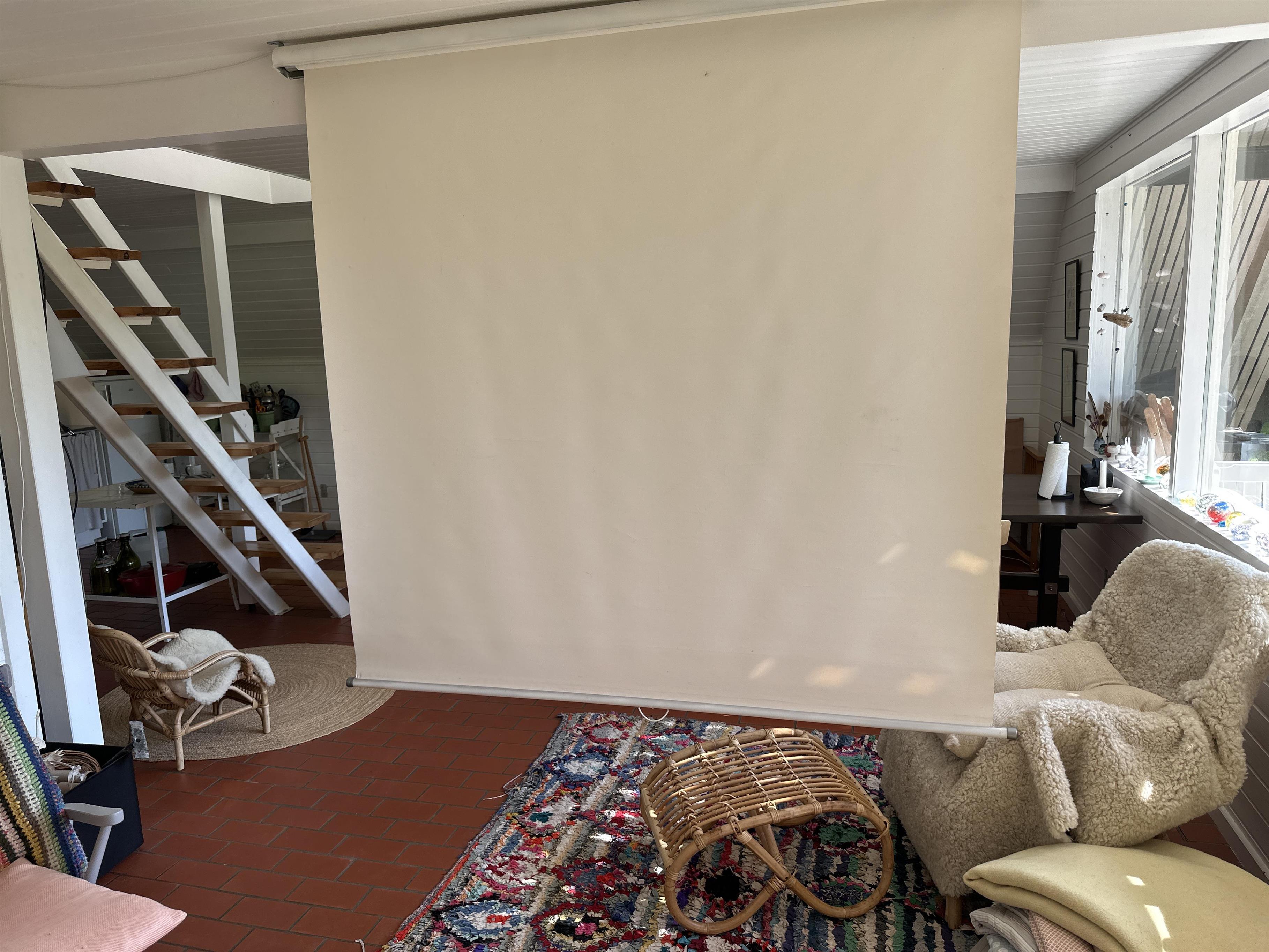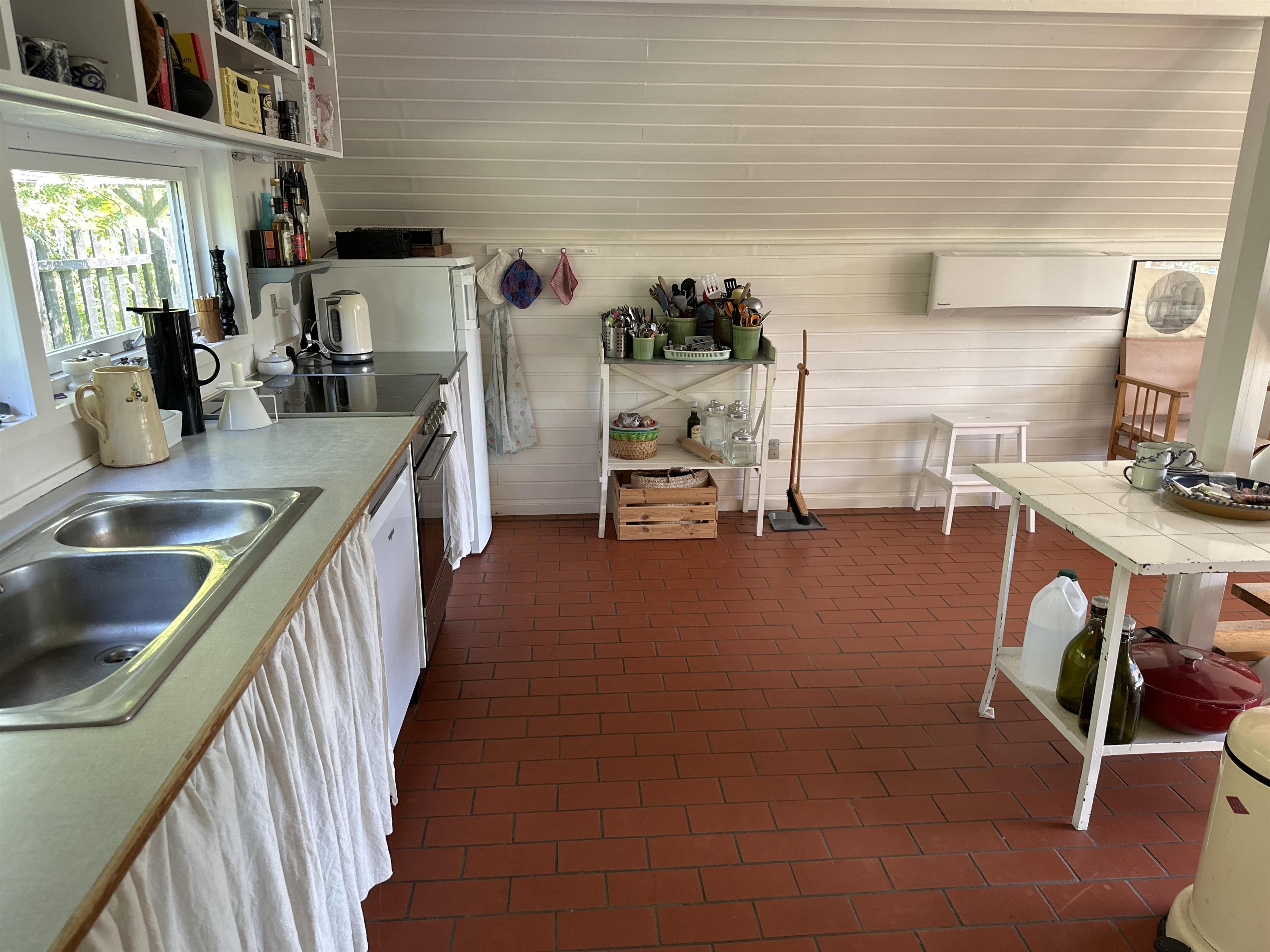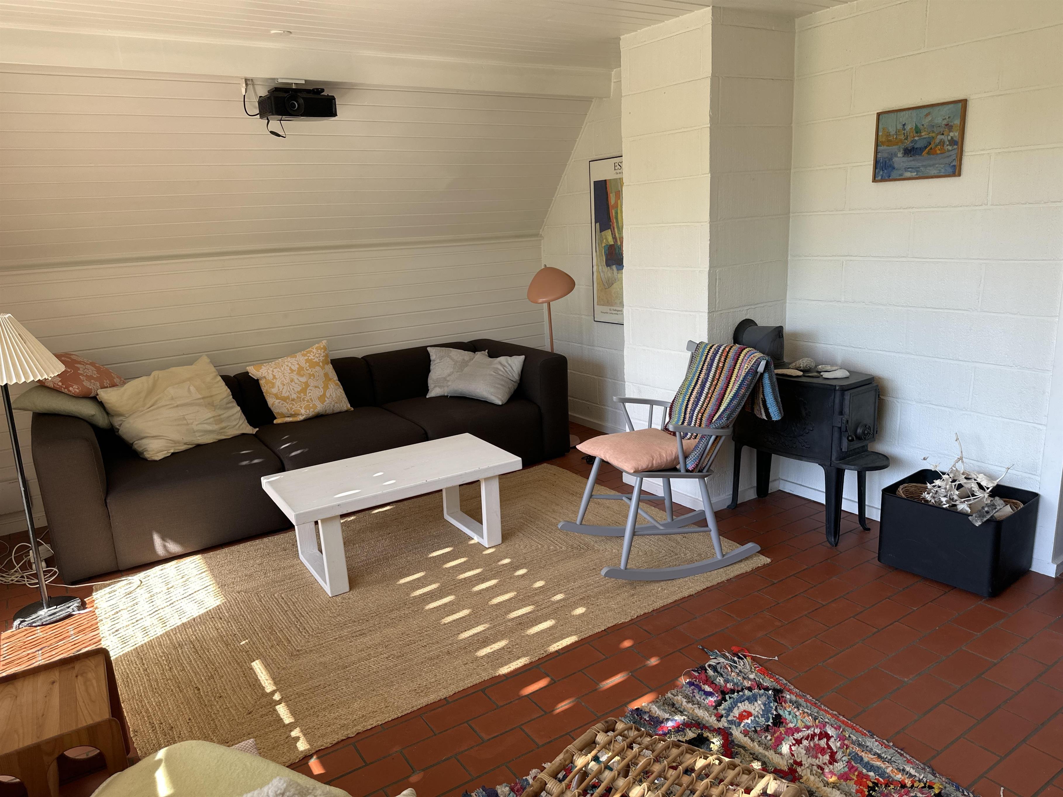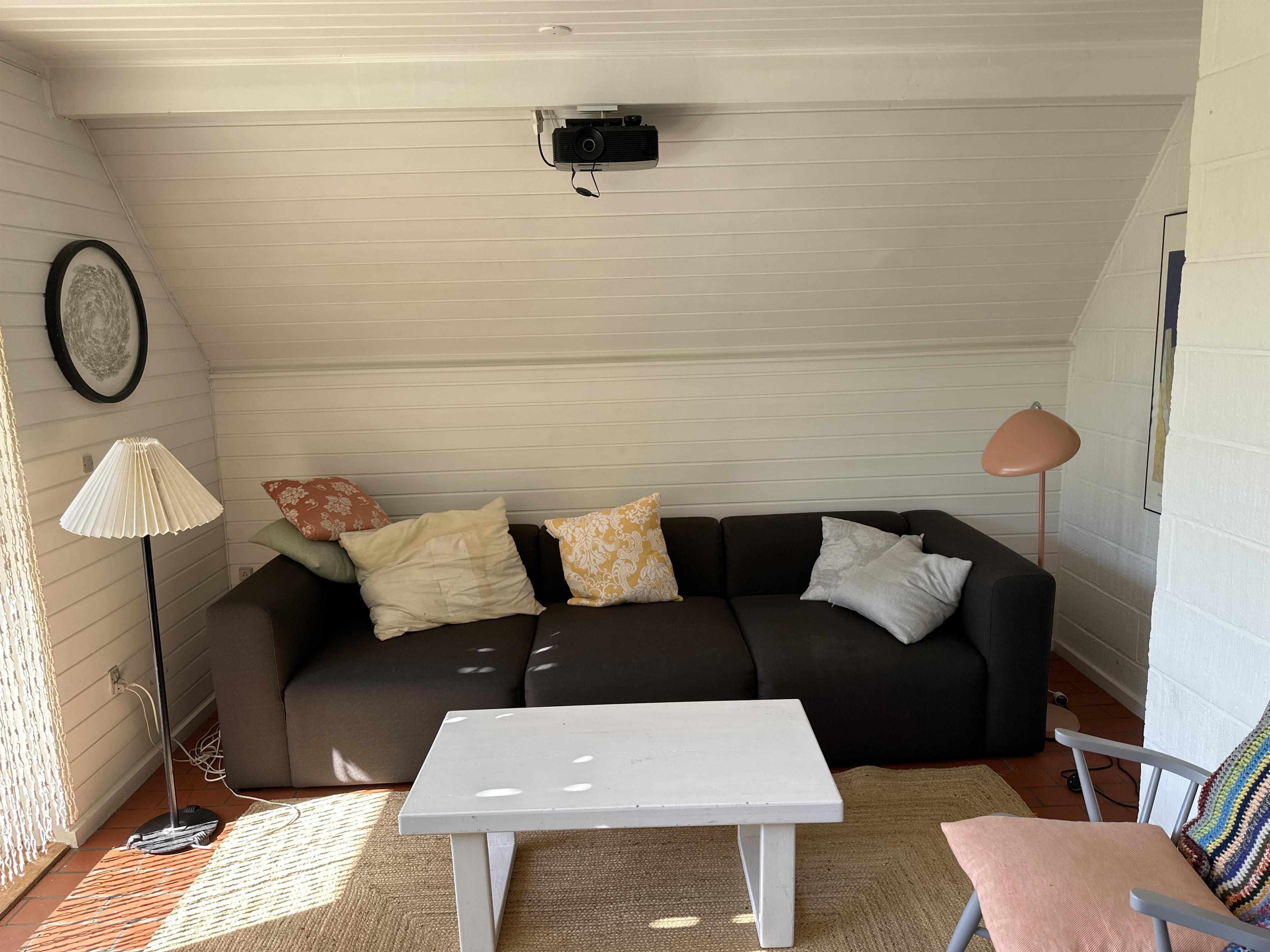 Das Ferienhaus verfügt über einen offenen und hellen Küchenbereich mit Essplatz und gemütlicher Sofaecke – ein perfekter Ort für gemeinsame Mahlzeiten und gemütliche Abende. Das Haus ist mit einer Wärmepumpe ausgestattet, sodass Sie das ganze Jahr über eine angenehme Temperatur genießen können. Auch wenn es keinen Fernseher gibt, können Sie die Familie zu einem Filmabend auf der großen Leinwand mit Projektor versammeln, wo Sie Ihre Lieblingsfilme und -serien streamen können – ein sicherer Gewinner an Regentagen.