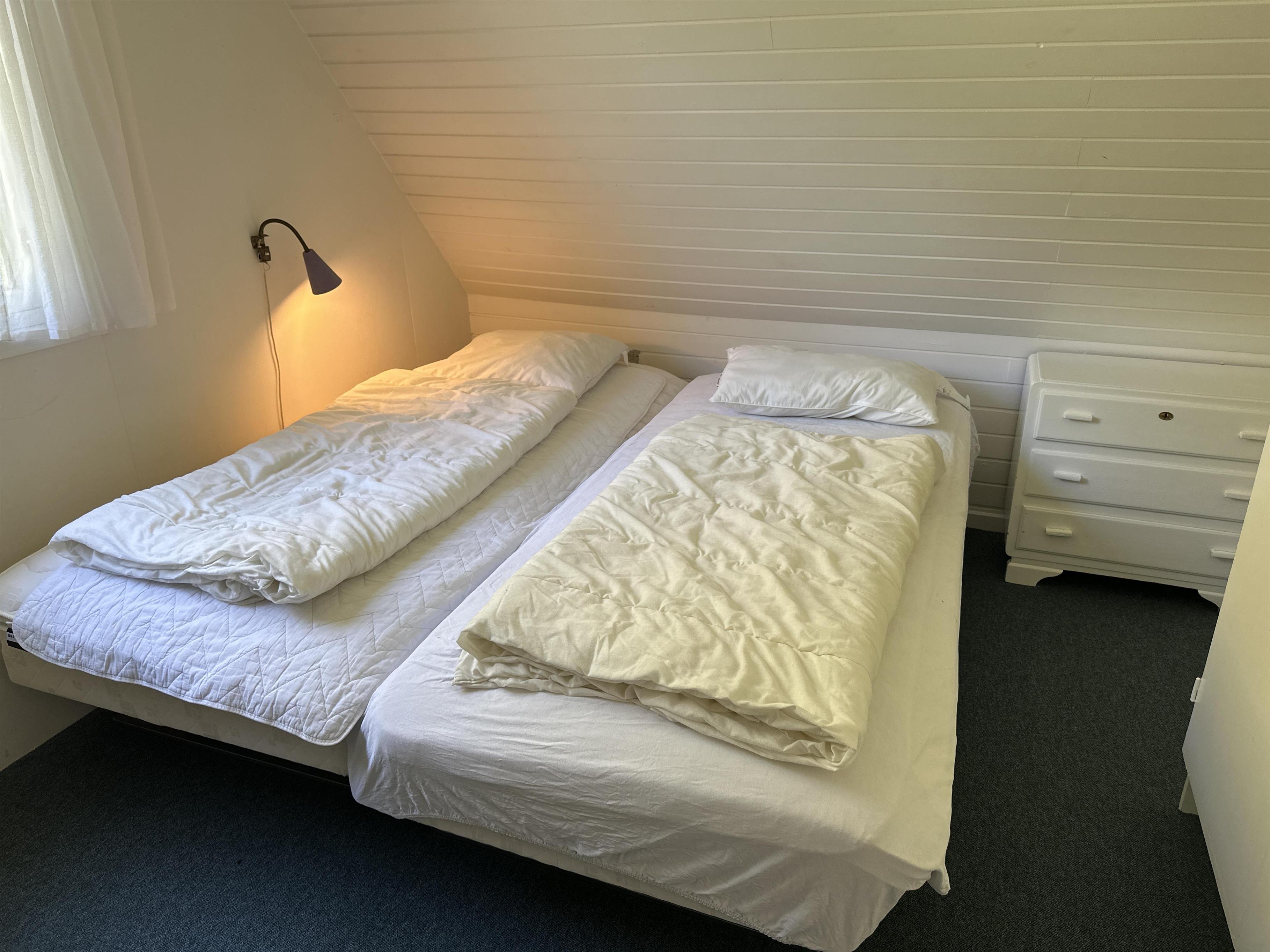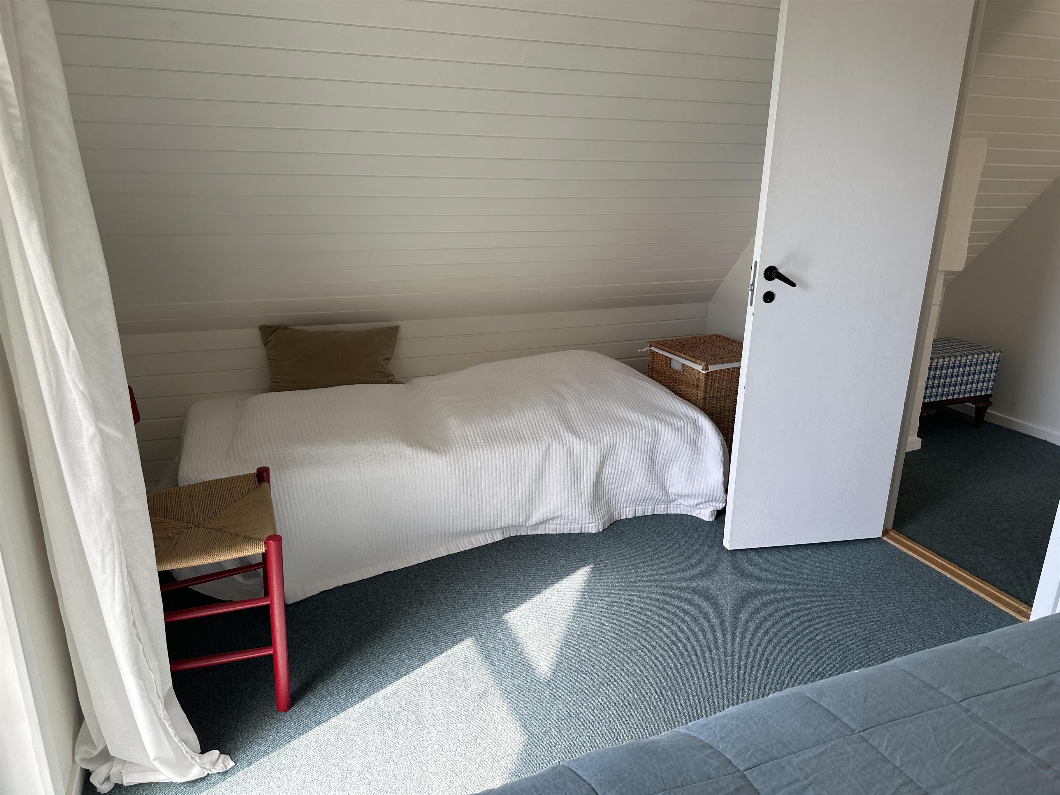 Das Badezimmer ist praktisch und funktional mit einer Duschkabine, und ein kleiner Abstellraum bietet Platz für Spielzeug und Ausrüstung. Im ersten Stock befinden sich zwei Schlafzimmer: eines mit einem Doppelbett und einem Einzelbett, perfekt für Eltern mit einem kleinen Kind, und das andere mit einem Doppelbett und einem Schlafsofa, ideal für größere Kinder oder zusätzliche Gäste.