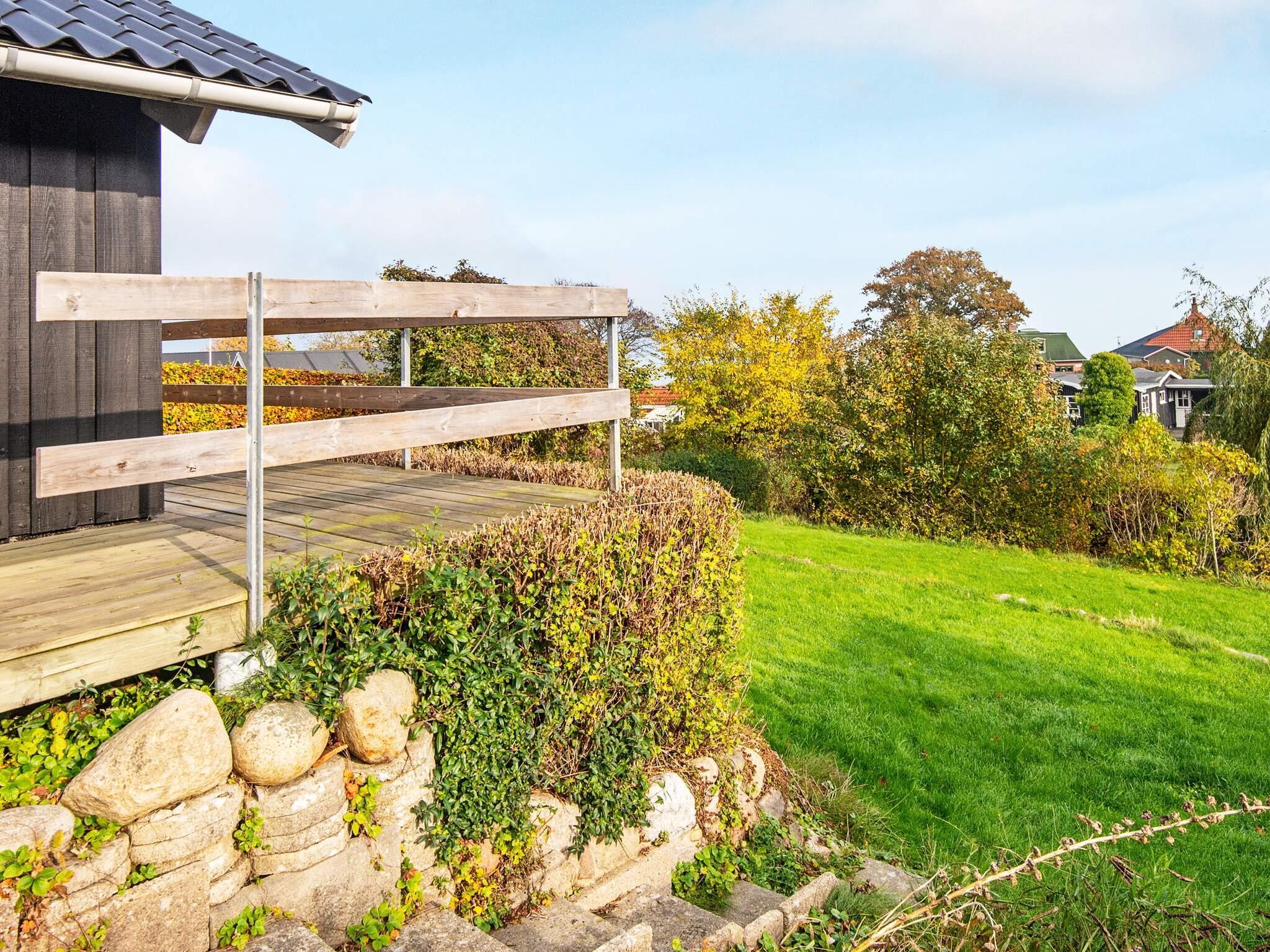 Das Ferienhaus liegt auf einem großen, angelegten Gartengrundstück mit Platz für spielende Kinder. Zudem steht eine große, überdachte Terrasse für Sonnentage und Grillabende bereit. Für Sonnenanbeter gibt es auch eine offene Terrasse. Schönes Terrain für Radtouren und Spaziergänge in der Umgebung und nur ca. 300 m Entfernung zu einem Kiesstrand. Es sind ca. 2 km zum nächsten Sandstrand.