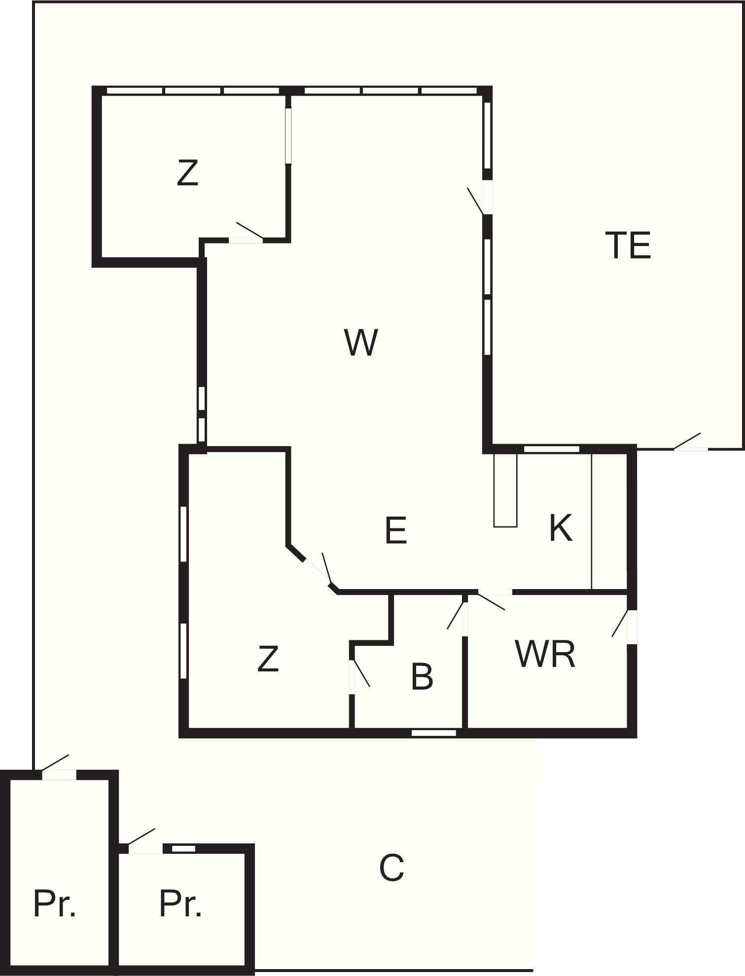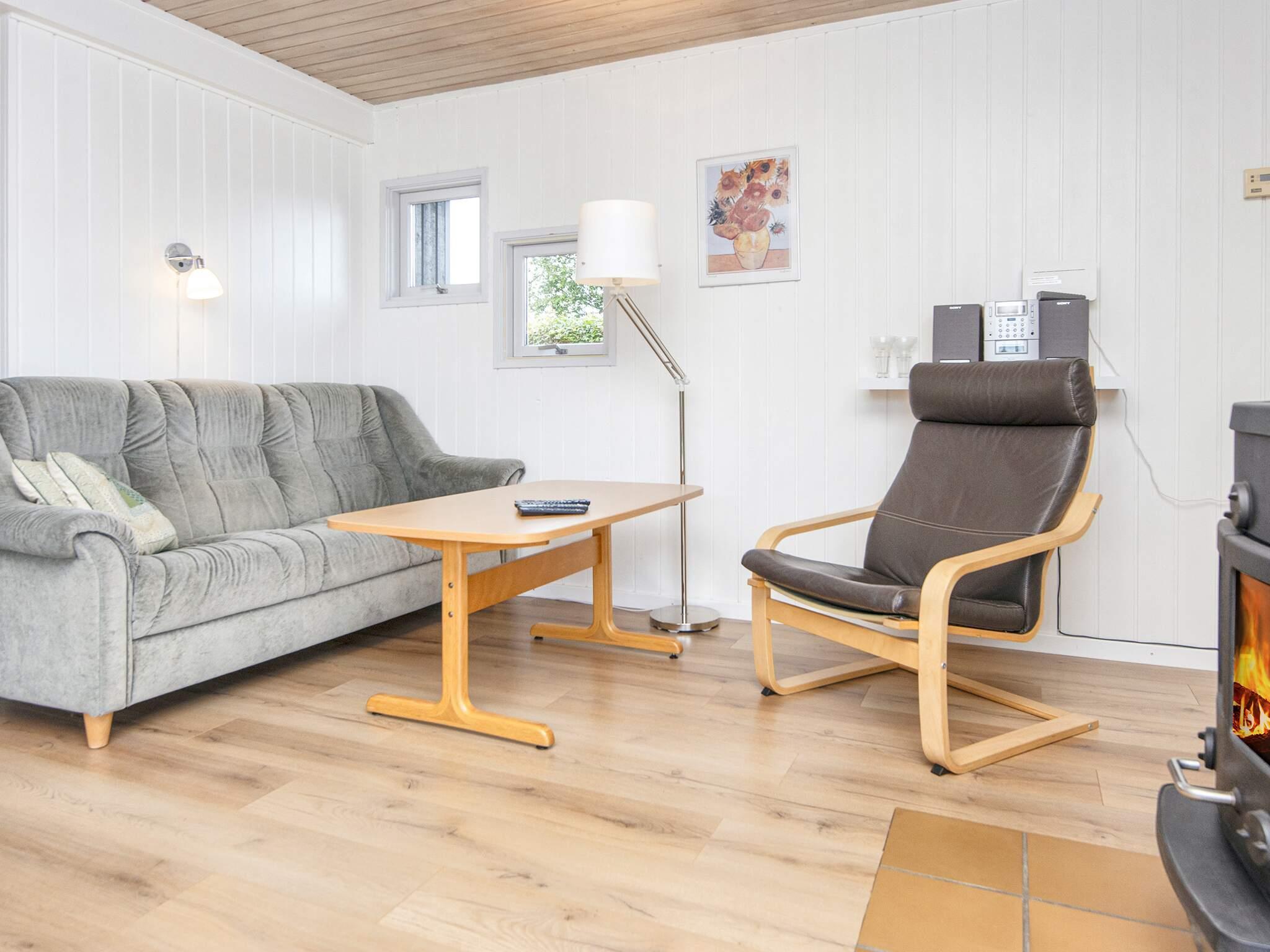 Vor dem Wohnbereich befindet sich die überdachte Terrasse, die zum Verweilen im Freien einlädt. Die Schlafplätze im Haus verteilen sich auf zwei Schlafzimmer mit je einem Doppelbett. Waschmaschine und Wäschetrockner sind im Eingangsbereich untergebracht. Das Ferienhaus liegt in einer landschaftlich reizvollen Umgebung mit guten Angelmöglichkeiten.