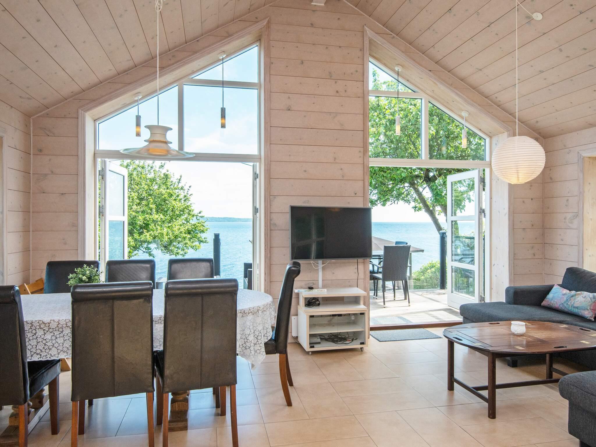 Wenn Ihnen an herrlicher Panoramaaussicht gelegen ist, dann könnte dieses zweckmäßig ausgestattete Ferienhaus eine passende Wahl sein. Es ist innen sehr hell, teils mit Oberlichtern in den Dachschrägen. Das Mobiliar ist eine Mischung aus Alt und Neu. Die Schlafzimmer und das Bad befinden sich in der Kelleretage. Vom Wohnzimmer geht es hinaus auf die Terrasse, von der man schönen Ausblick zum Wasser hat! Vom Rasengrundstück aus führt eine einfache Treppe direkt hinunter an die Küste.