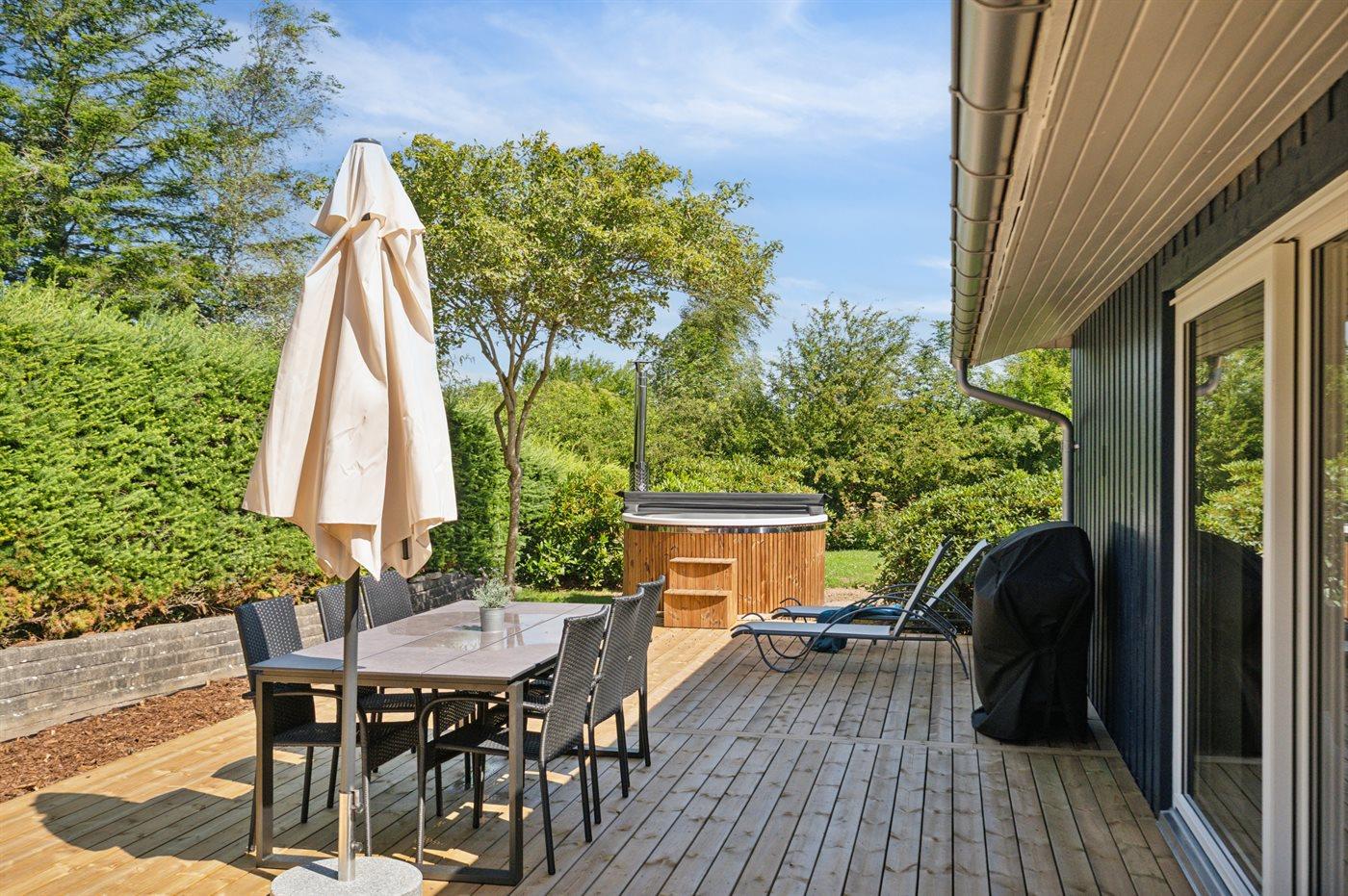 Das Ferienhaus verfügt über eine schöne Terrasse, die teilweise überdacht ist und von der aus du sogar einen Blick auf den Fjord hast – genau wie auch vom Inneren des Hauses. Außerdem gibt es hier einer herrlichen Hot Tub, in dem sich deine Familie entspannen und die Ruhe in vollen Zügen genießen kann. Die Urlaubsgegend lädt zu Spaziergängen in der schönen Natur ein, und ein besonderes Erlebnis ist ein Besuch der Hvidbjerg Düne, die nur ca. 600 Meter vom Ferienhaus entfernt liegt. In der Umgebung gibt es auch eine Eisdiele und ein kleines Café.