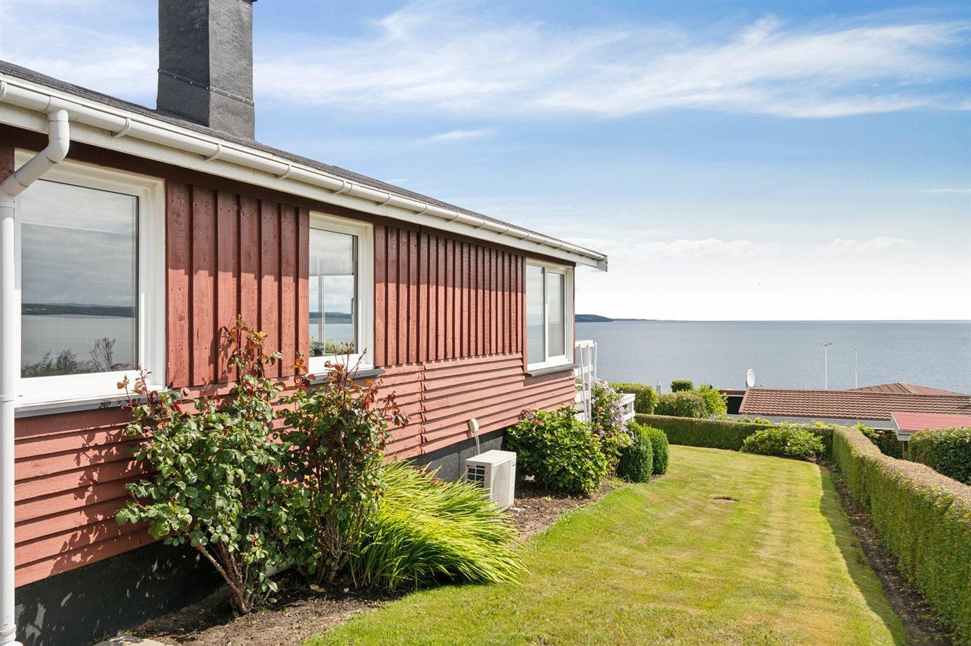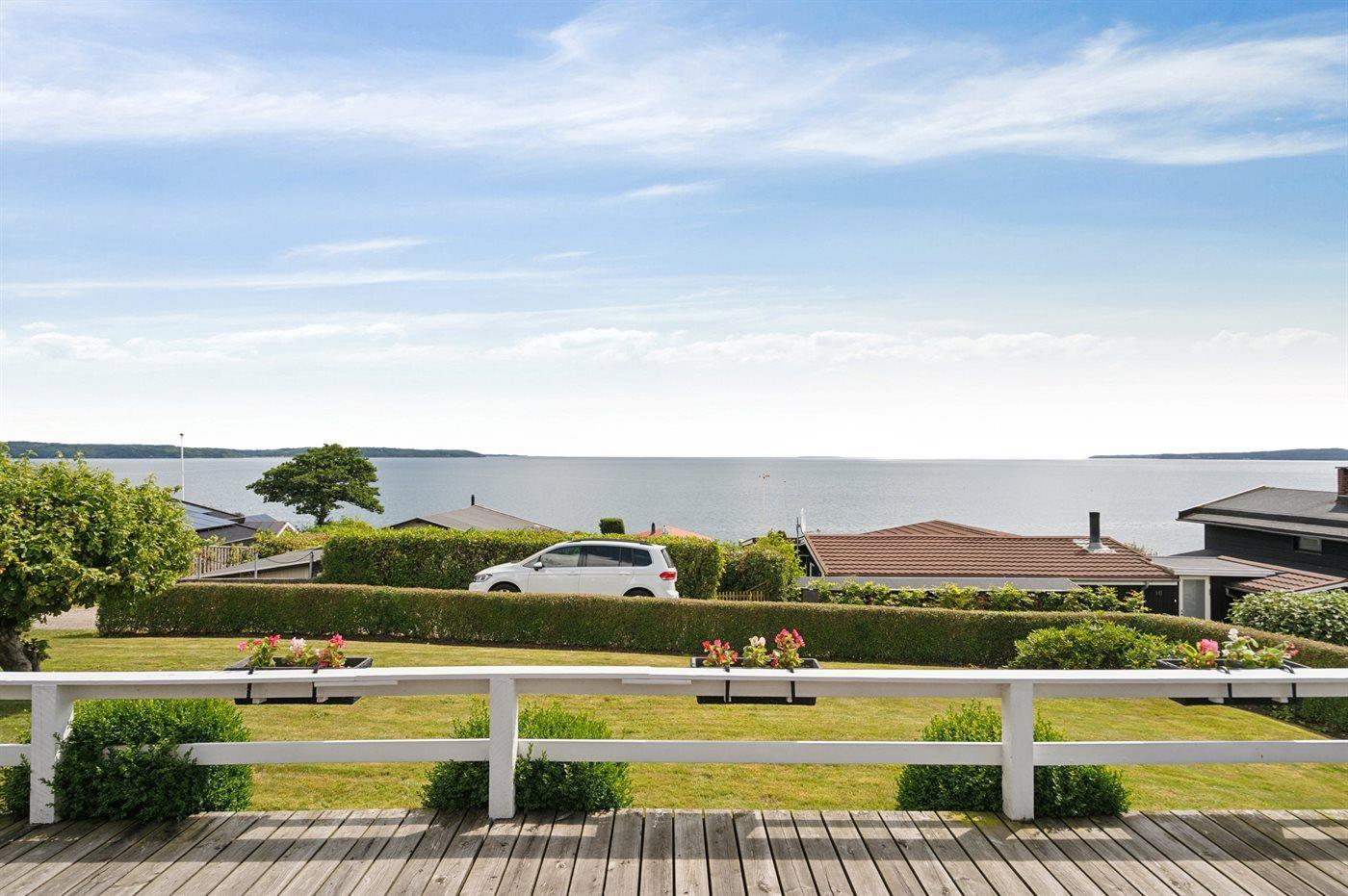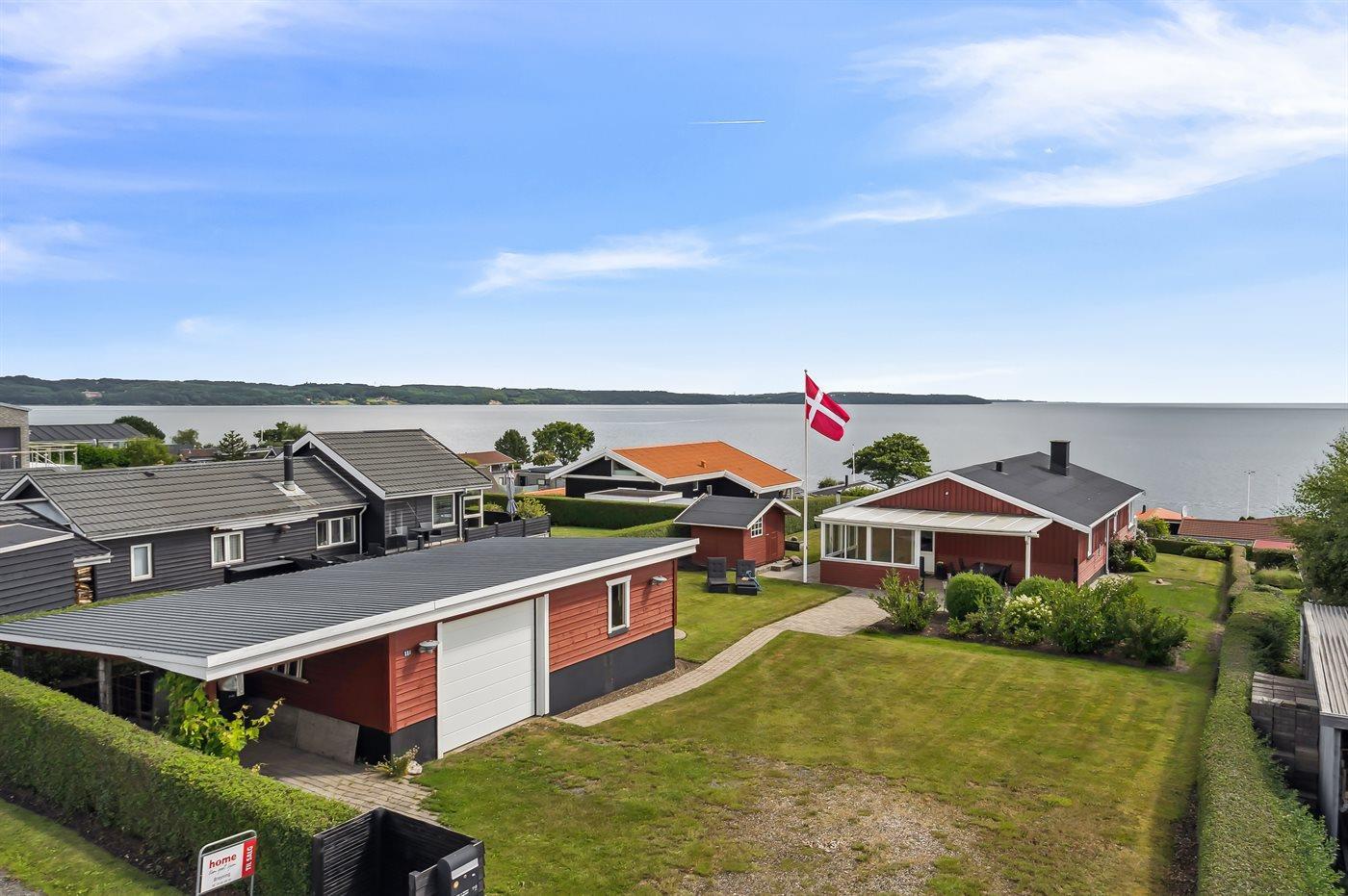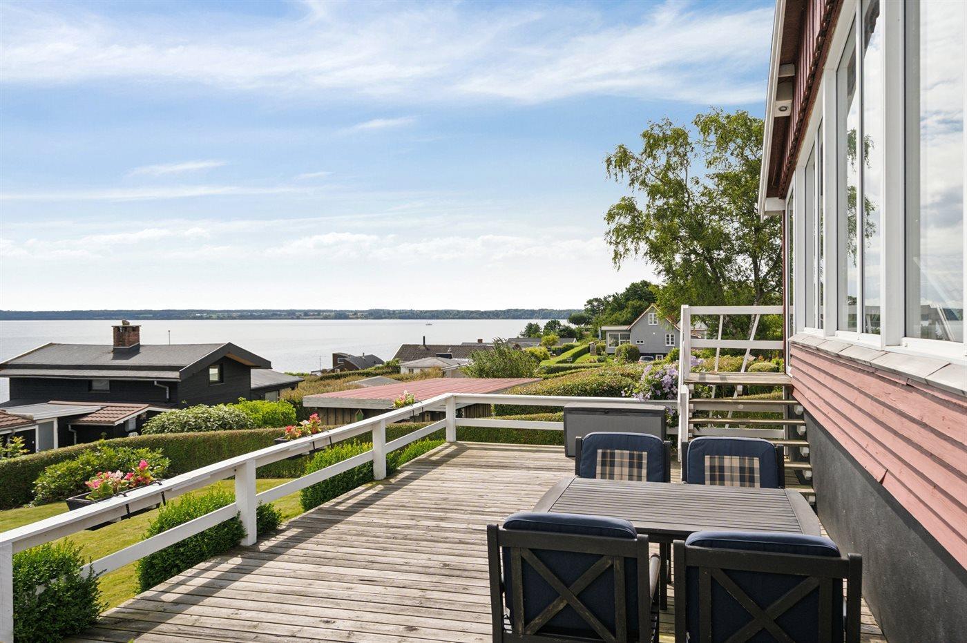Modernes Ferienhaus mit Meerblick am Vejle Fjord, nahe Strand und Natur, ideal für Erholung und Familienzeit.