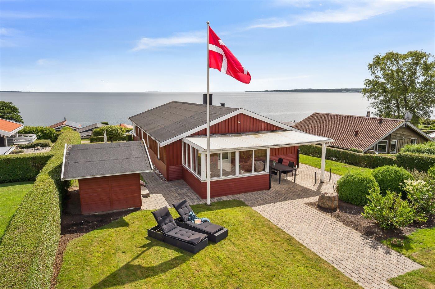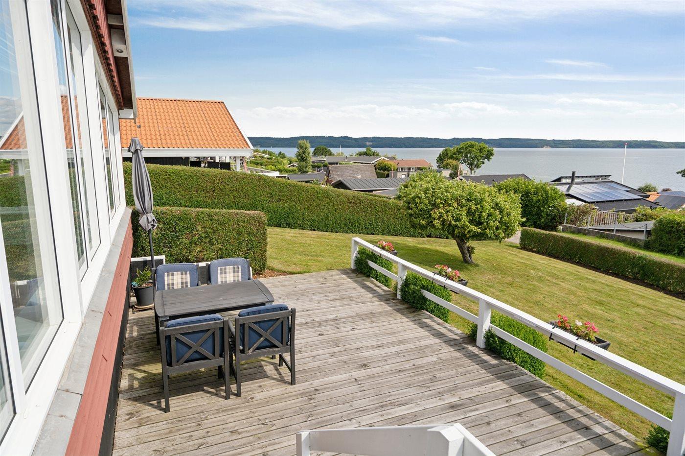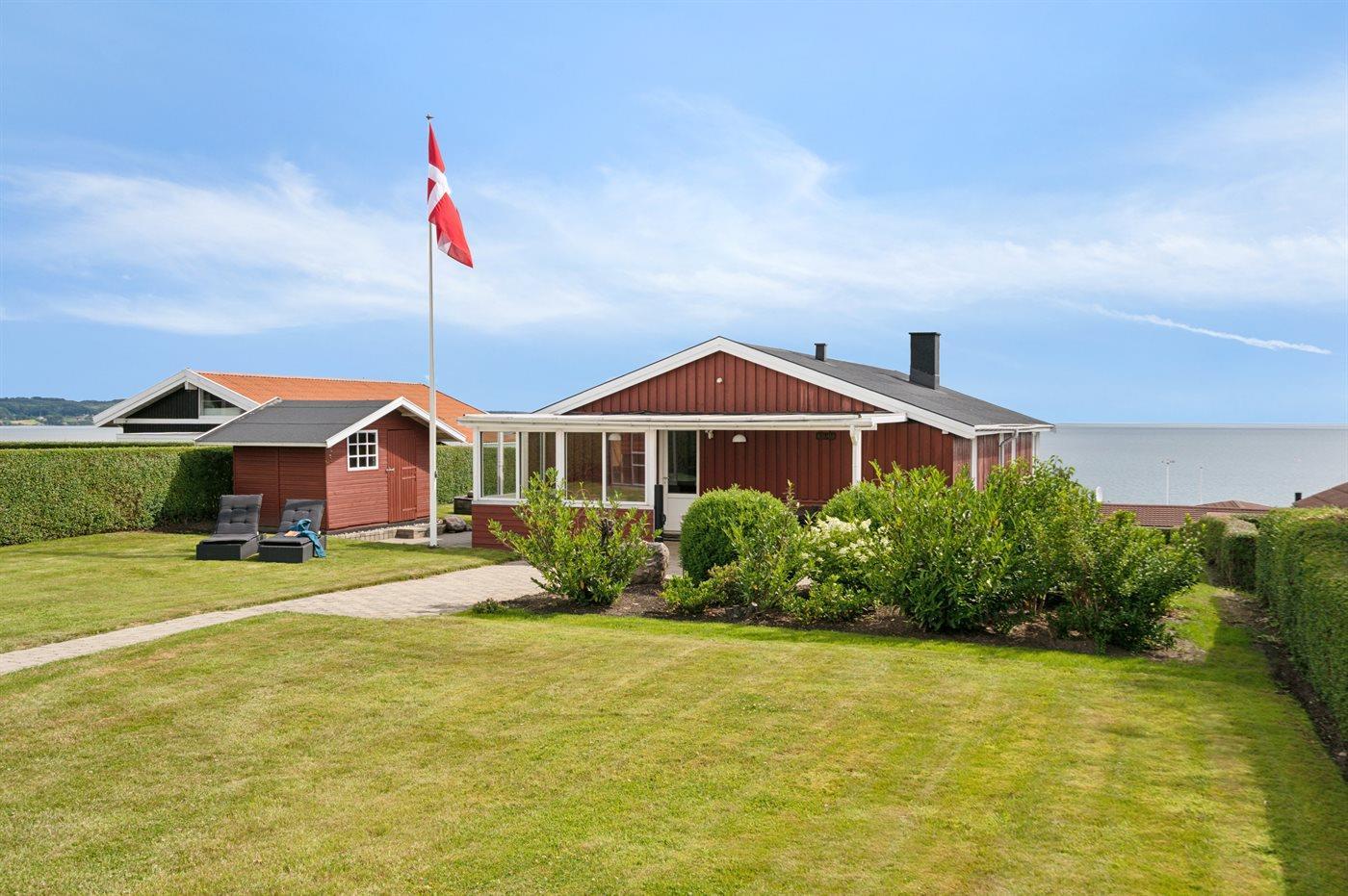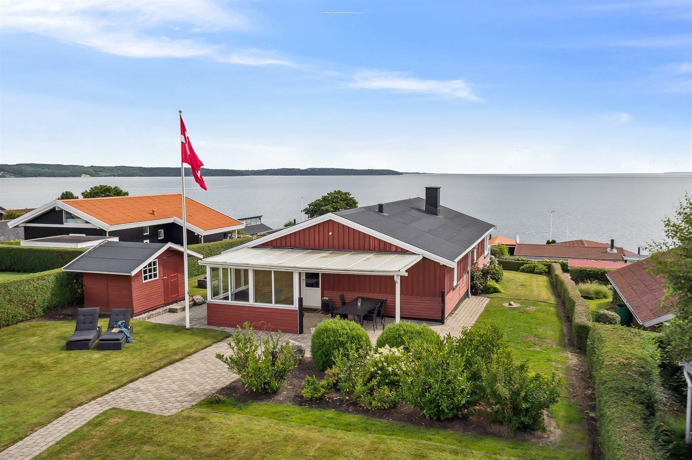 Modernes Ferienhaus mit Meerblick am Vejle Fjord, nahe Strand und Natur, ideal für Erholung und Familienzeit.