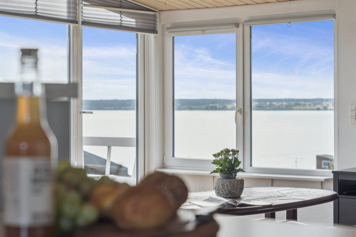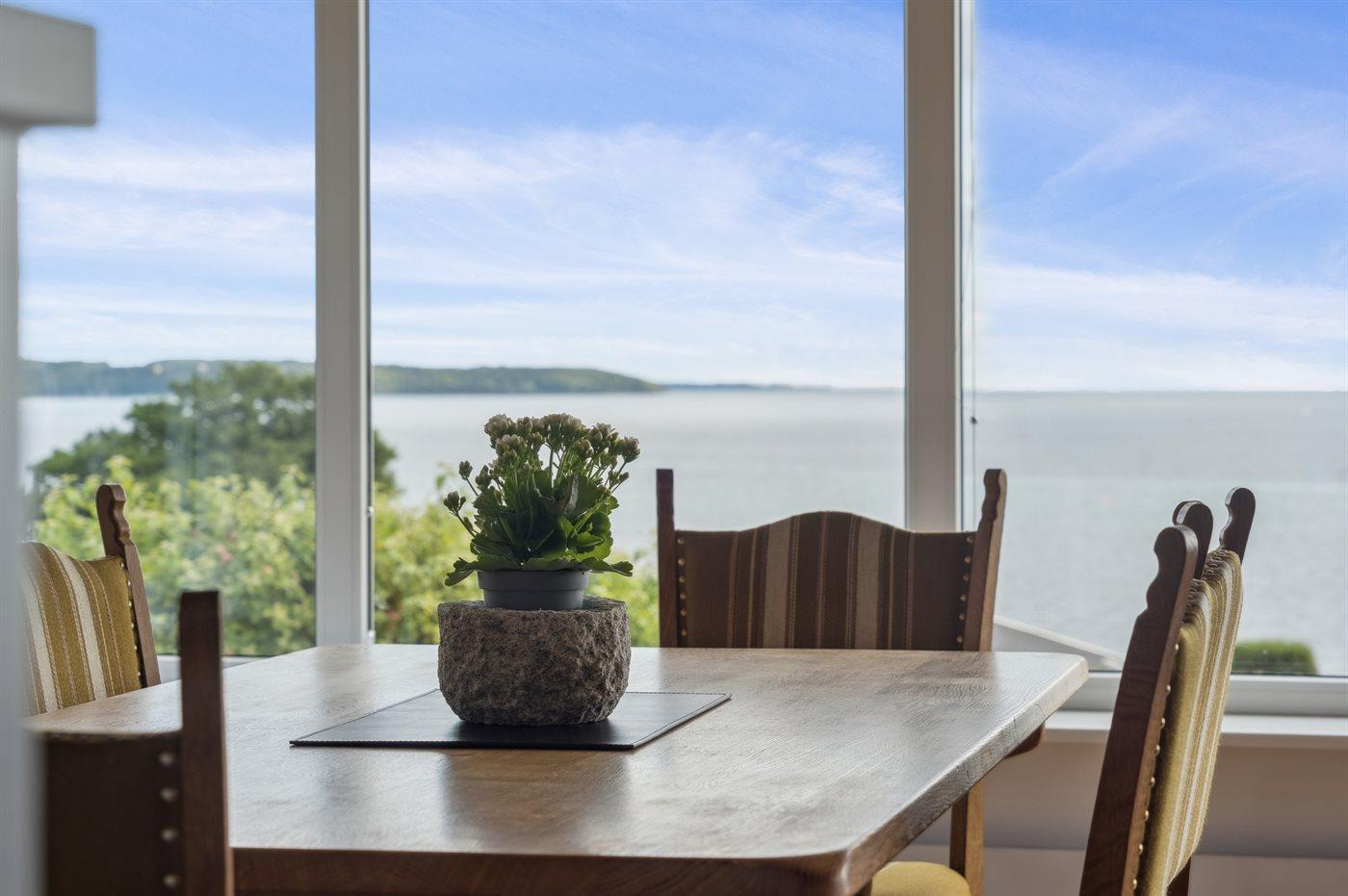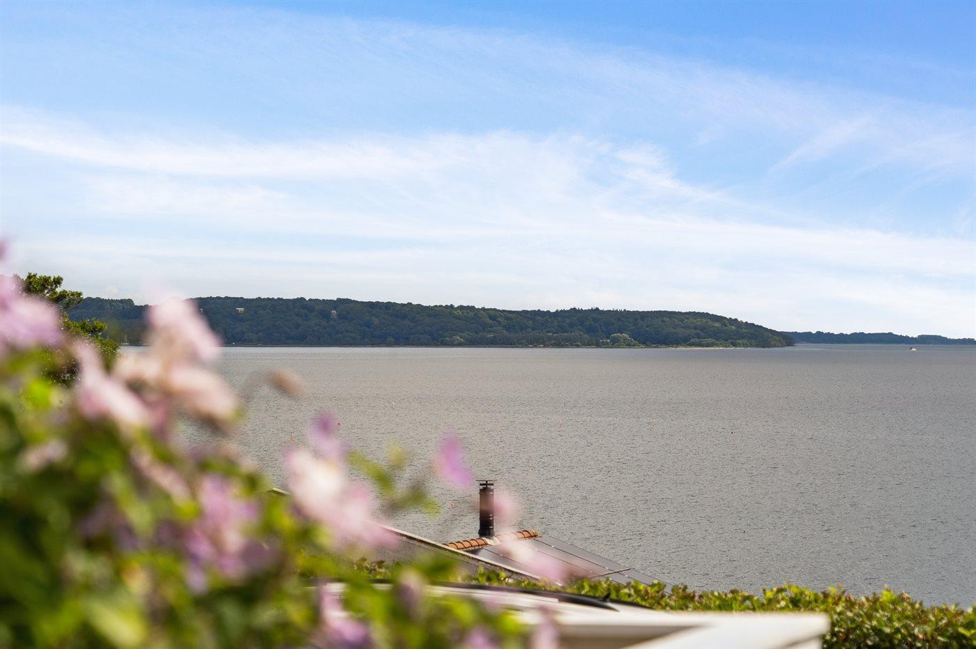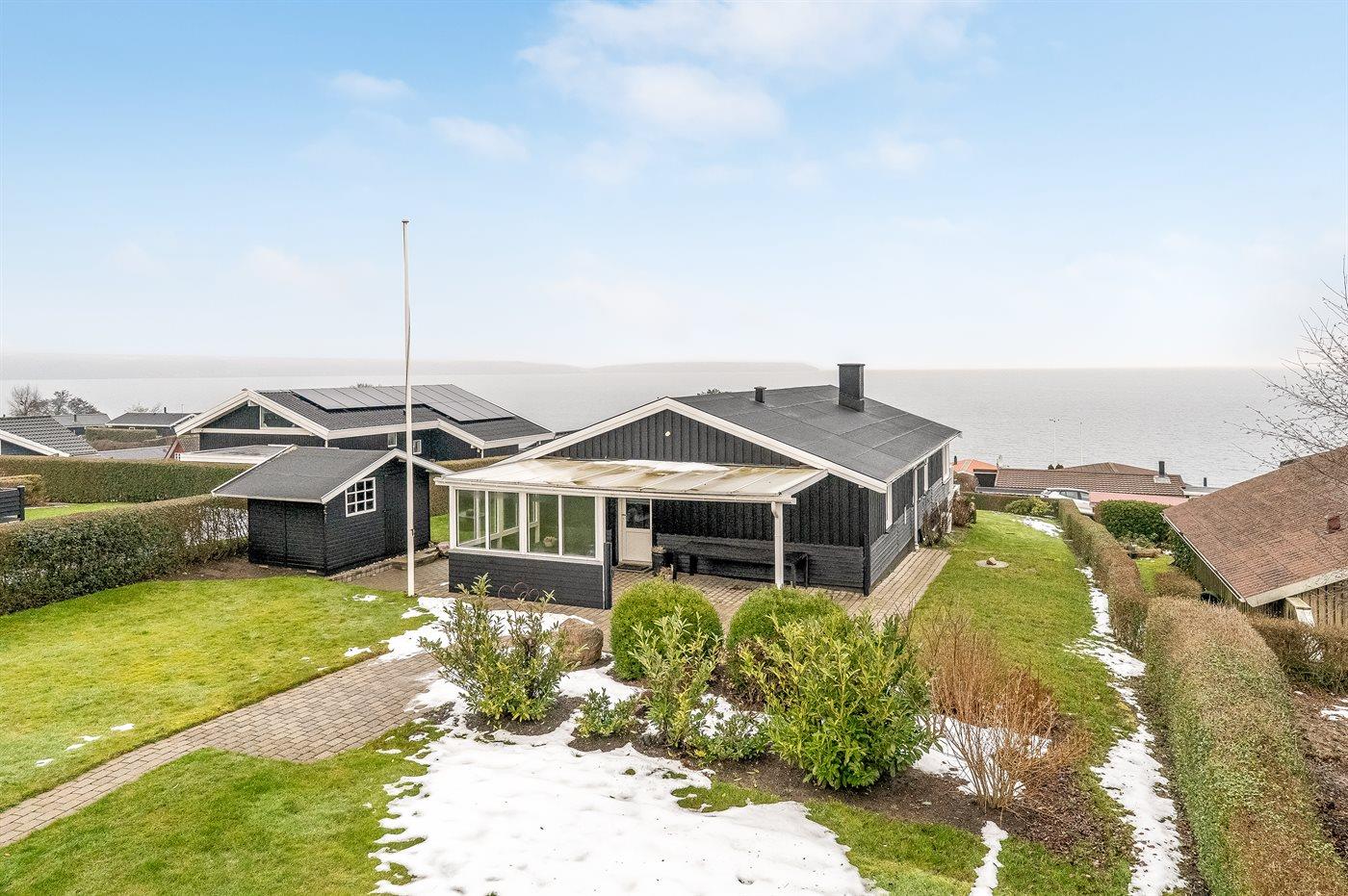 Modernes Ferienhaus mit Meerblick am Vejle Fjord, nahe Strand und Natur, ideal für Erholung und Familienzeit.