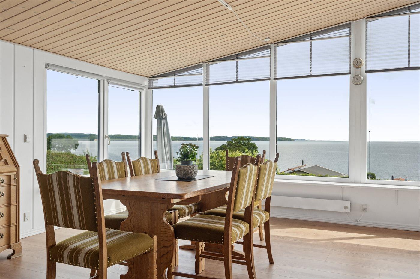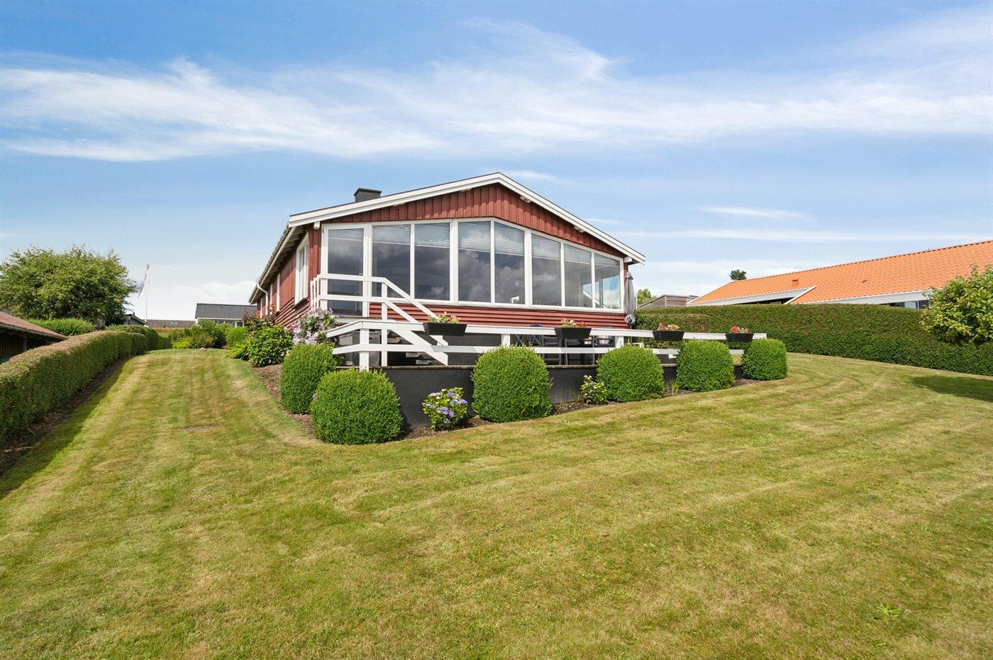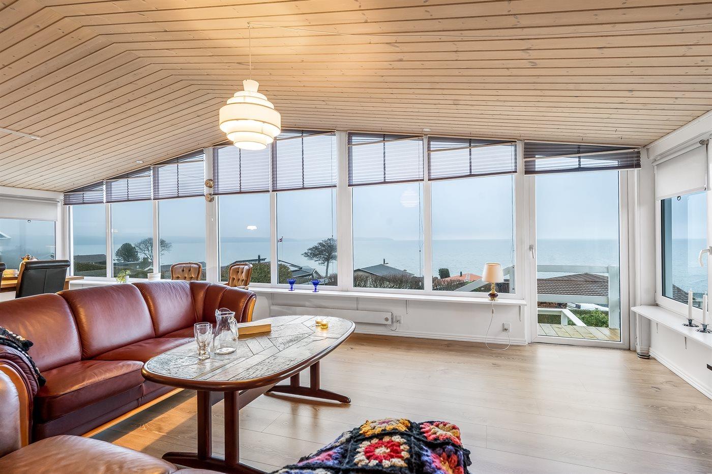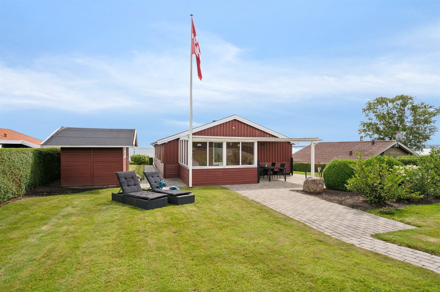 Modernes Ferienhaus mit Meerblick am Vejle Fjord, nahe Strand und Natur, ideal für Erholung und Familienzeit.