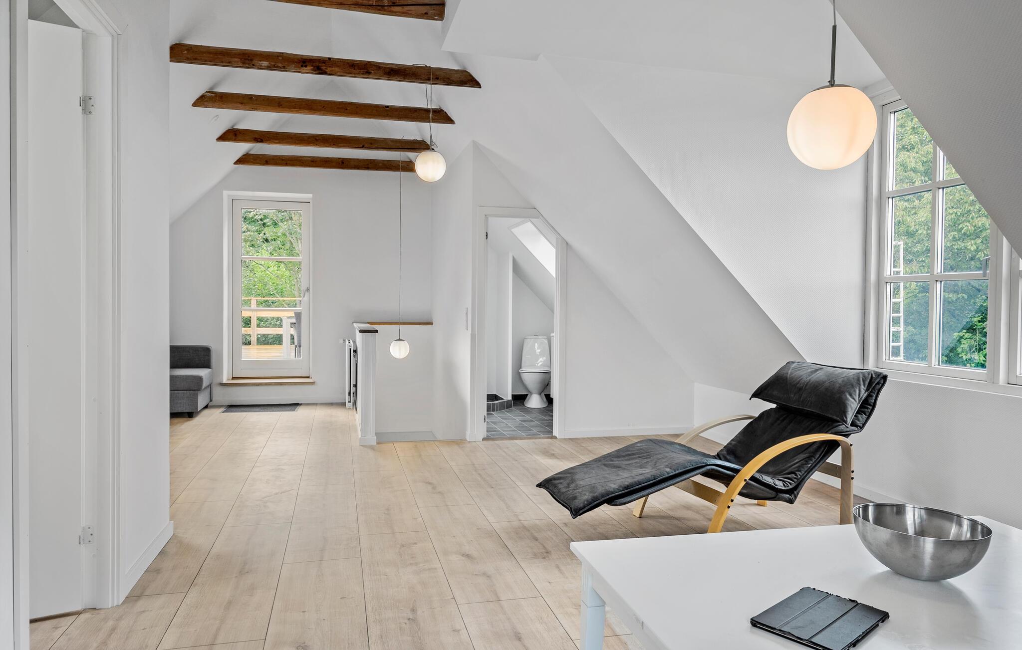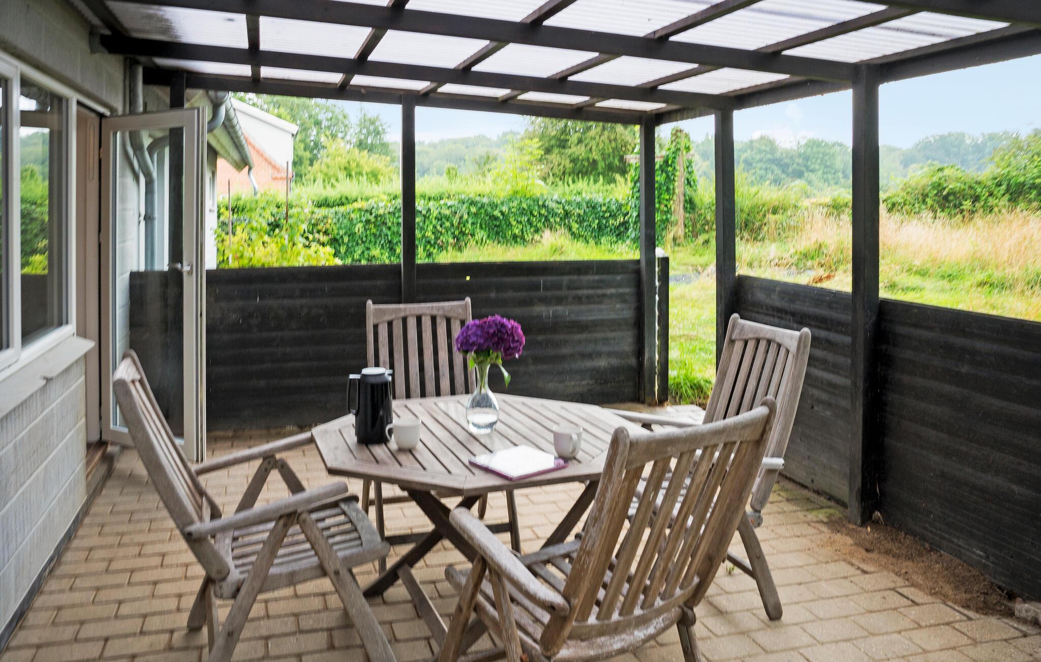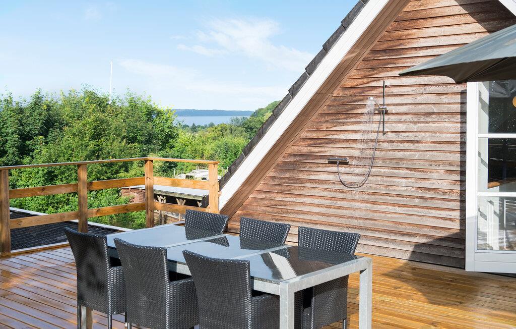 Willkommen in Ihrem lichtdurchfluteten Ferienhaus in Mørkholt, das mit klassischem Charme und großzügigem Platzangebot begeistert. Hier finden Sie alles vor, was Sie zum Wohlfühlen brauchen. Die hellen Innenräume laden Sie zu entspannten Stunden ein, während die überdachte Terrasse und der Balkon hervorragende Orte für Ihre Mahlzeiten im Freien bieten. Ein besonderes Highlight ist die Dachterrasse mit einer erfrischenden Außendusche – ideal für entspannende Momente unter freiem Himmel nach einem sonnigen Tag. Genießen Sie hier auch den Ausblick auf den Vejle Fjord.