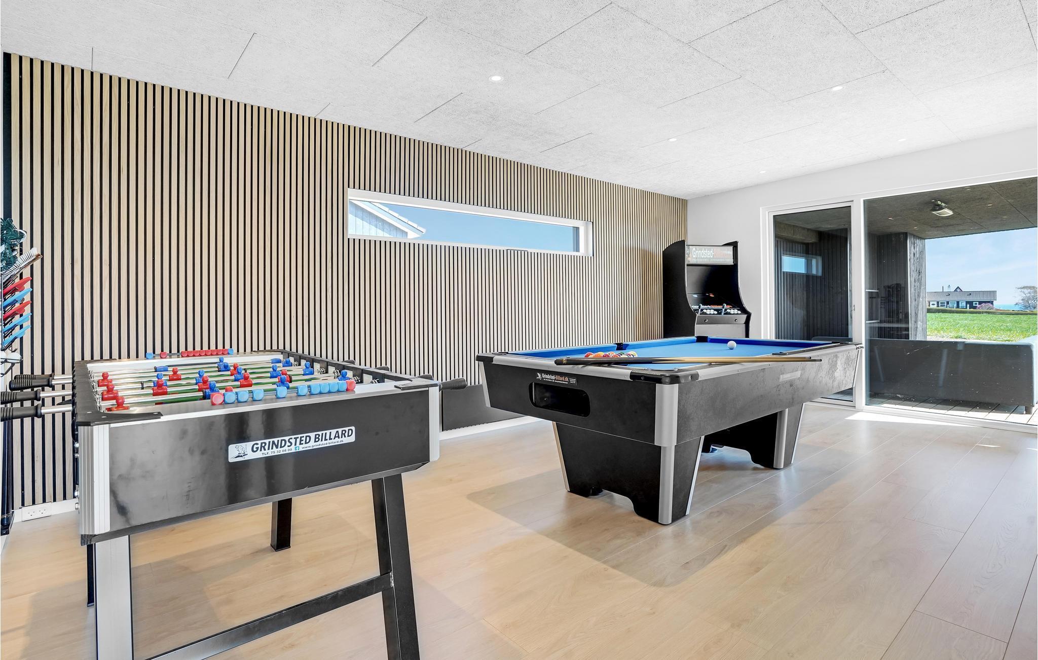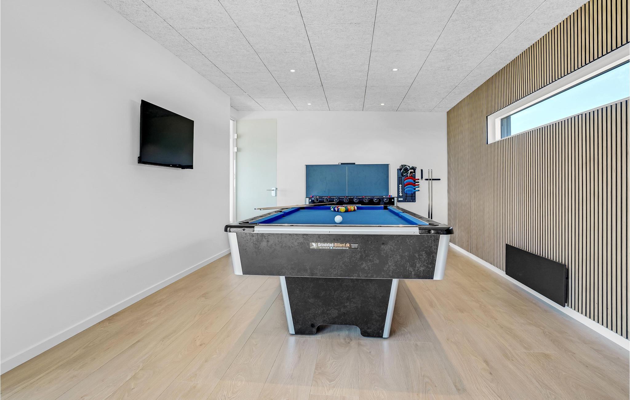 Willkommen in dieser eleganten Unterkunft, in der Sie sich vom ersten Moment an in stilvollem Ambiente ausbreiten und wie zu Hause fühle können. Freuen Sie sich auf große Flatscreens in jedem Zimmer, ein tolles Wohngefühl in der offenen Wohnküche, einen Aktivitätsraum mit verschiedenen Spielen wie Tischtennis, und ein rundum stimmiges Design.