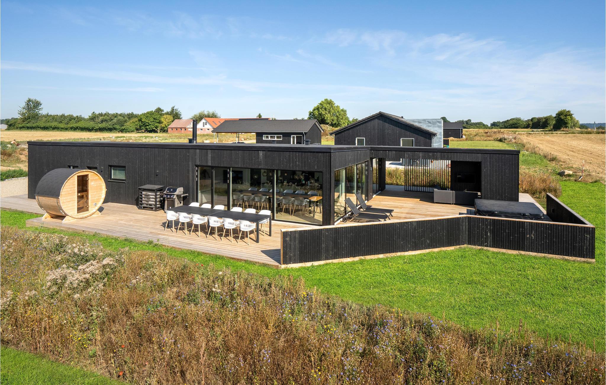 Luxuriöses Ferienhaus in Mørkholt mit Wellness, großer Terrasse und Aktivitätsraum für entspannte Tage am Vejlefjord.
