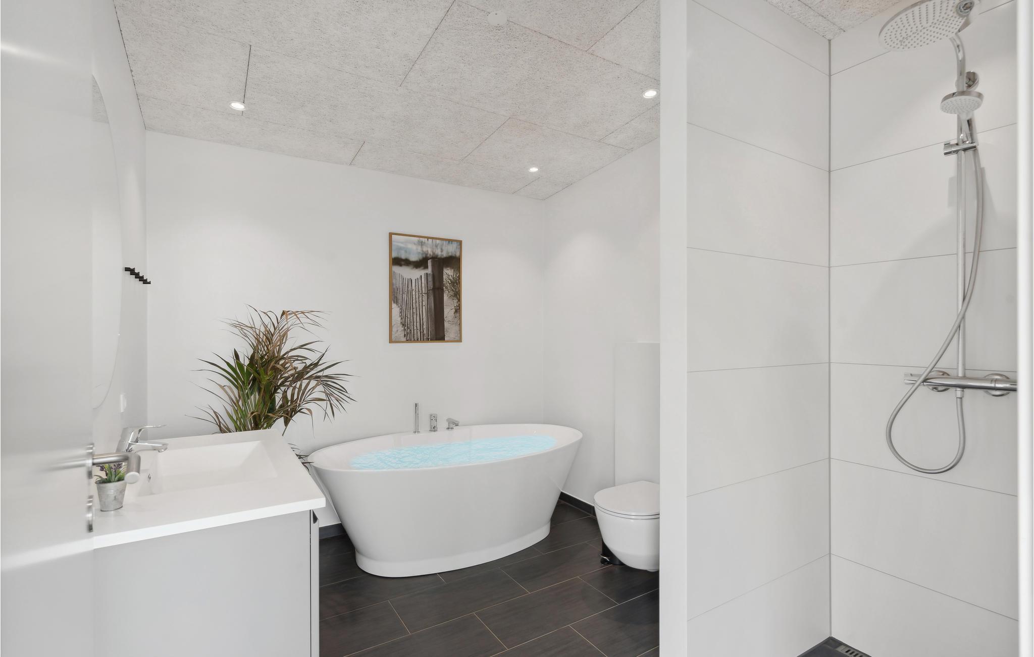 Modernes, großzügiges Ferienhaus mit Whirlpool, Meerblick und viel Komfort in Mørkholt, Dänemark.