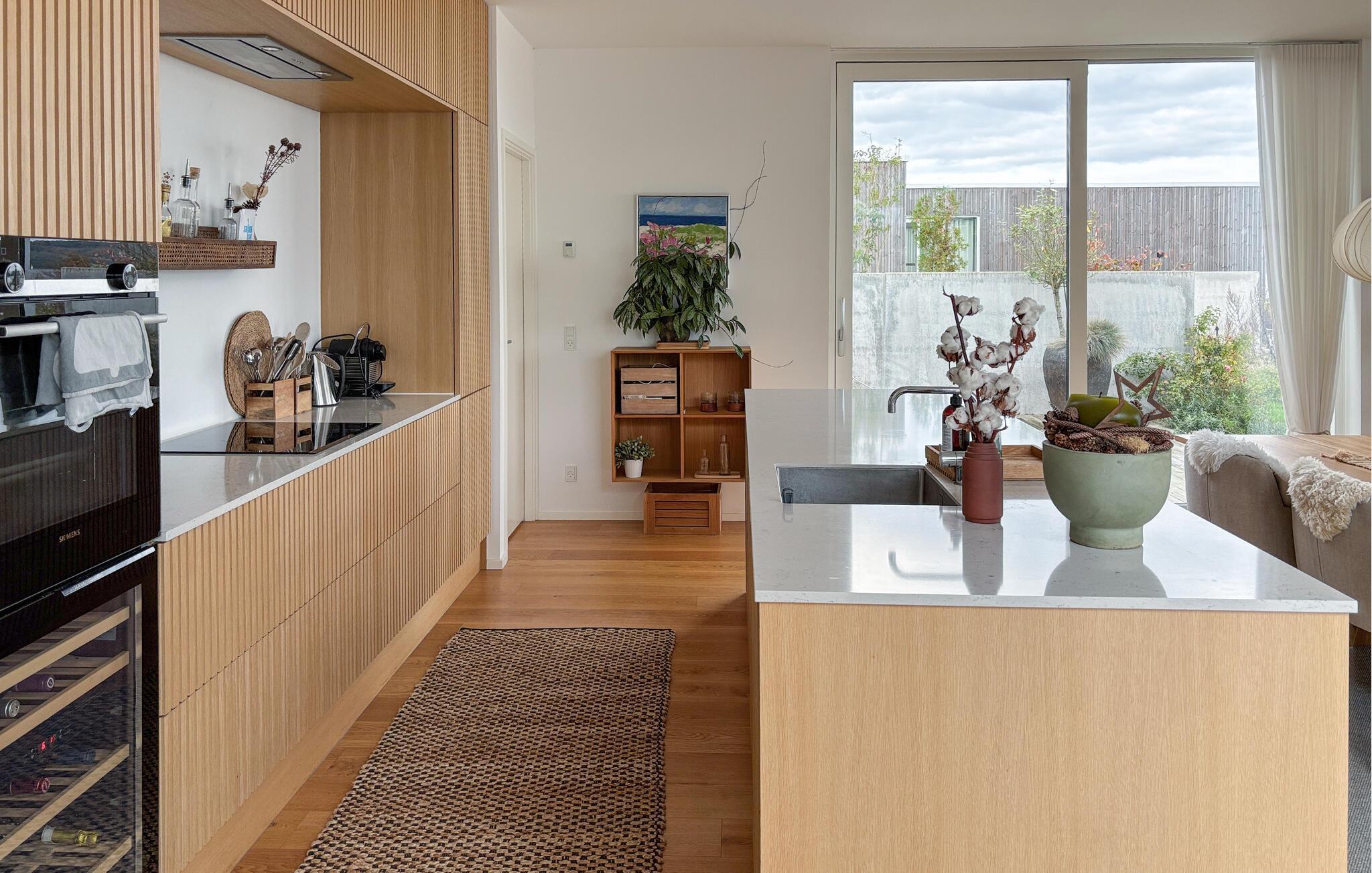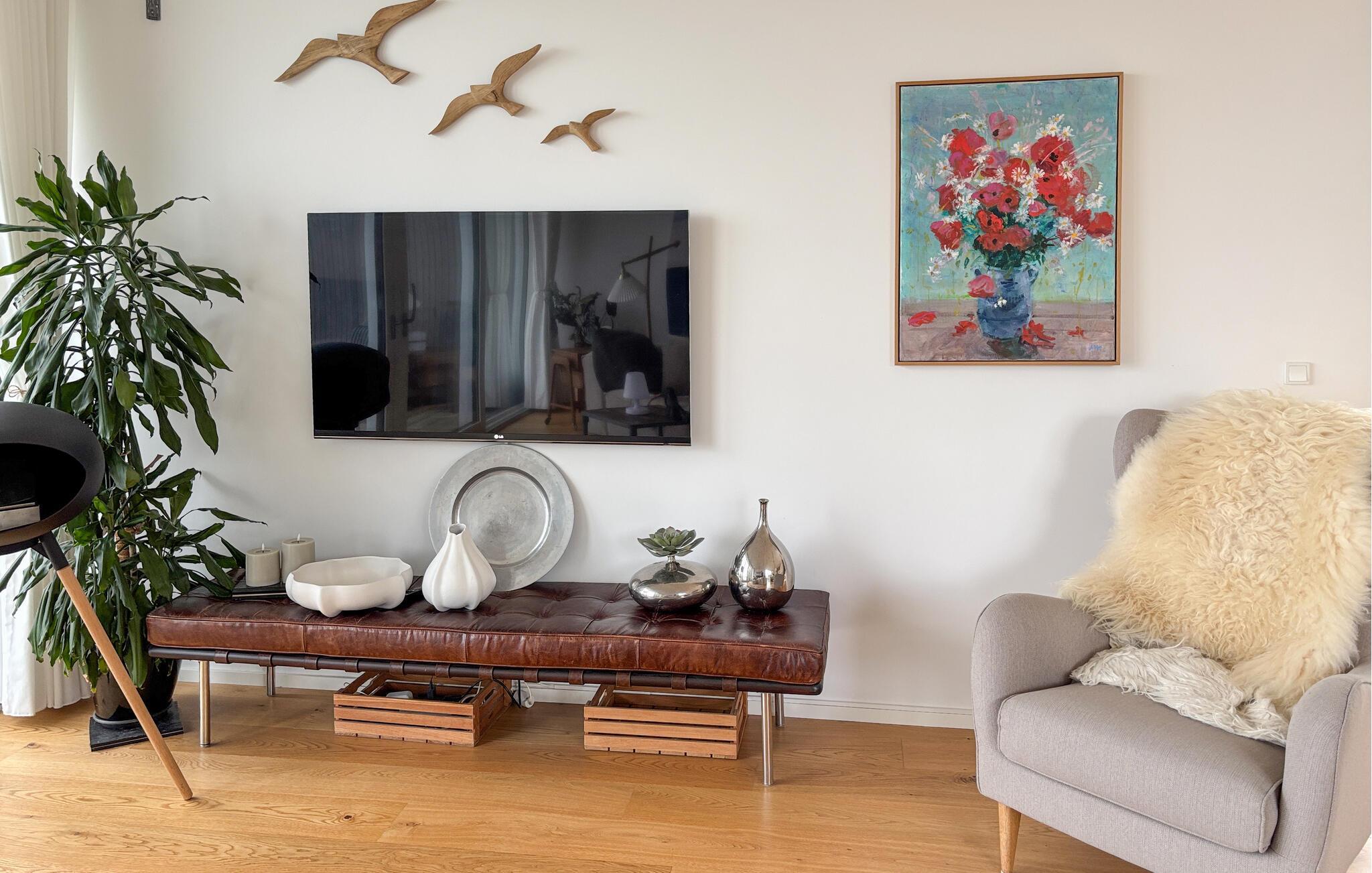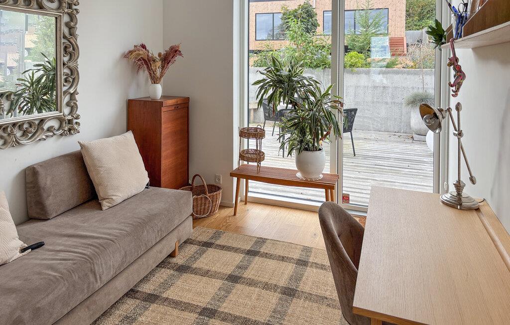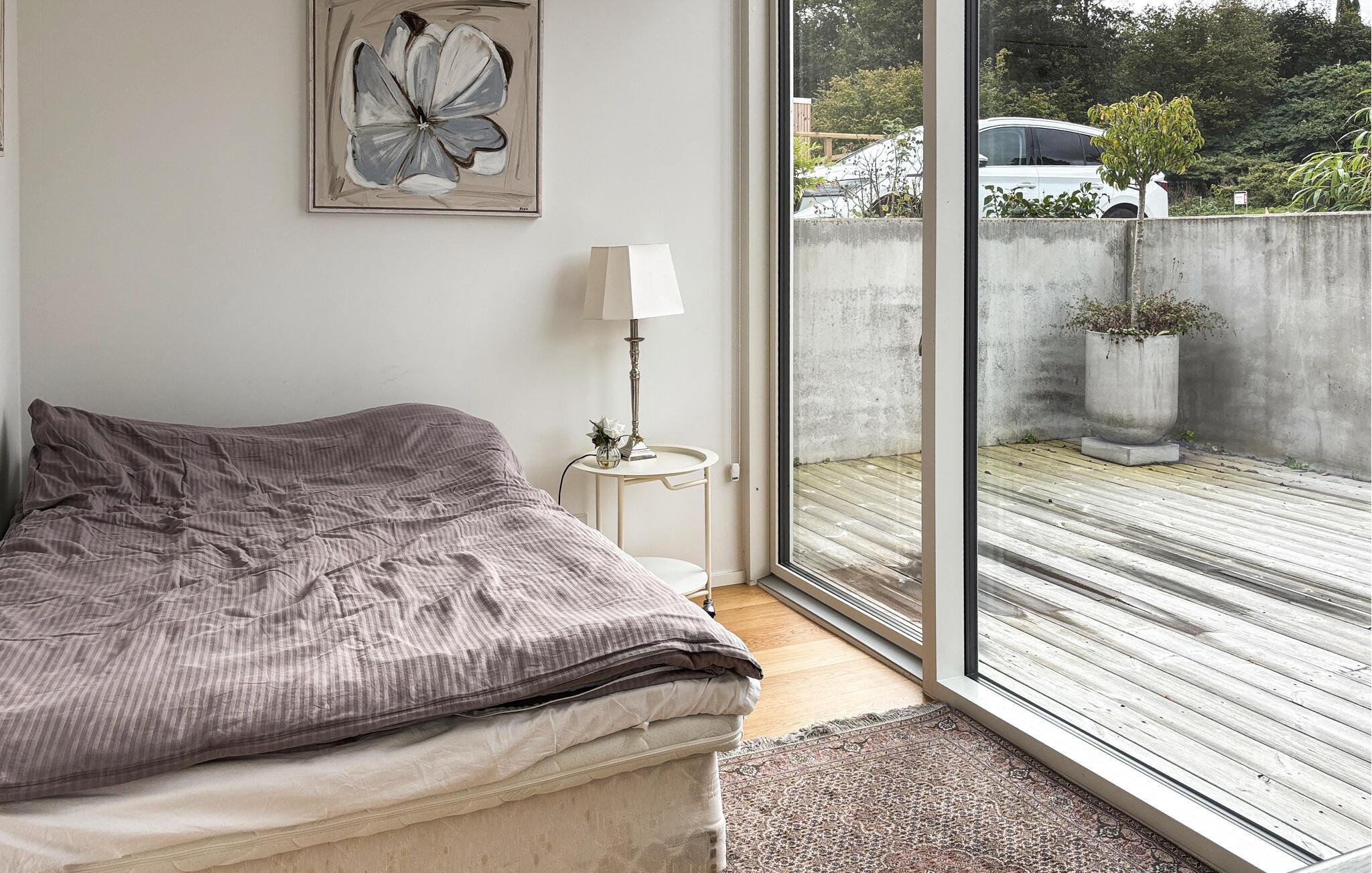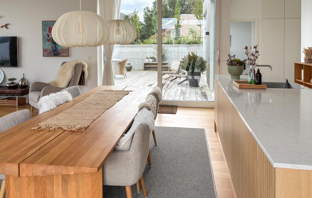 Genießen Sie einen erholsamen Aufenthalt in einem exklusiven Ferienhaus, das durch seine Architektur und Lage besticht. Betreten Sie das Haus und lassen Sie sich vom klaren, nordischen Stil empfangen. Dezente Farbtöne, natürliche Materialien und geschmackvolle Dekoration verleihen den Räumen eine ruhige, harmonische Stimmung. Der offene Wohnbereich mit großen Panoramafenstern schafft eine helle, luftige Atmosphäre und gibt den Blick auf das Wasser frei. Lehnen Sie sich auf den bequemen Sofas zurück und genießen Sie den Fjord in ständig wechselndem Lichtspiel. Bereiten Sie Ihre Mahlzeiten in der eleganten Küche mit Kochinsel und modernen Geräten zu, und speisen Sie gemeinsam am großen Holztisch.