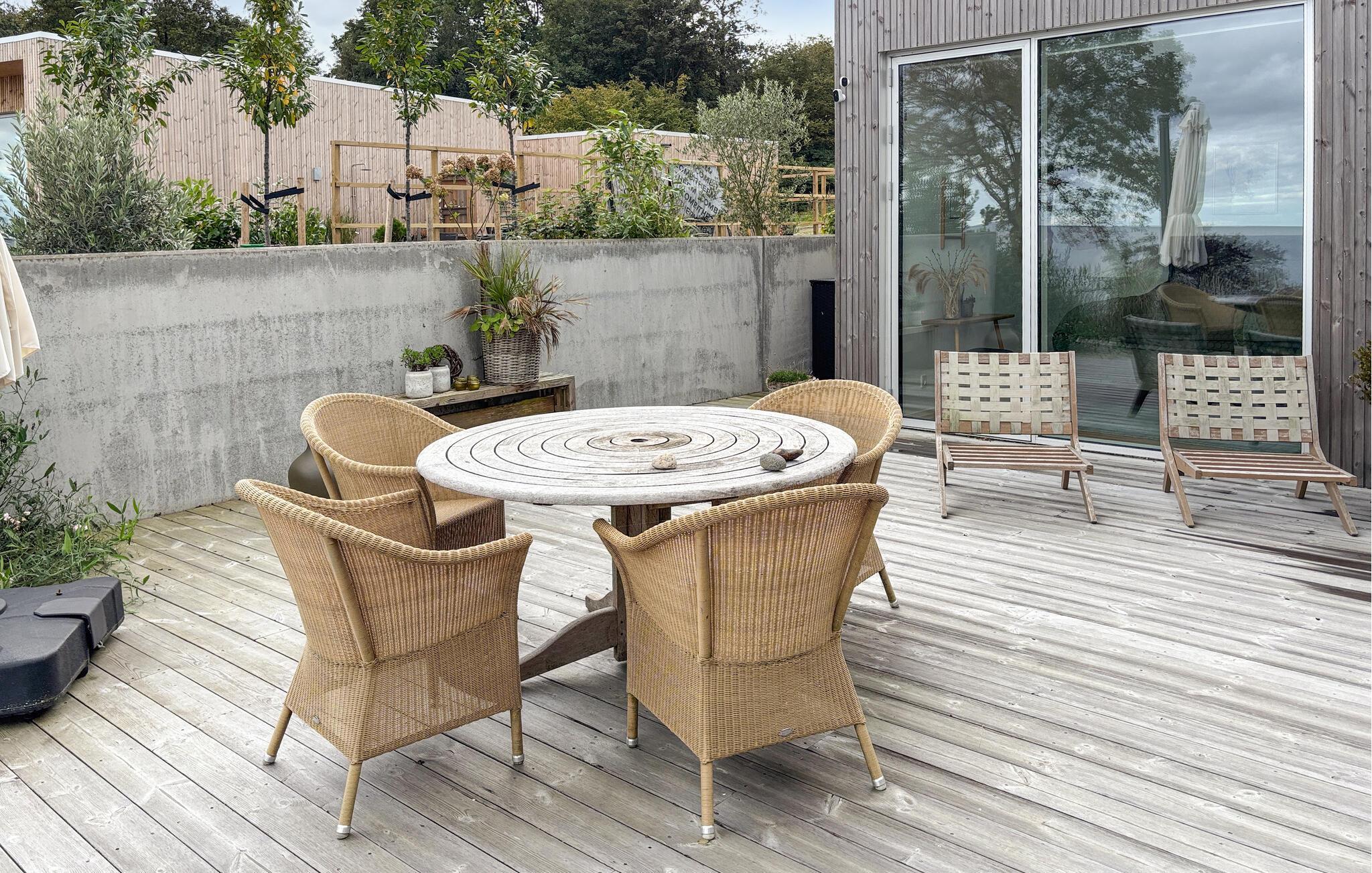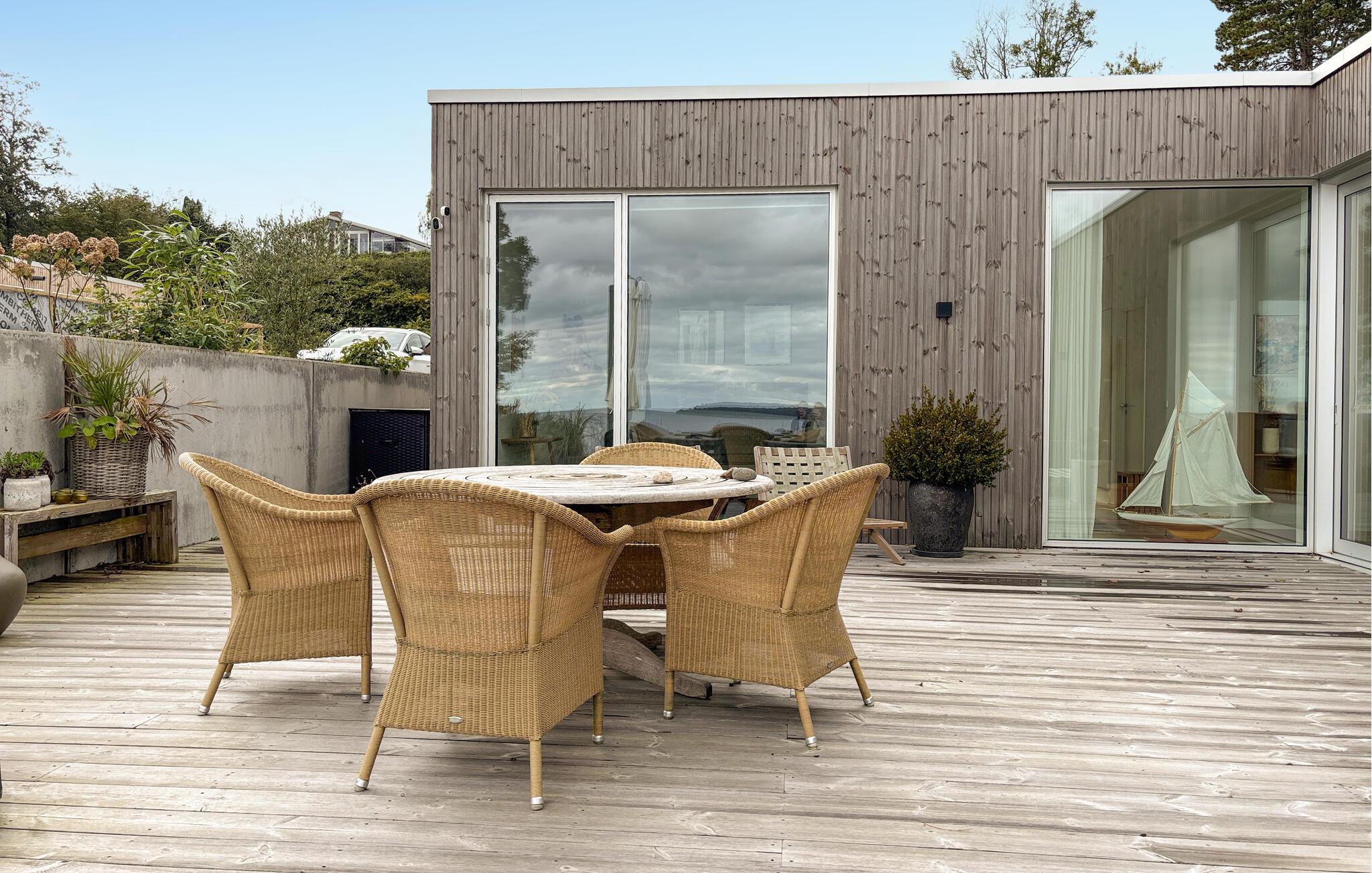 Verbringen Sie erholsame Stunden auf der großen Holzterrasse. Trinken Sie Ihren Morgenkaffee mit Blick auf das Wasser oder lassen Sie den Tag mit einem Glas Wein im Abendlicht ausklingen. Bequeme Sitzgruppen und geschützte Bereiche schaffen die ideale Umgebung, um zu entspannen oder den Ausblick zu genießen.