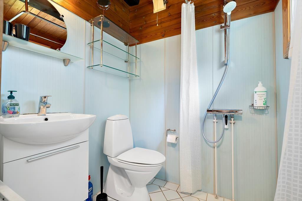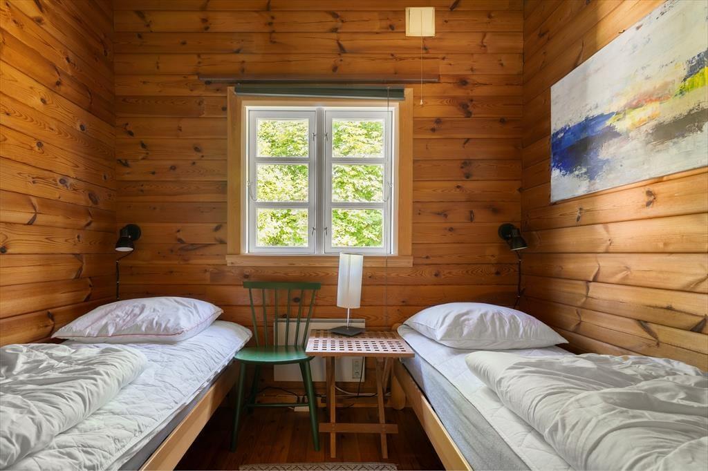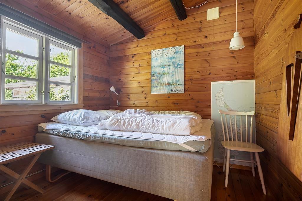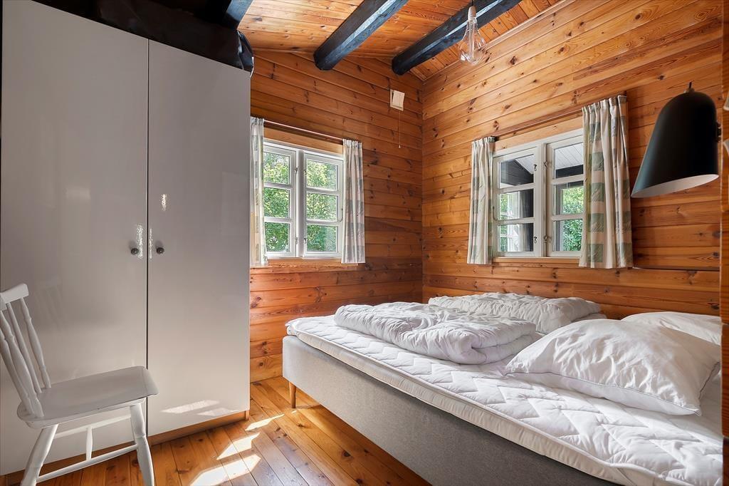 Sommerhuset rummer tre soveværelser: to med dobbeltseng og ét med to enkeltsenge. Derudover er der badeværelse, stue og køkken i huset.