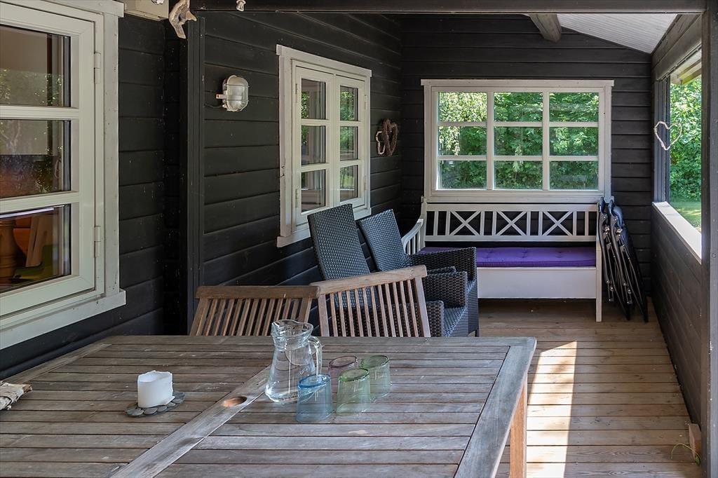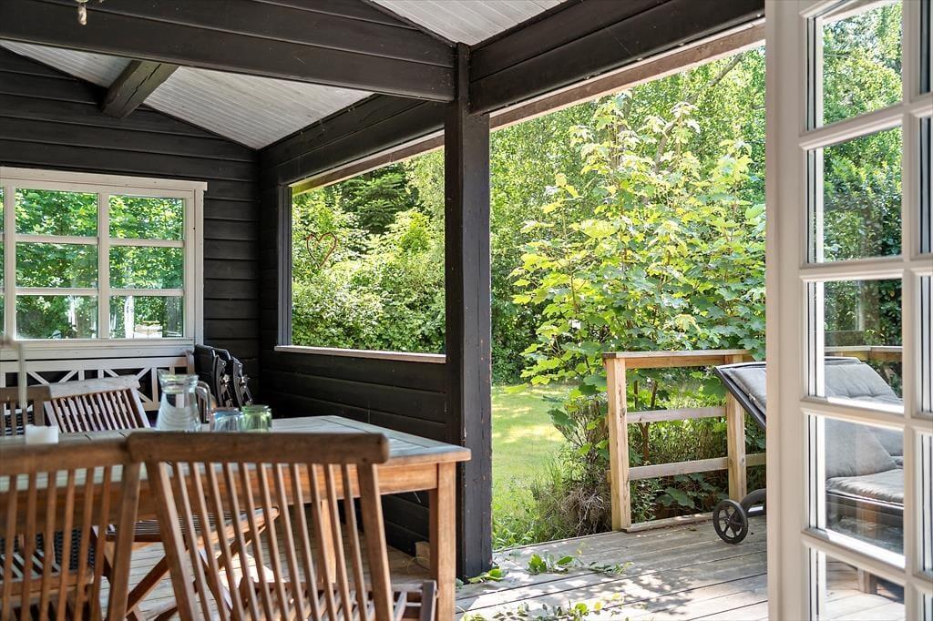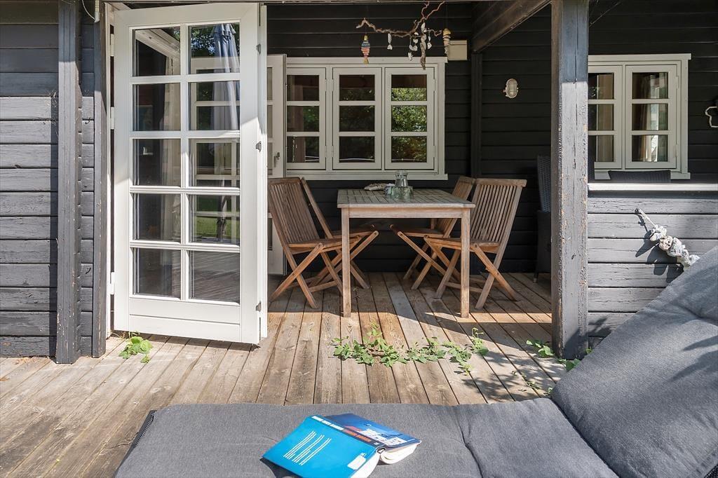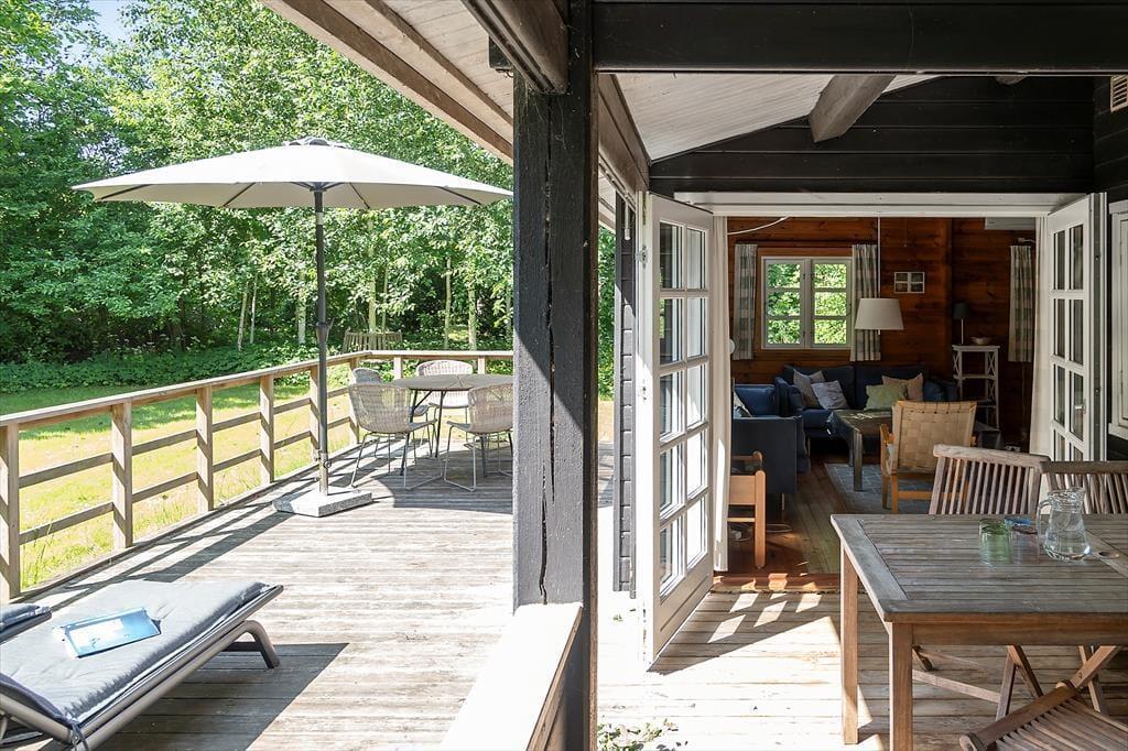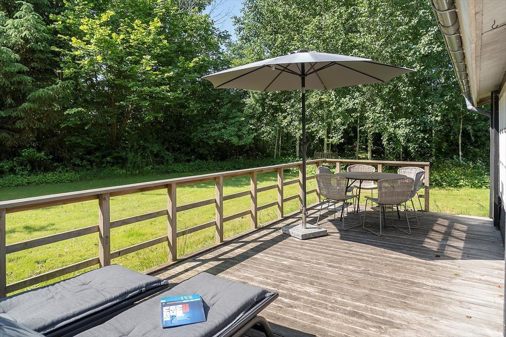 De store træterrasser rundt om huset giver jer mulighed for at følge solen fra morgen til aften. Her kan I spise udendørs, læne jer tilbage i liggestole eller bare nyde naturen. Ved indgangen finder I endnu en terrasse, som er ideel til morgenkaffen og stille morgener.