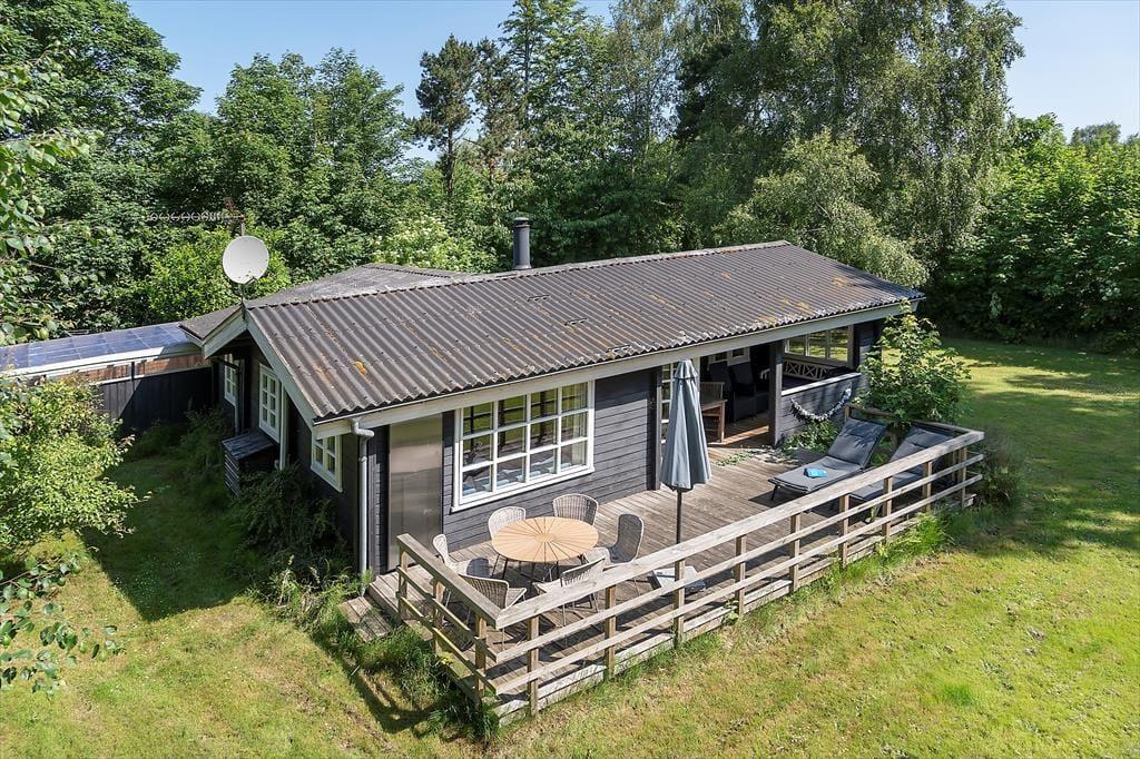 Sommerhuset ligger på en skøn grund med udsigt over det smukke landskab, hvor I kan nyde roen og freden. Haven byder på god plads til både leg og afslapning, og de to terrasser gør det muligt at nyde solen hele dagen.