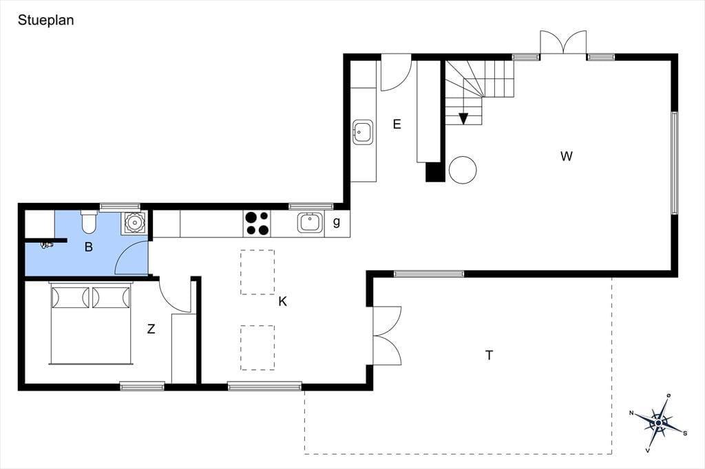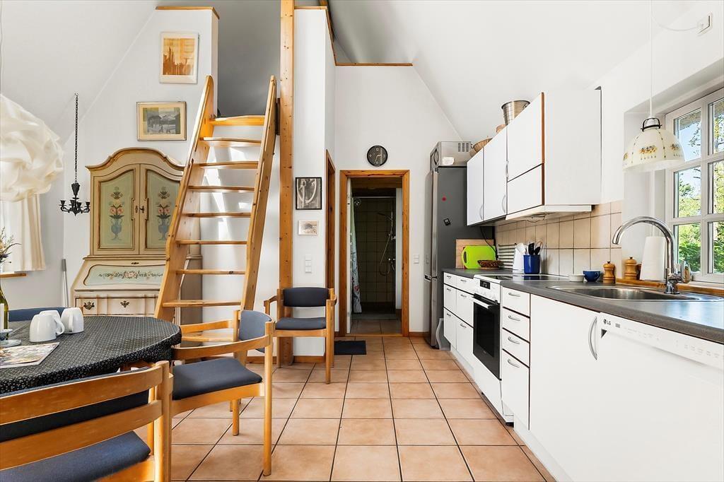 Stuen og køkkenet udgør husets naturlige samlingspunkt. Det åbne køkken gør det muligt at tilberede aftensmaden, mens du stadig kan være en del af samtalen i stuen. Køkkenet er funktionelt og veludstyret med alle nødvendige faciliteter.