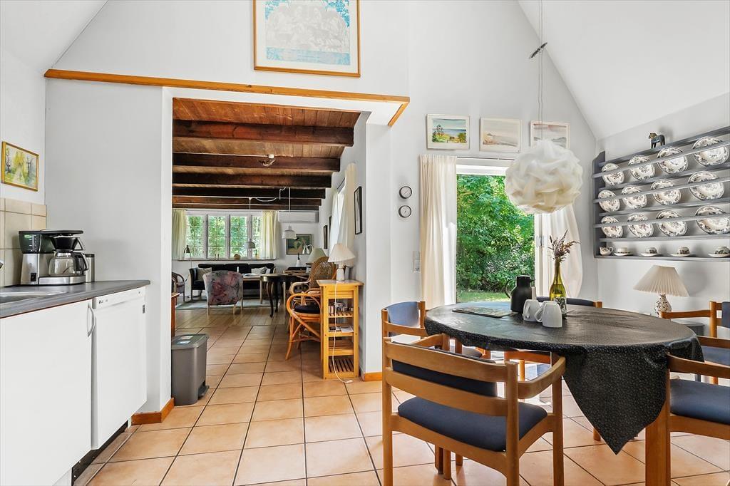 Wohnzimmer und Küche bilden das natürliche Herz des Hauses. Die offene Küche ermöglicht es, das Abendessen zuzubereiten, während Sie weiterhin am Gespräch im Wohnzimmer teilhaben. Die Küche ist funktional und gut ausgestattet mit allen notwendigen Geräten.