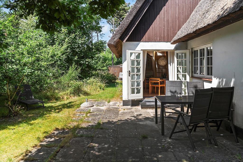 Terrassen er hjertet af udelivet ved dette sommerhus – den emmer af dansk sommer og ferieglæde. Her kan du lade dig fortrylle af duften fra grillen og dele dagens oplevelser med dine nærmeste, mens I nyder den smukke natur. Det er næsten umuligt ikke at blive opslugt af den helt særlige stemning. Mærk roen og nærværet, mens solen forsvinder i horisonten og aftenen falder på.
