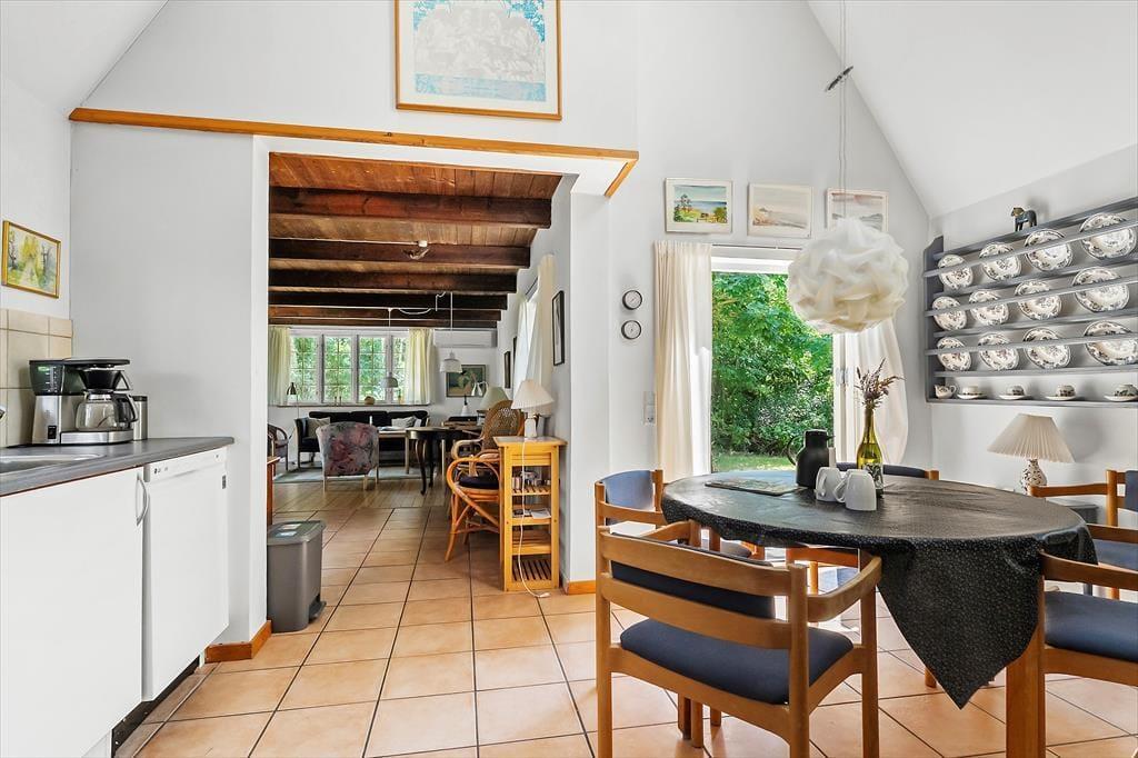 Ved siden af spiseområdet og stuen fører en havedør ud til en østvendt terrasse – oplagt til morgenkaffe i solen eller måltider under åben himmel omgivet af naturens ro.