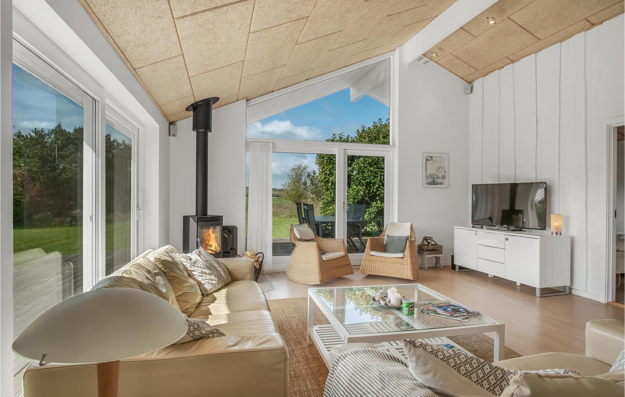 Gemütliches Ferienhaus auf Samsø mit Kamin, Terrasse und Nähe zum Strand für erholsame Urlaubstage.