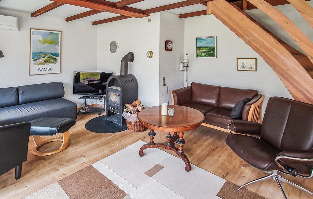 Genießen Sie ein stilvolles Ferienhaus nahe dem Strand von Samsø mit Kamin, Garten und moderner Ausstattung.