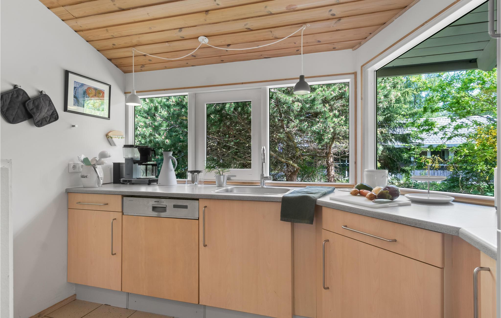 In diesem Ferienhaus mit klassischem Sommerhaus-Charme können Sie eine schöne gemeinsame Zeit genießen. Geschickt platzierte Fenster sorgen für helle Räume und ermöglichen Ihnen einen wunderbaren Blick ins Grüne an vielen Orten im Haus. Freuen Sie sich auf gemütliche Abende am Kaminofen, in dessen behaglicher Wärme Sie ausgiebig plaudern und Pläne für die kommenden Tage schmieden können. Entspannen Si ein der Sauna nach einem aktiven Tag auf der Insel.