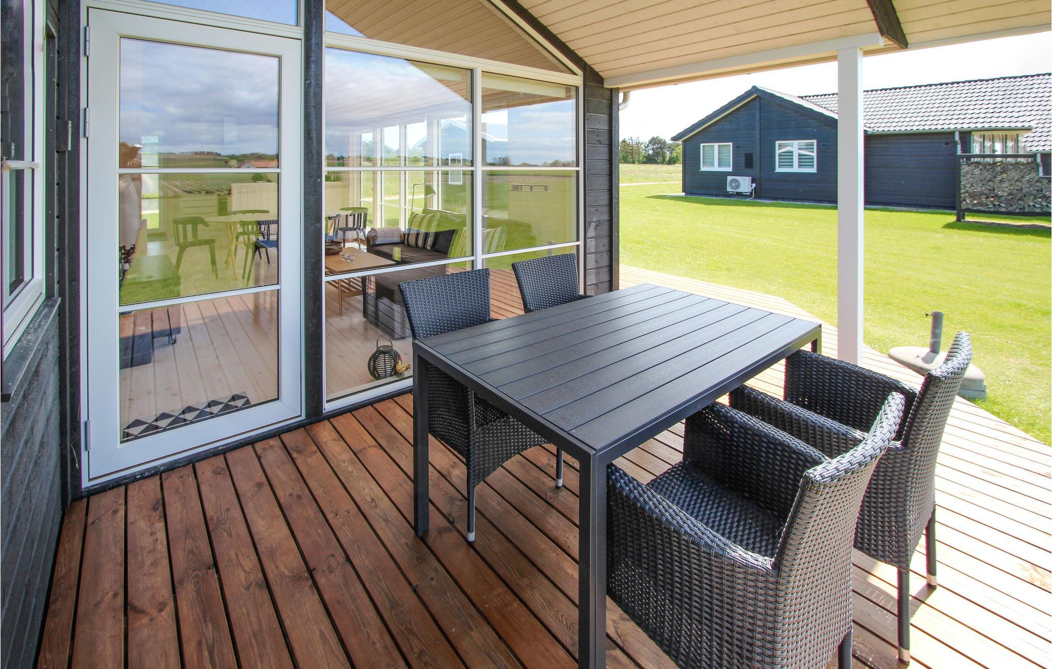 Ob gemeinsames Kochen, ausgedehntes Essen oder einfaches Entspannen auf dem Sofa - das alles findet hier vor einer wunderschönen Kulisse aus grünen Feldern und saftigen Wiesen statt, die Sie durch großflächige Panoramafenster bewundern können. Beim Nachmittagskaffee auf der Terrasse können Sie diesen Blick in vollen Zügen genießen, bevor Sie sich auf den kurzen Spaziergang zum Strand begeben.